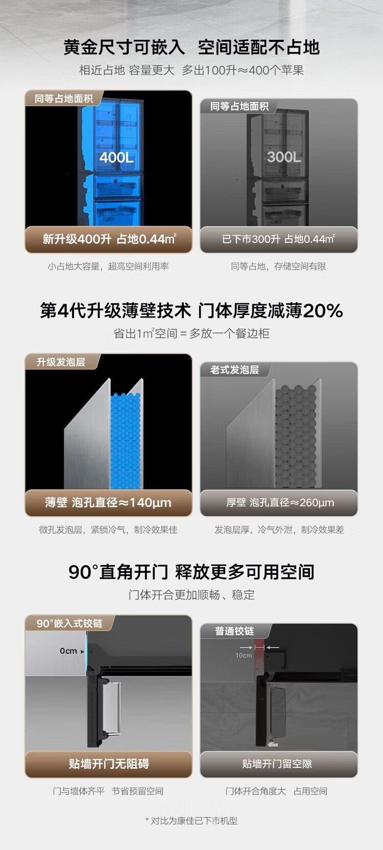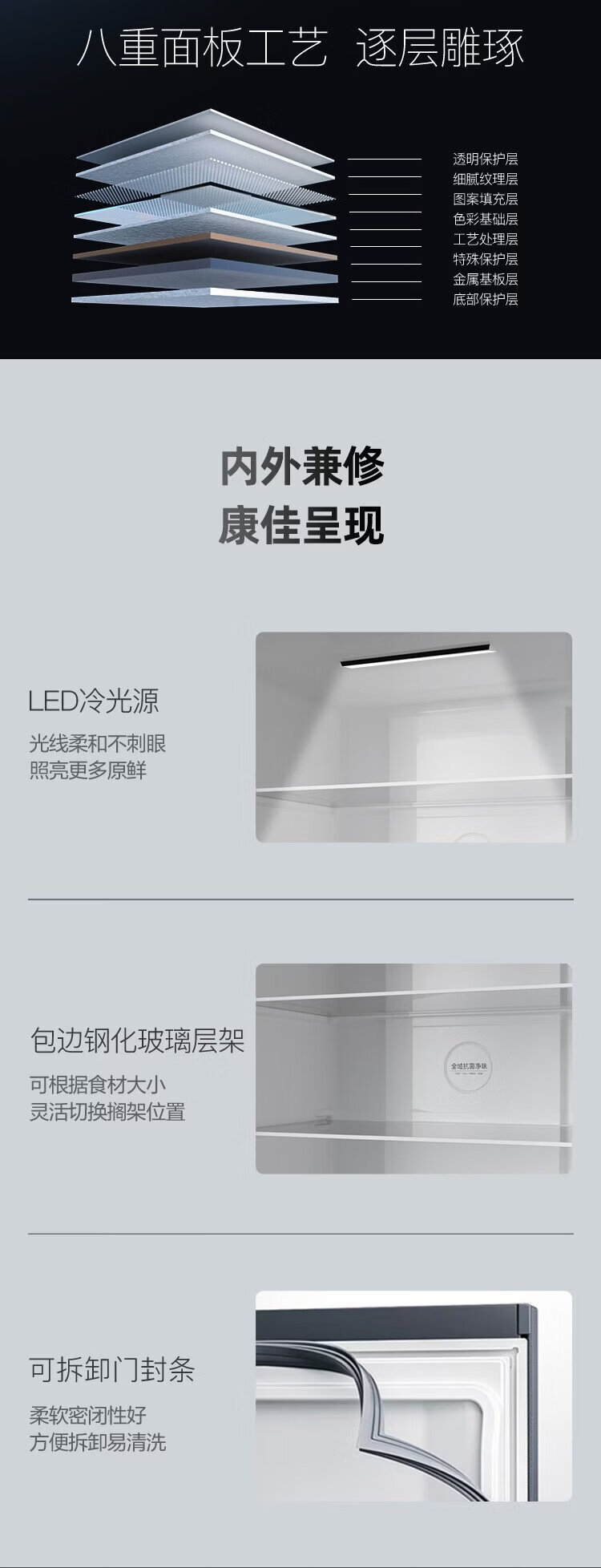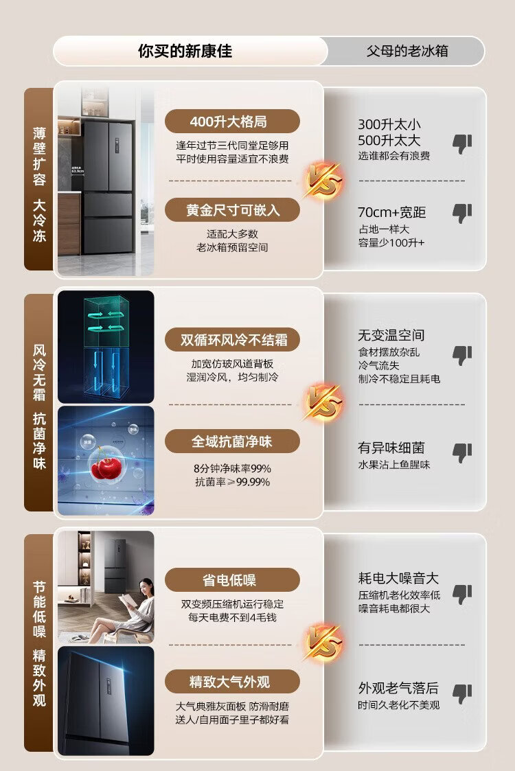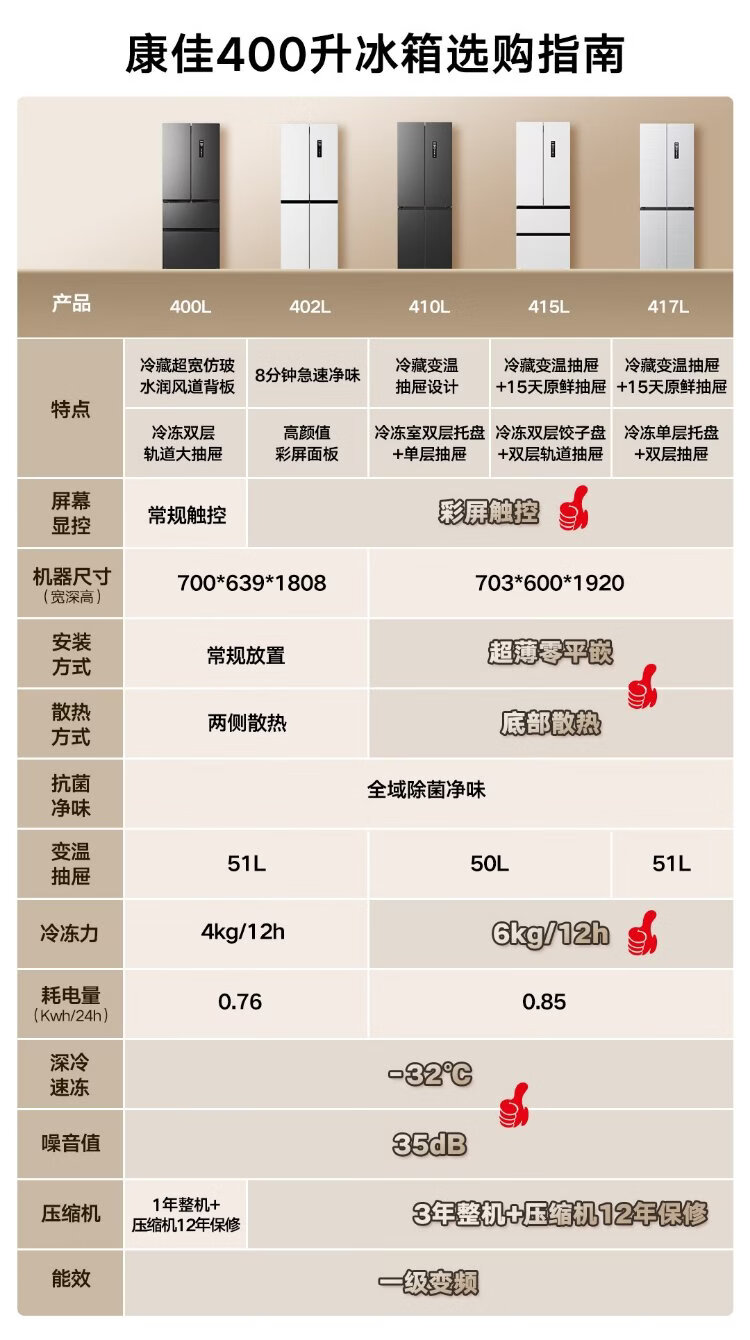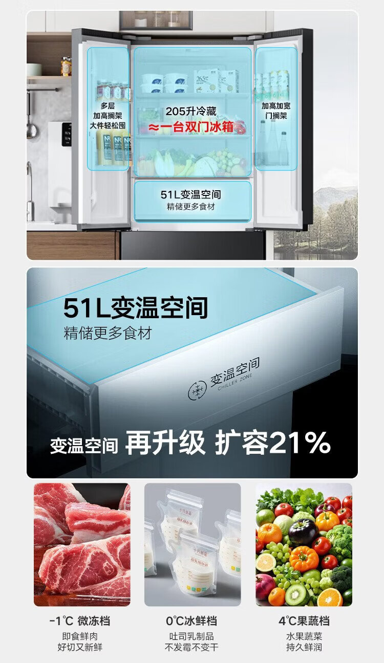 Konka 400 liters ultra-thin French multi-door four-door double-door refrigerator household dual-frequency first-class energy efficiency air-cooled frost-free small apartment BCD-400WPEG7S national subsidy