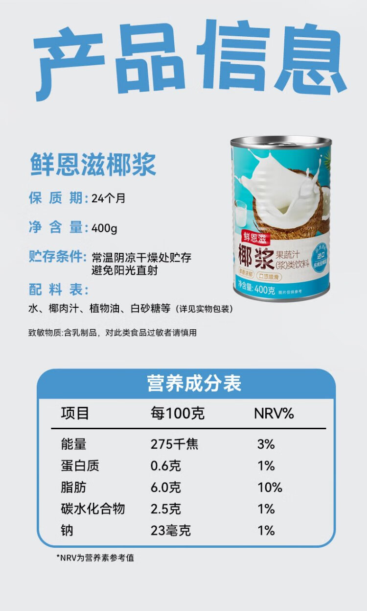 Coconut Milk 400g*3 Coconut Milk Fruit Refreshing Dessert Raw Coconut Latte Milk Tea Shop Special Baking Ingredients