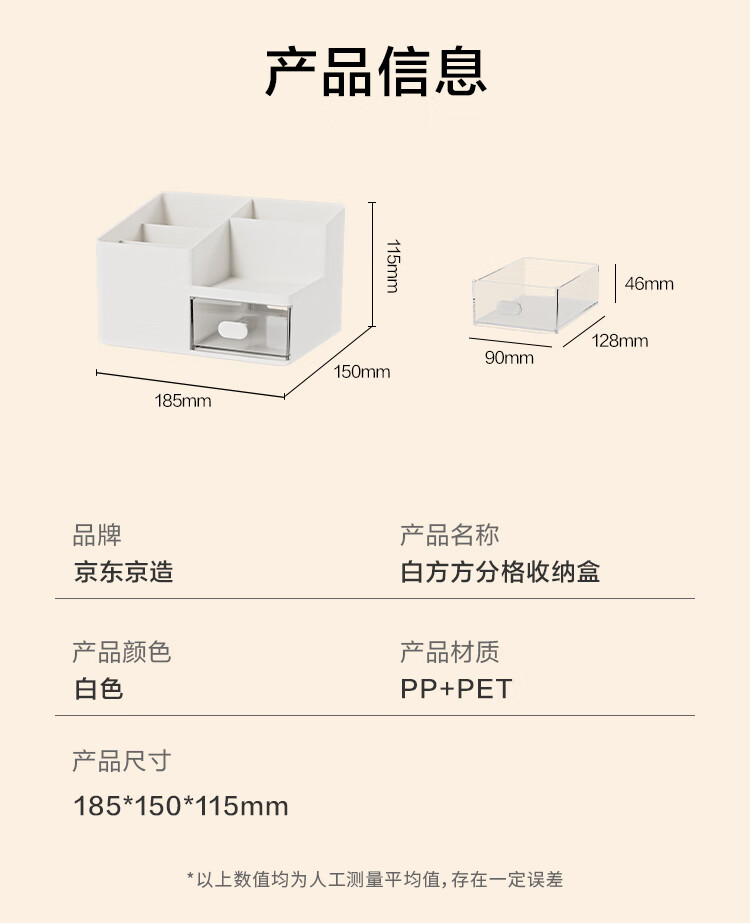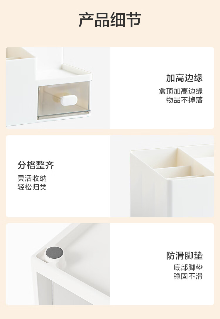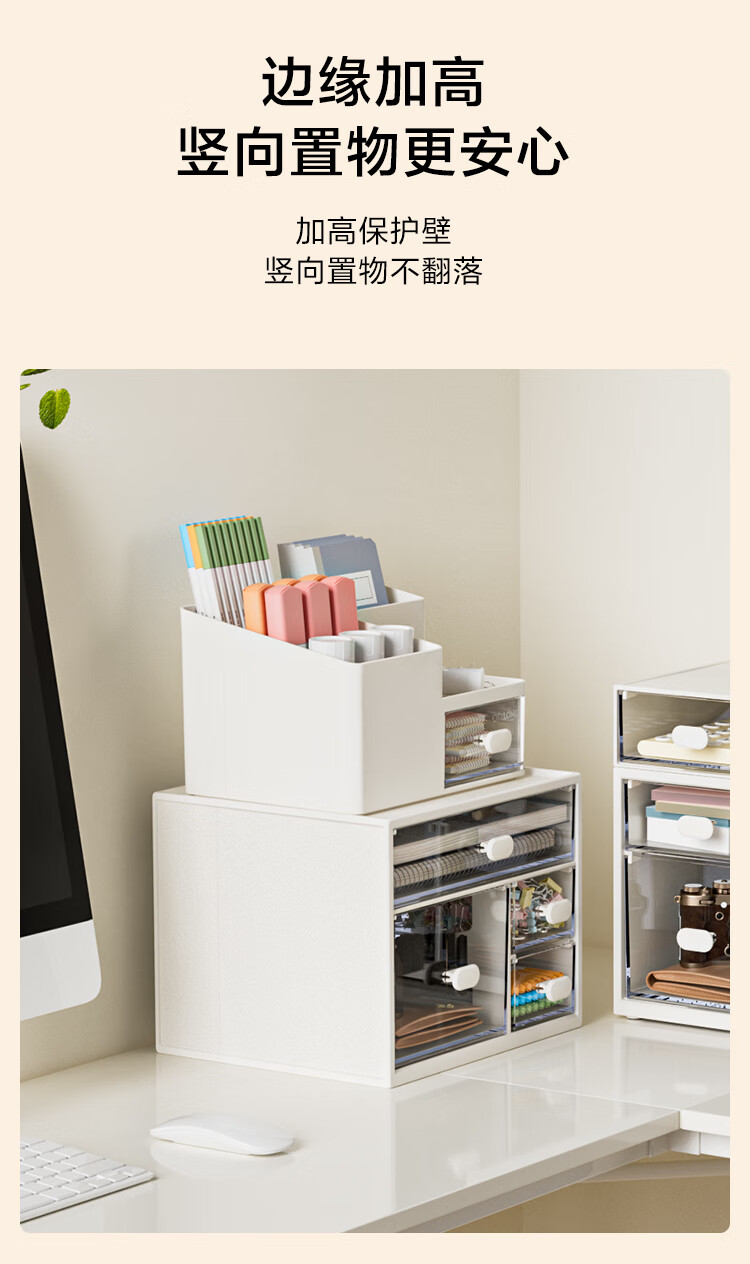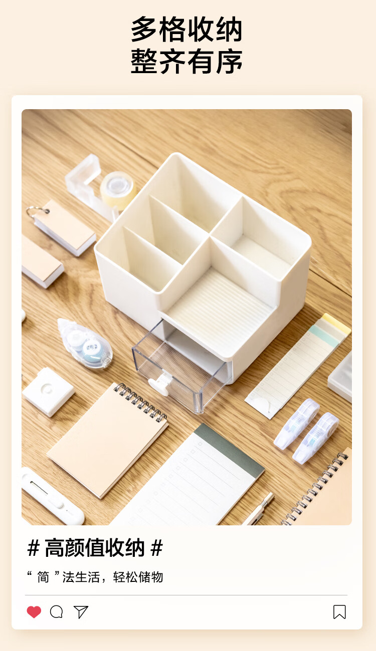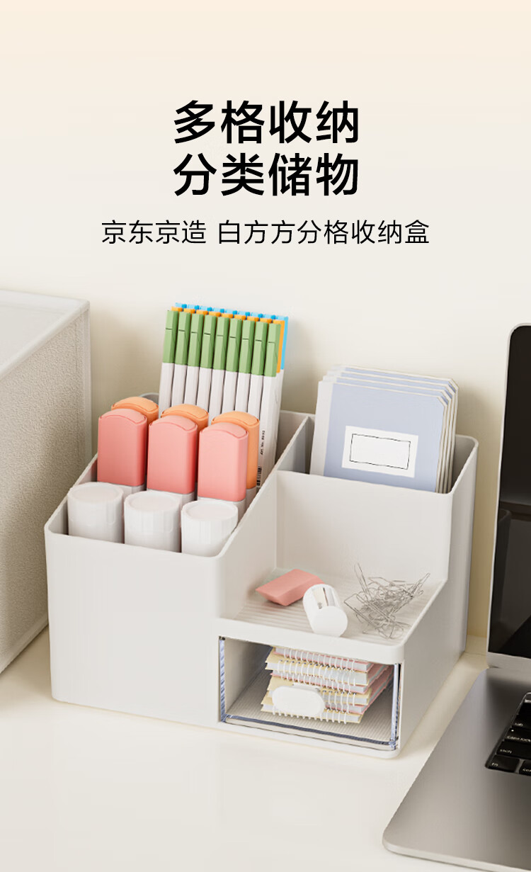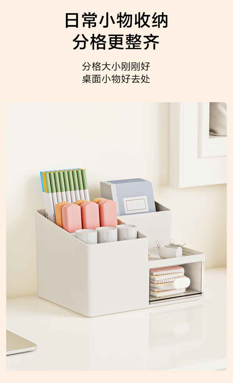 Jing Tokyo white square drawer-type organizer box cosmetics storage box office stationery storage box with pen holder
