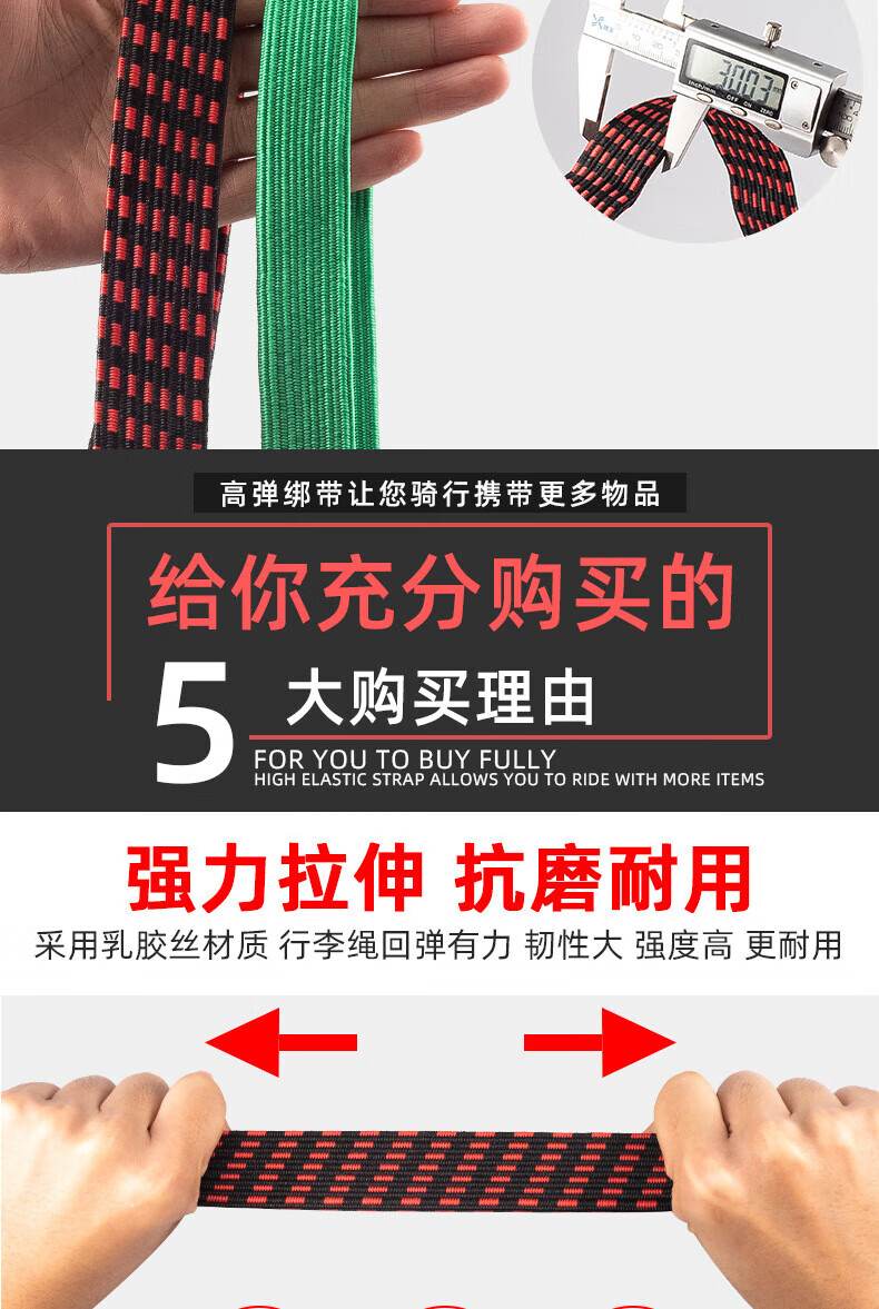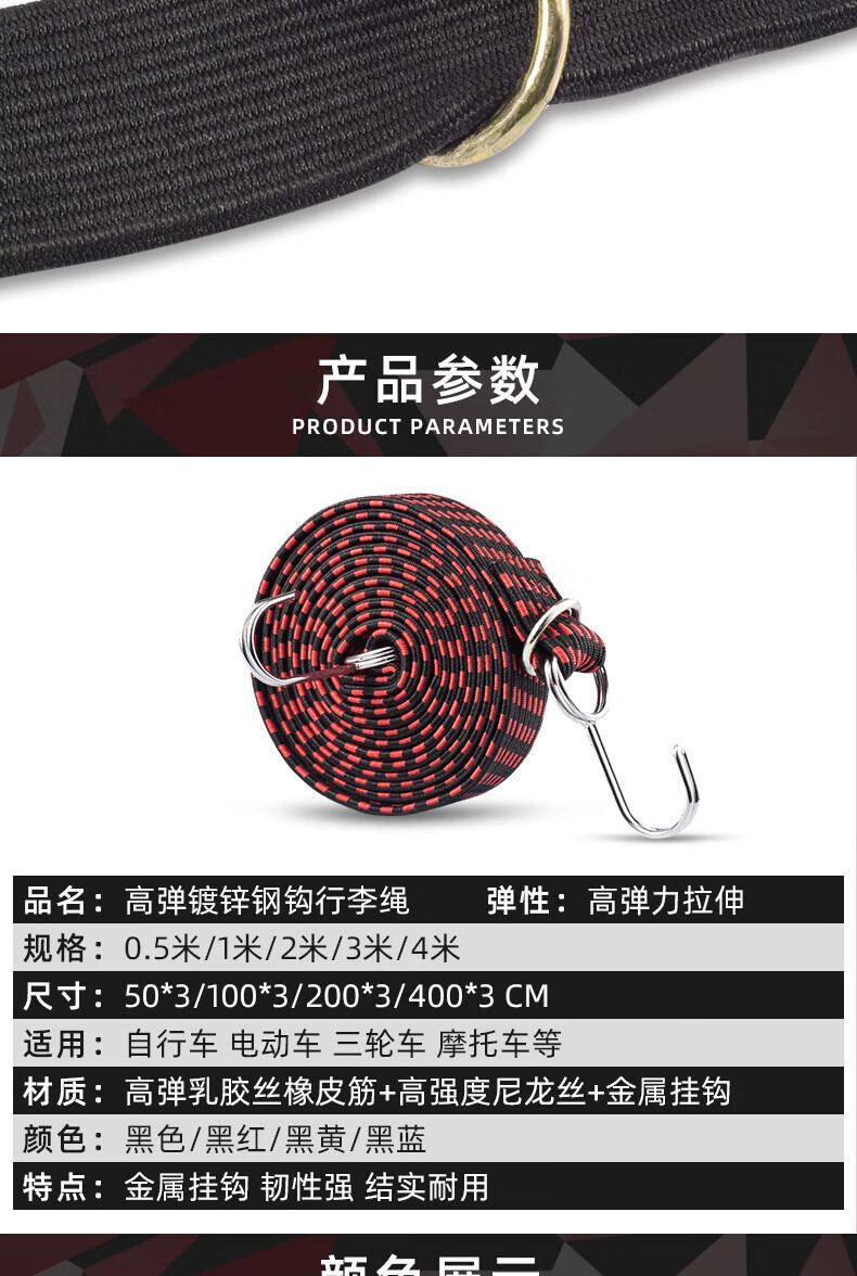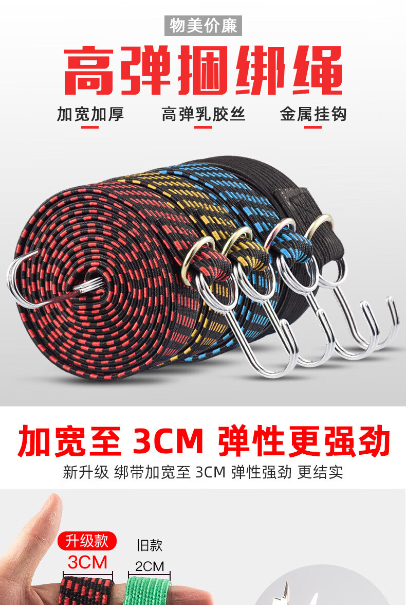 Minggu electric vehicle strap rope motorcycle elastic rope cow tendon bundling elastic band cargo rubber band bundling rope black 2 meters 3 pieces CD512793
