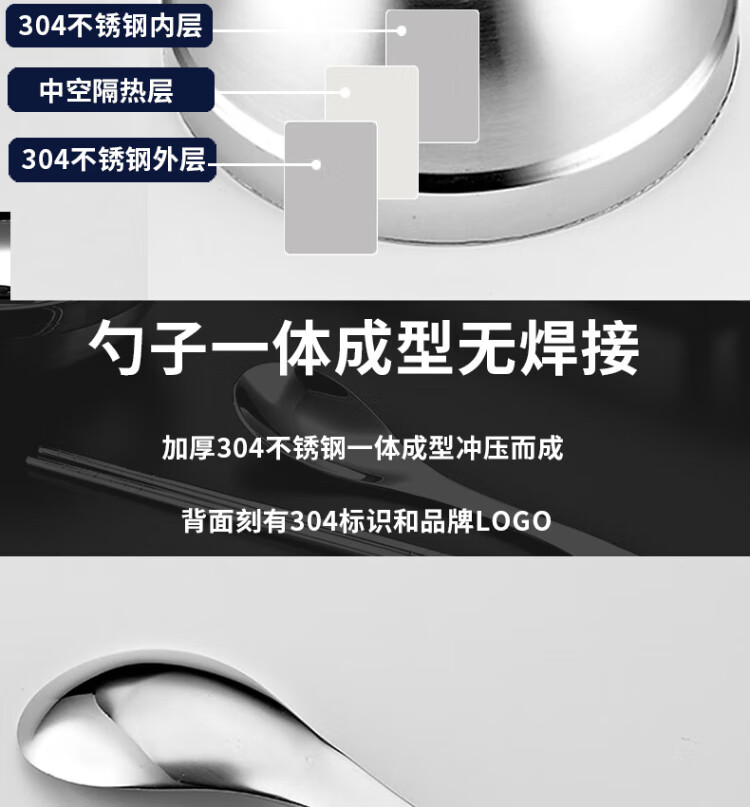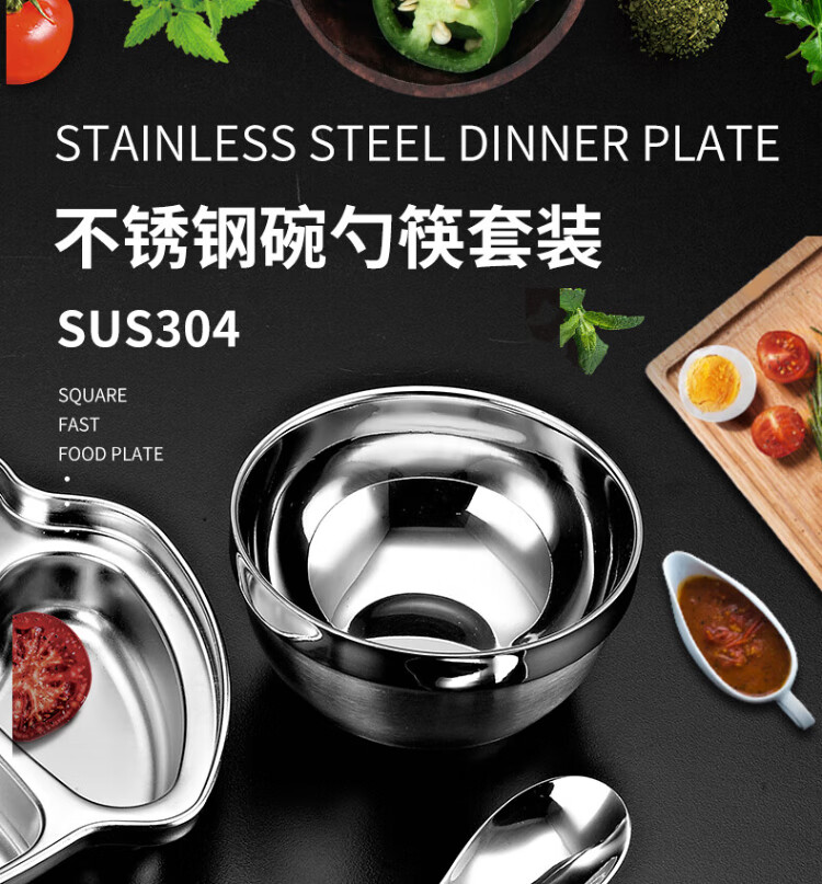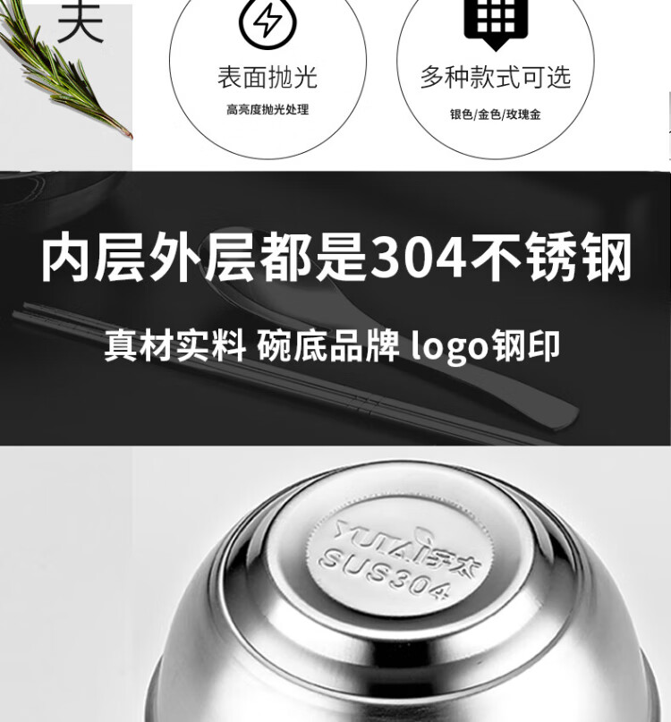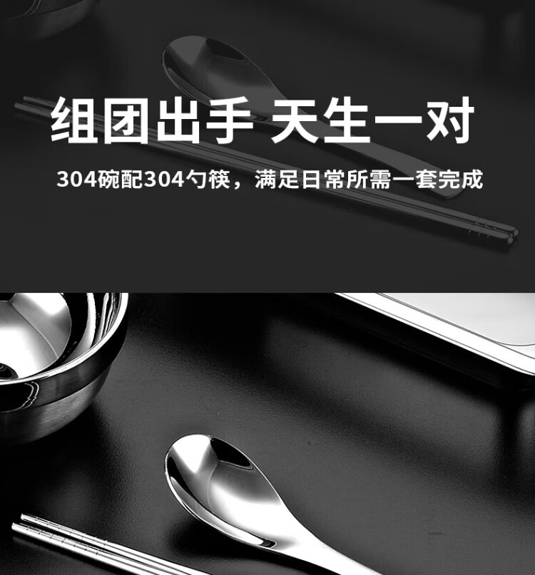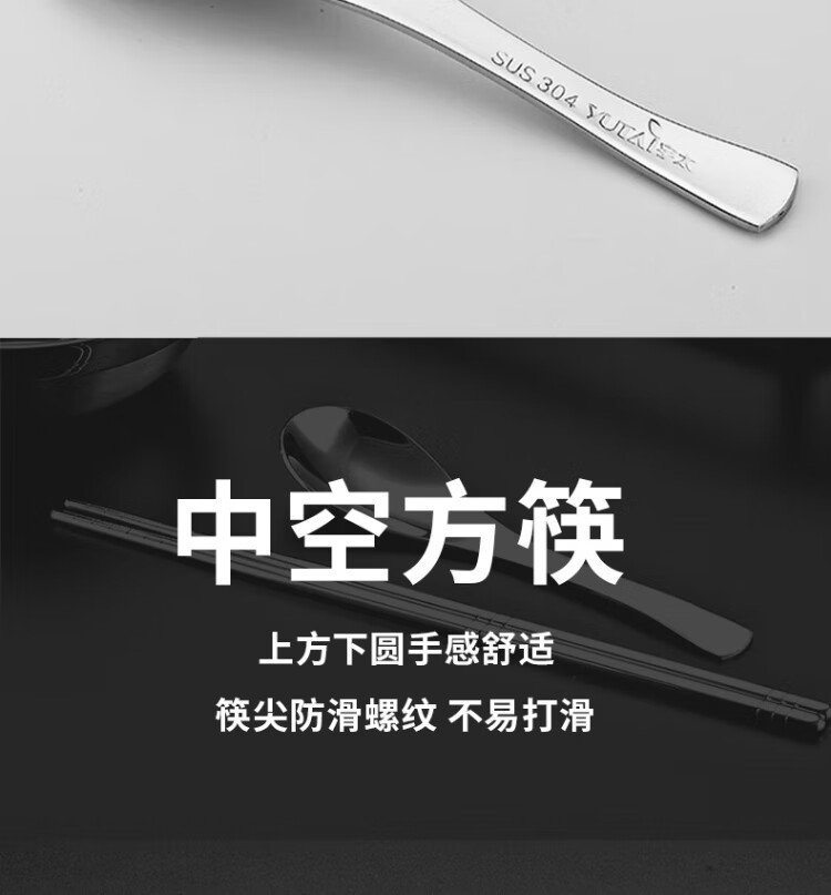 Yutai 304 stainless steel spoon, chopsticks, bowl, tableware set, soup bowl, rice bowl, spoon, small spoon, hollow chopsticks, household tableware