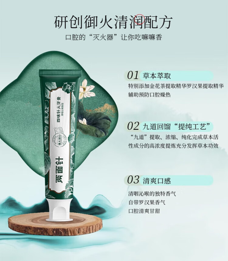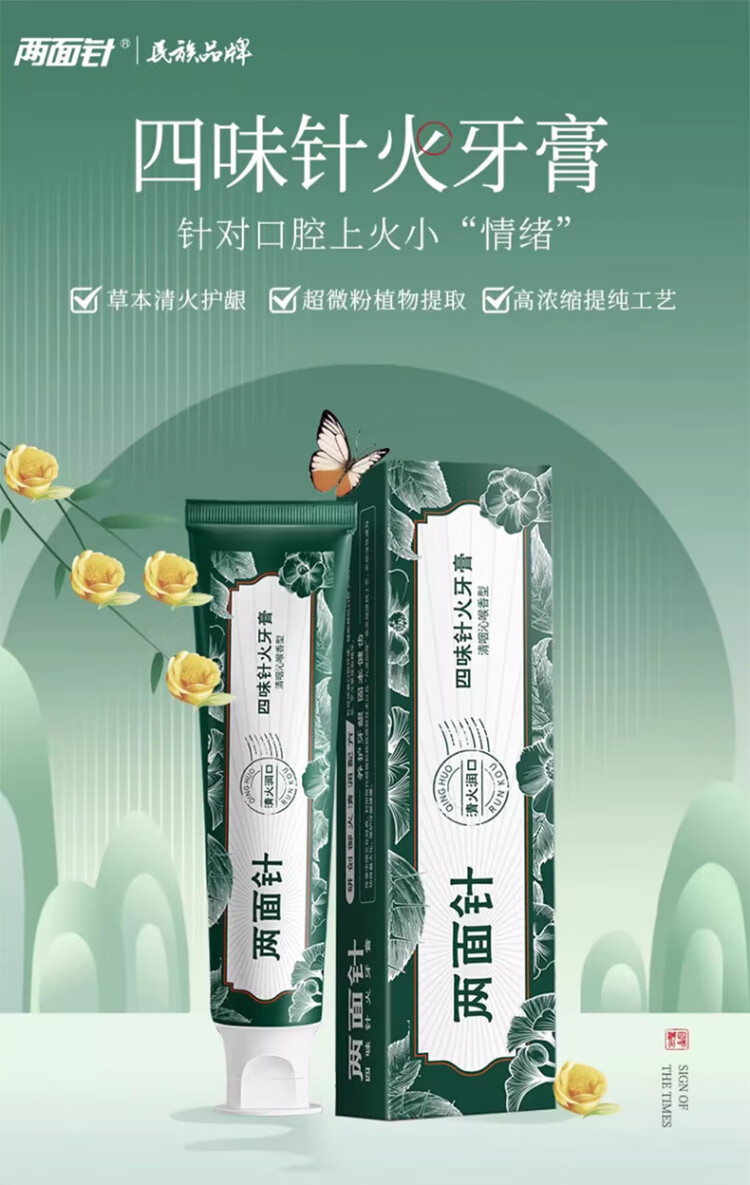 Liangmianzhen (LMZ) Four Flavor Needle Fire Toothpaste Herbal Extract Freshens Breath Reduces Dental Plaque and Relieves Oral Problems 120g*4 Sticks
