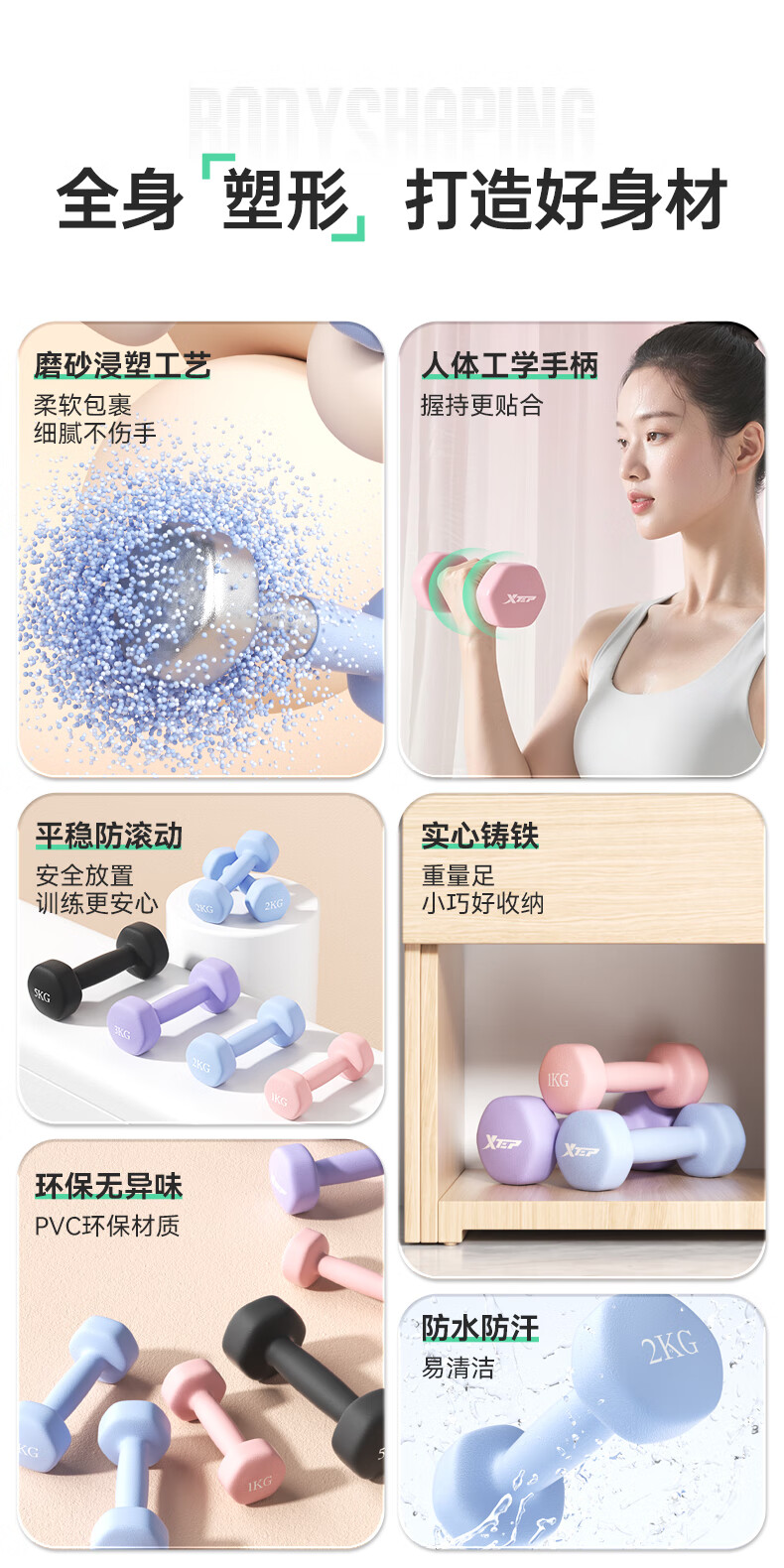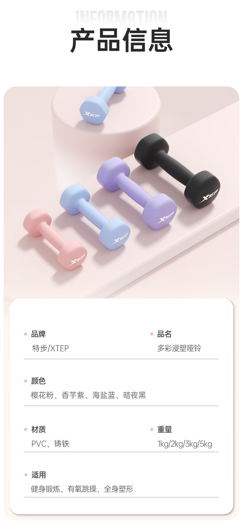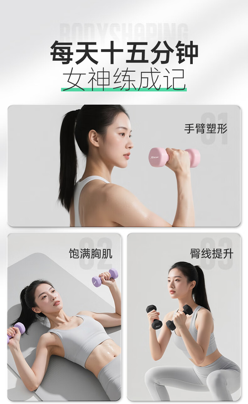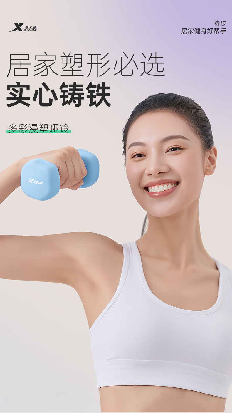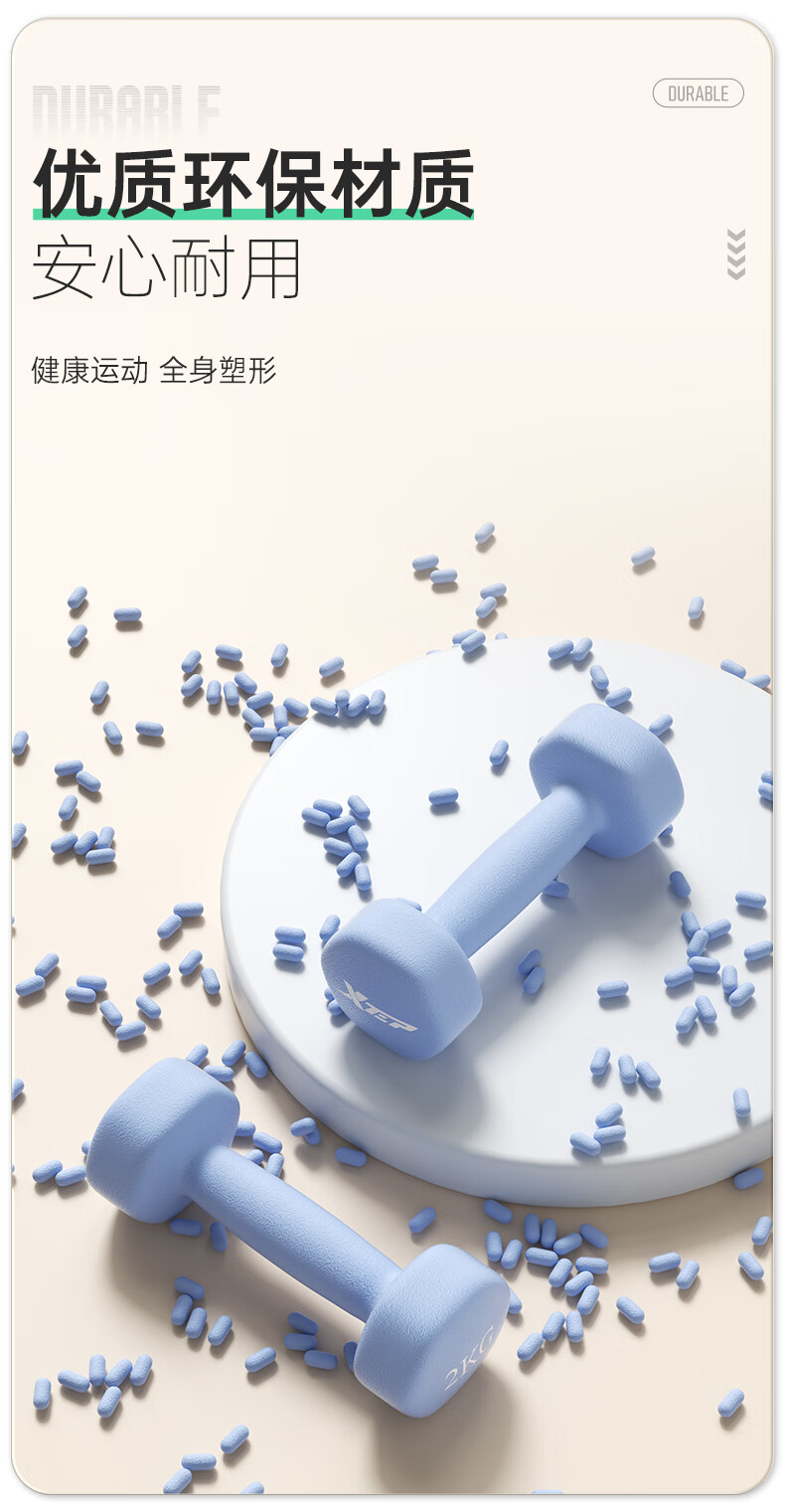 XTEP dumbbell plastic-impregnated male and female fitness home exercise equipment barbell environmentally friendly handbell weight training dumbbell 2kg