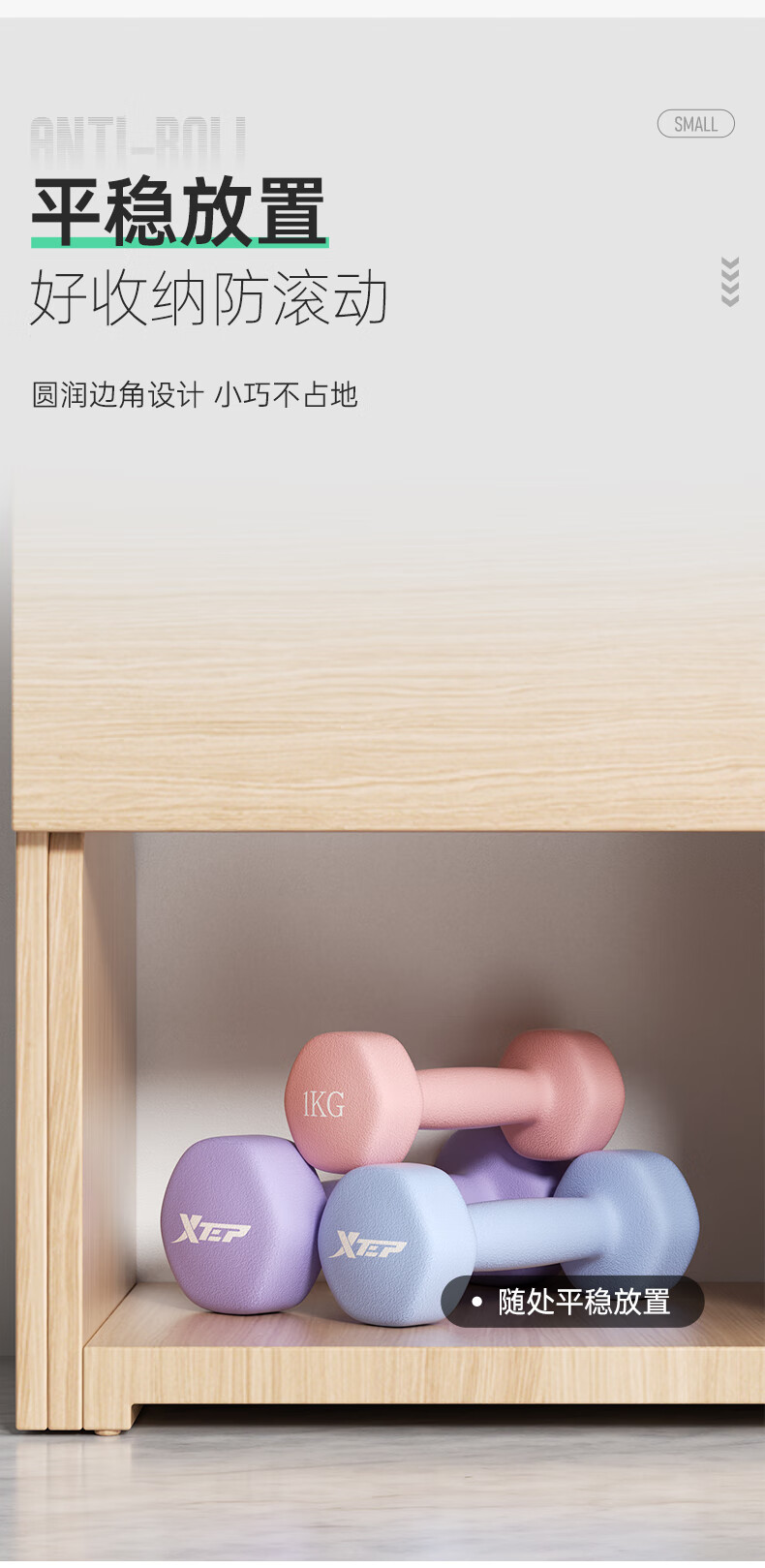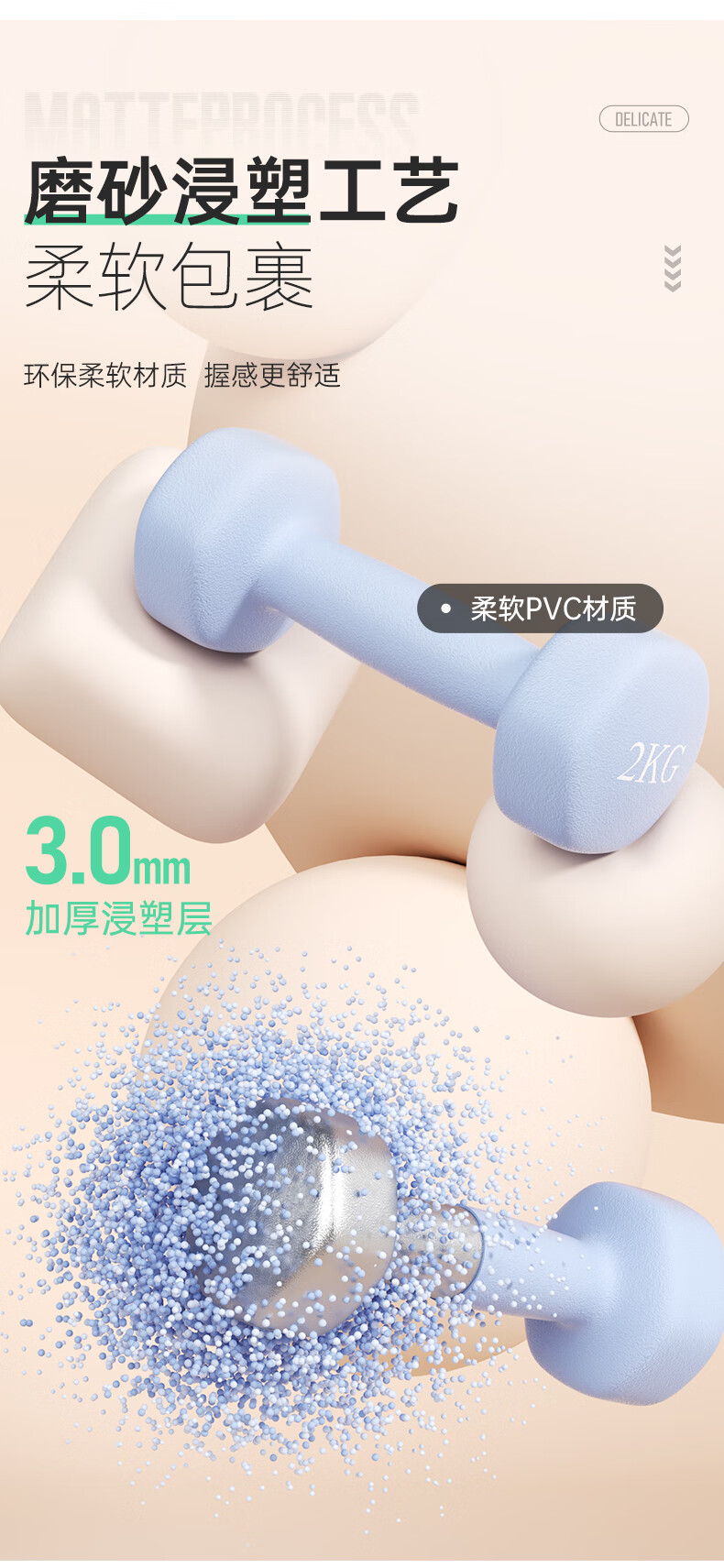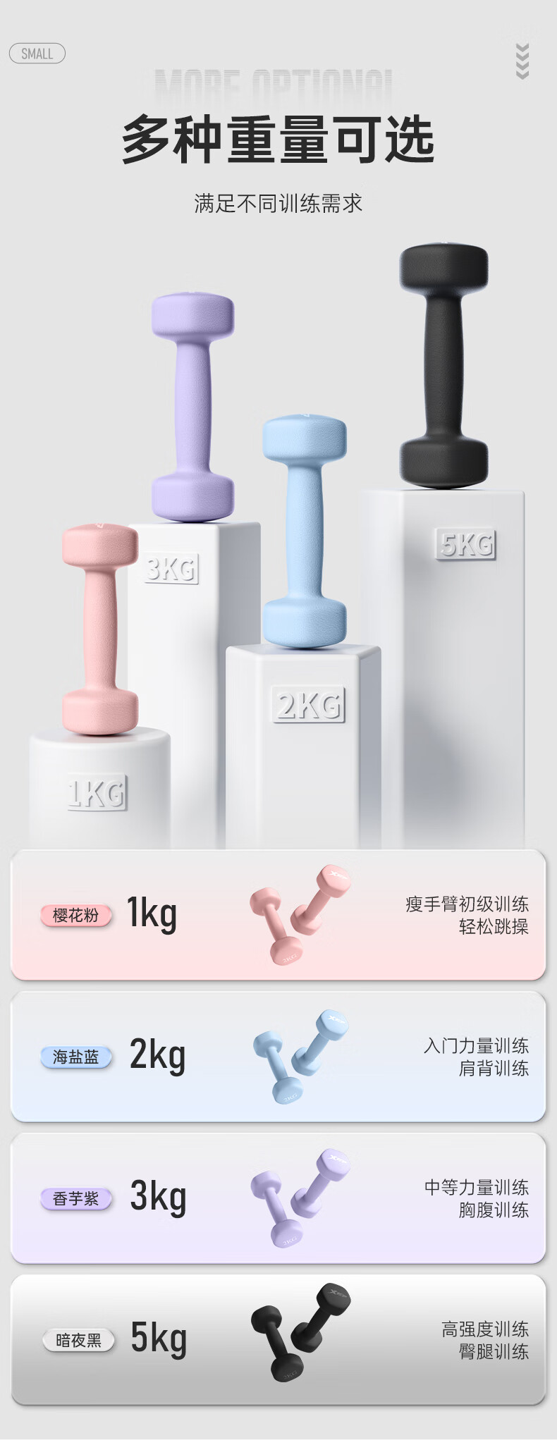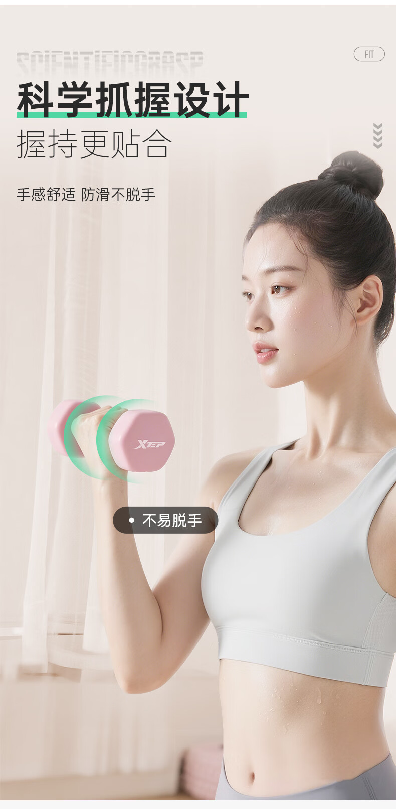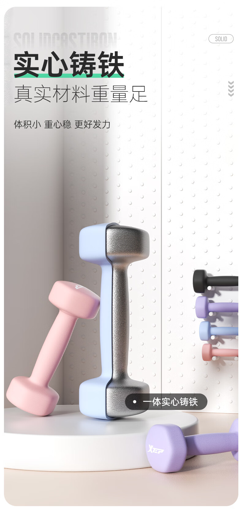 XTEP dumbbell plastic-impregnated male and female fitness home exercise equipment barbell environmentally friendly handbell weight training dumbbell 2kg