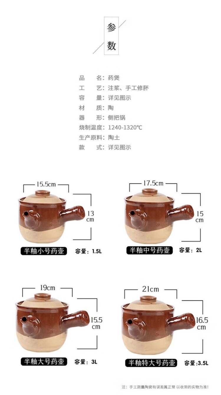 Quanpinwu boils traditional Chinese medicine casserole, frying pan, medicine jar, household medicine, special pot for frying and stewing medicine, half-glazed medicine pot, old-fashioned