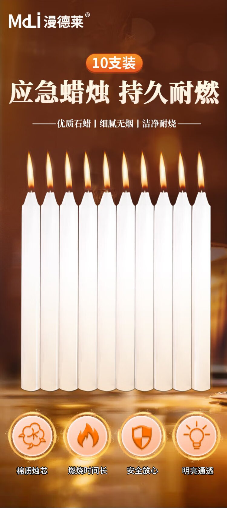 Mandelai emergency lighting candle red 10-pack smokeless old-fashioned straight wax experimental daily power outage earthquake 2*20cm