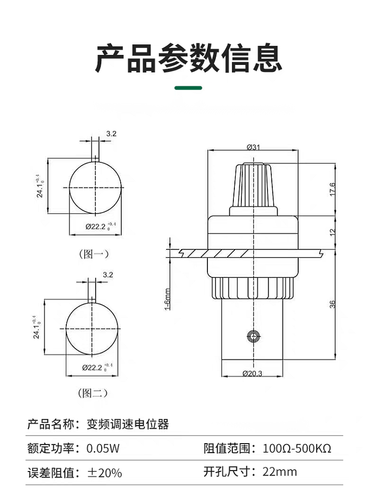 Noran frequency converter potentiometer LA42DWQ-22 precision speed regulator with knob opening 22mm 5K