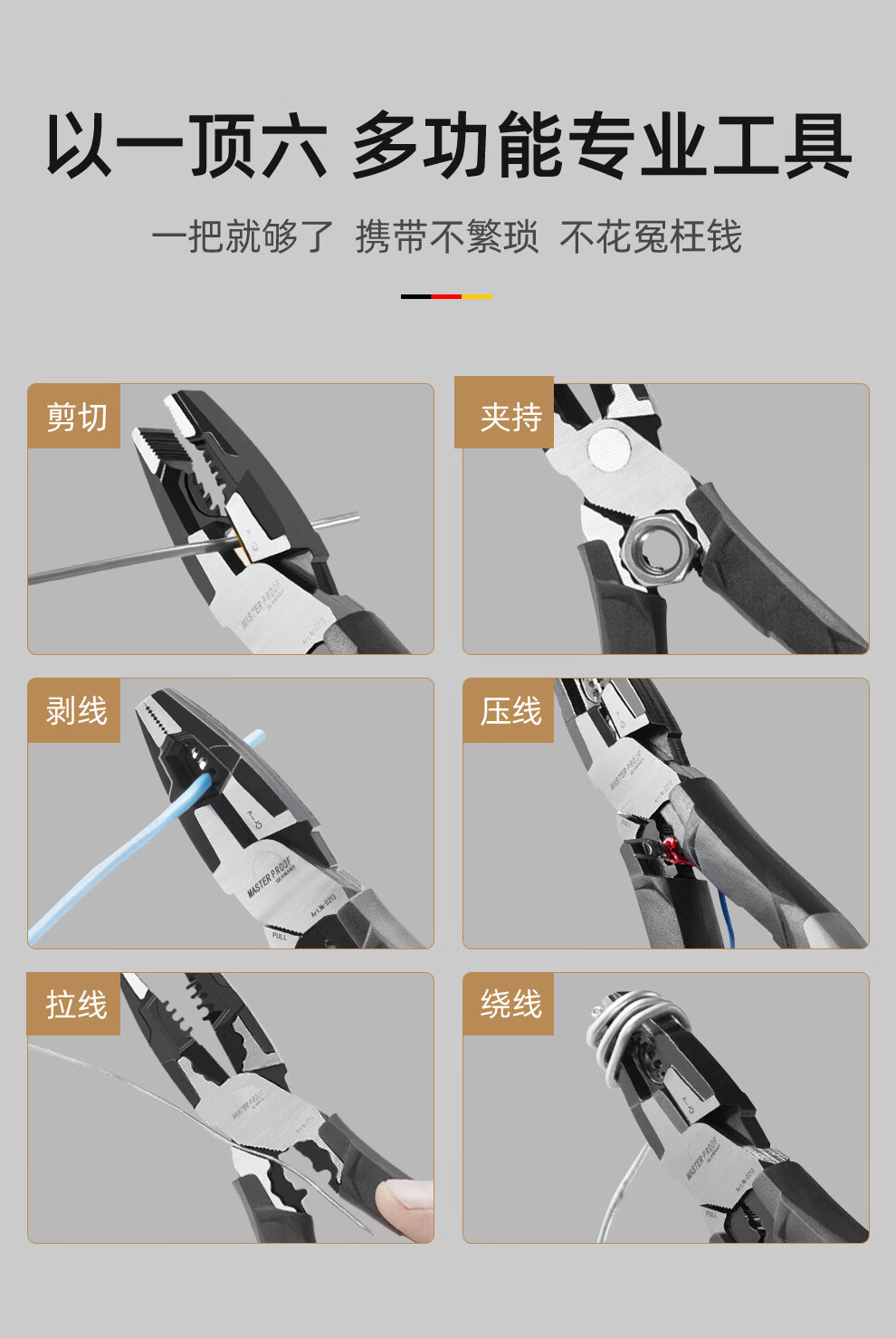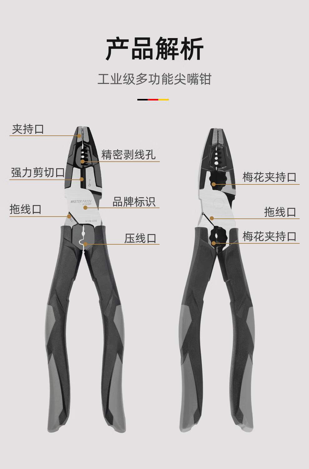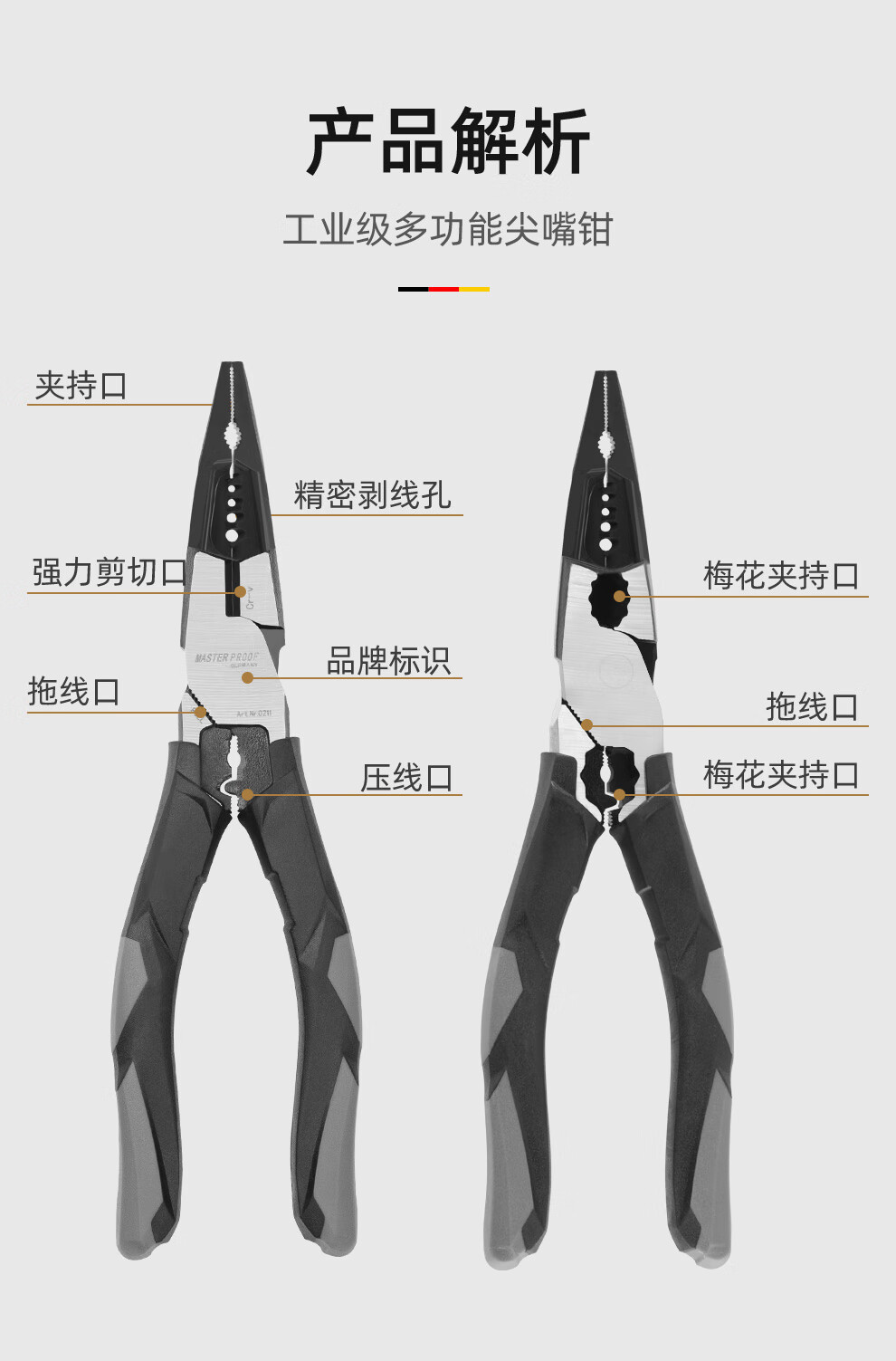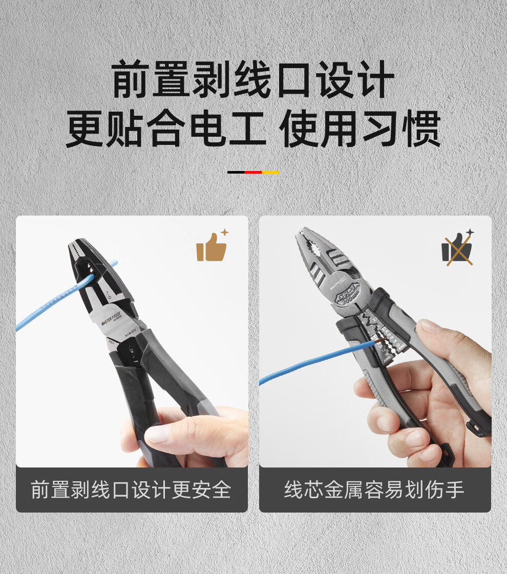 MASTERPROOF multifunctional needle-nosed pliers with extended mouth, electrician's special eccentric labor-saving pliers, electrician's pliers, wire stripping pliers, wire crimping pliers