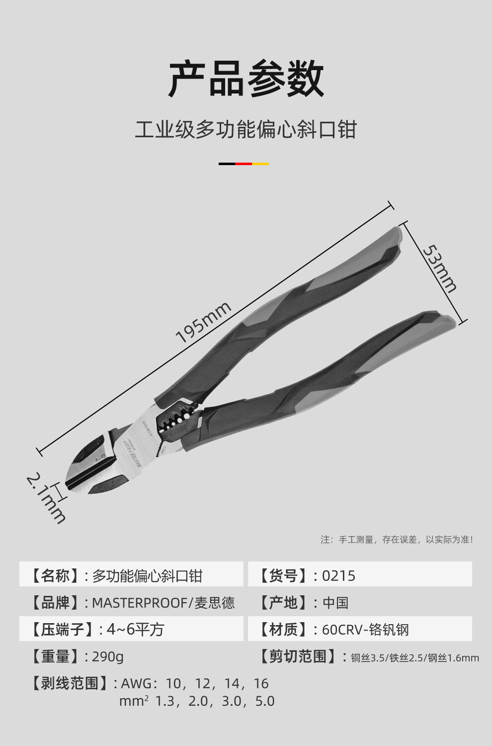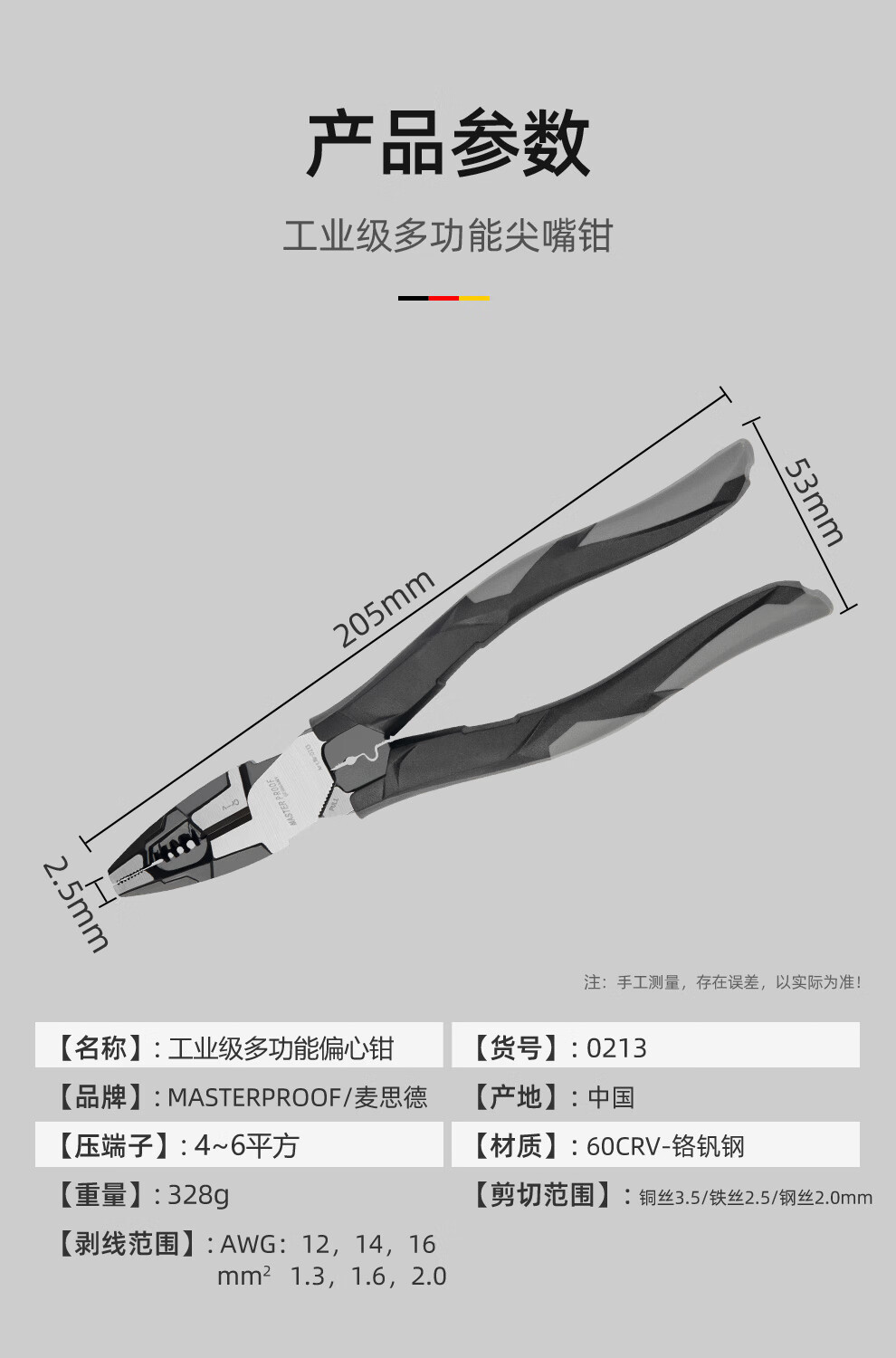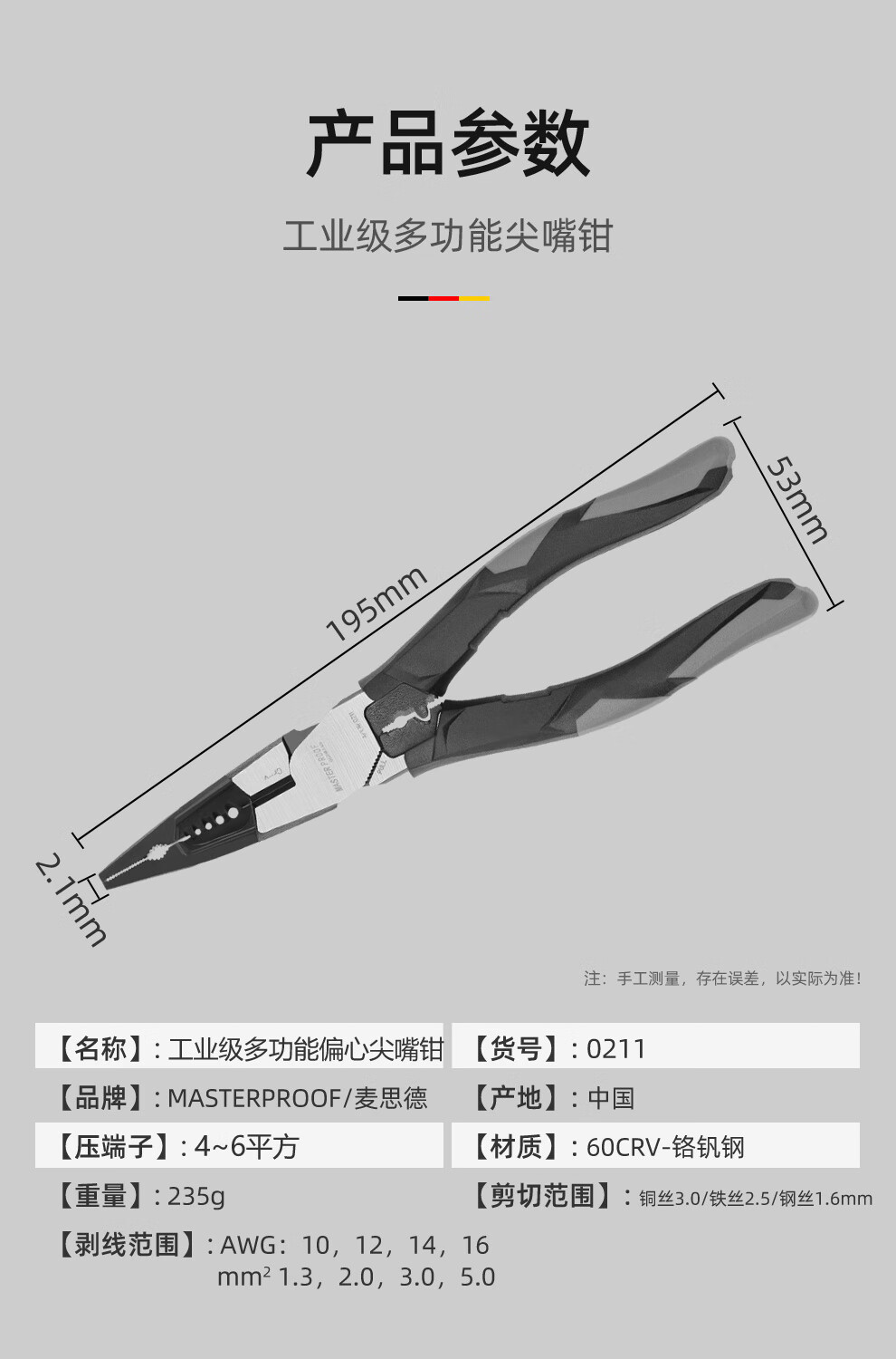 MASTERPROOF multifunctional needle-nosed pliers with extended mouth, electrician's special eccentric labor-saving pliers, electrician's pliers, wire stripping pliers, wire crimping pliers