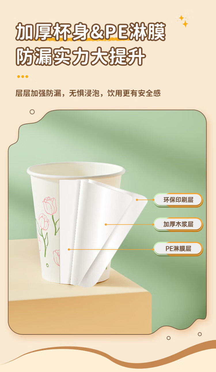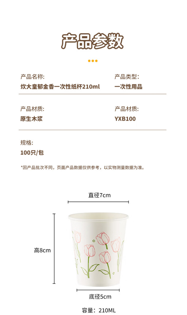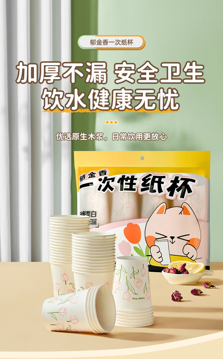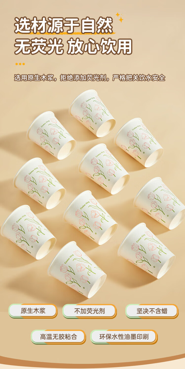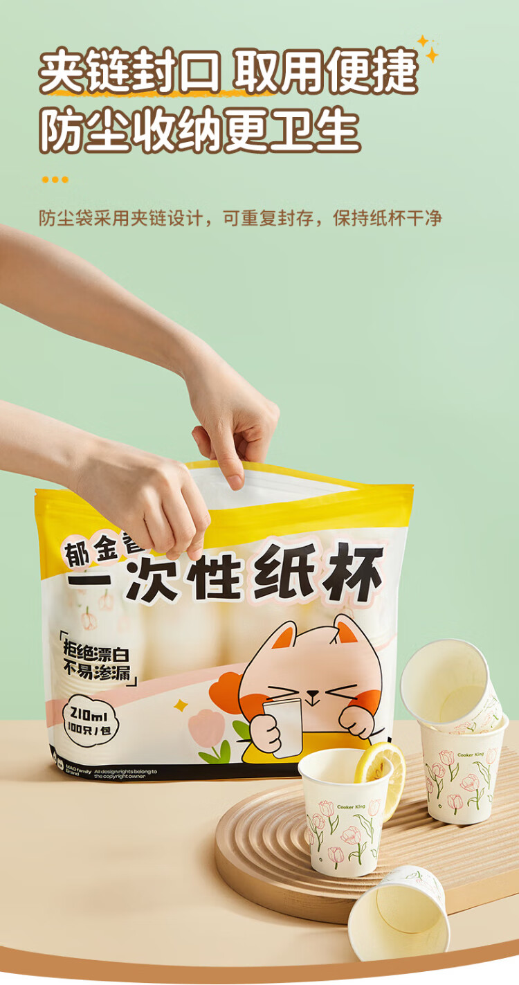 Cui Dahuang disposable paper cup thickened food grade office business home water cup 210ml 100 pieces