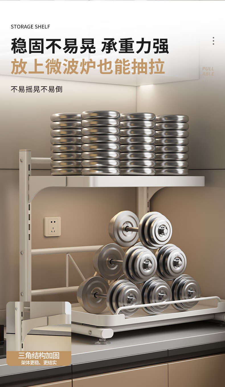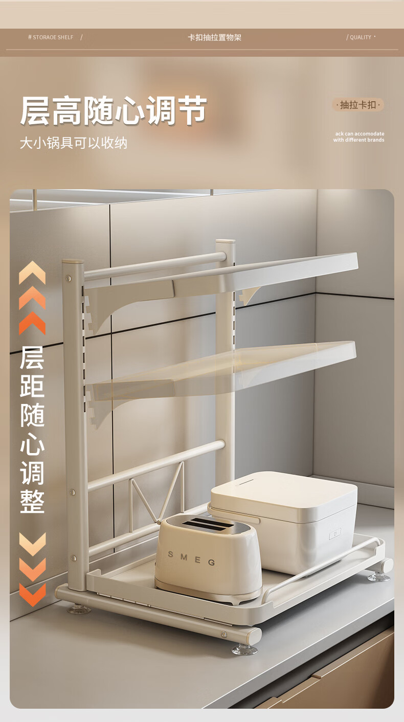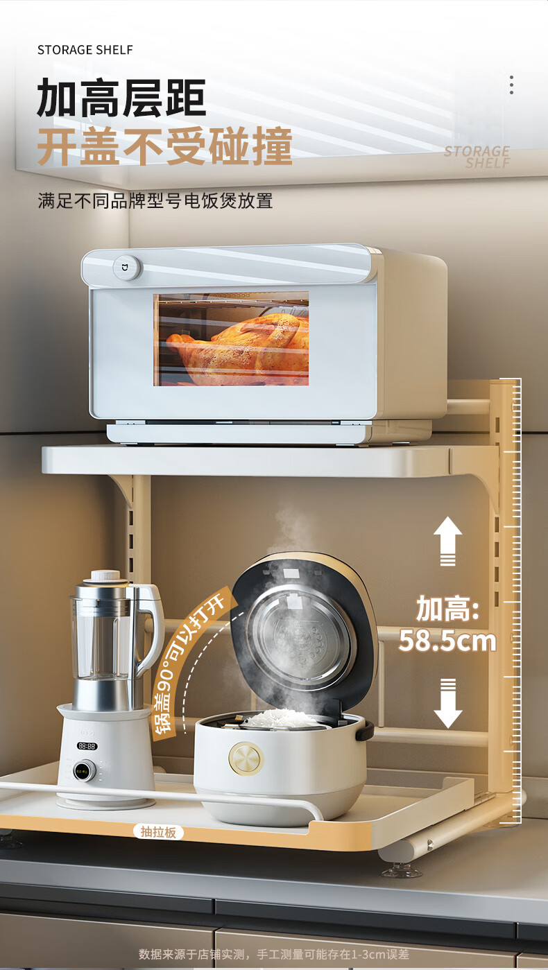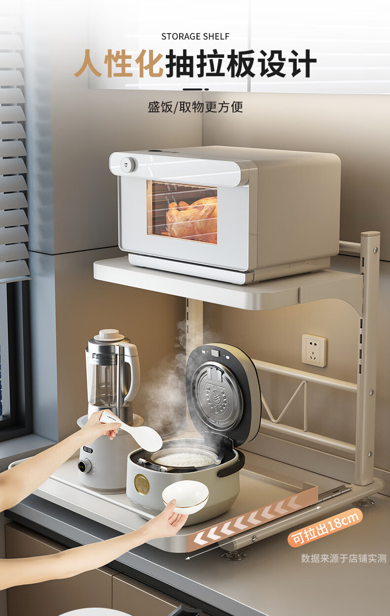 Added microwave oven rack pull-out kitchen rice cooker shelf countertop multi-functional appliance oven storage rack