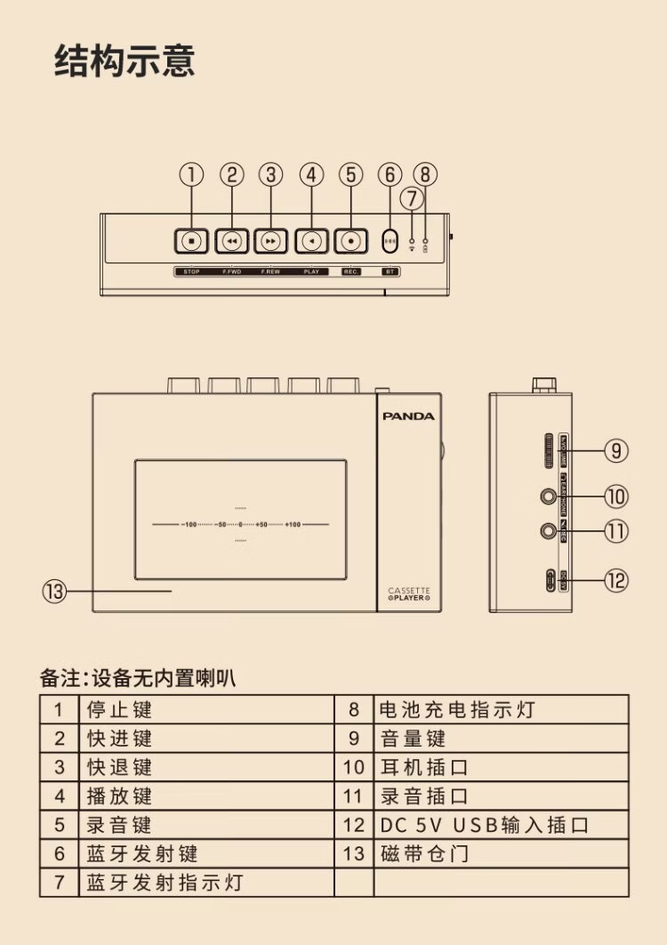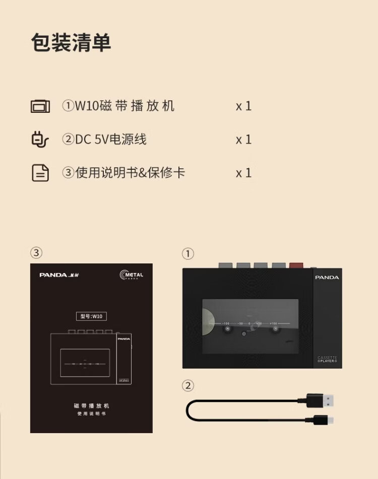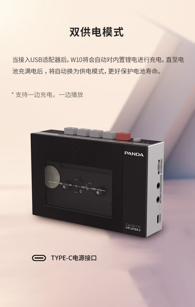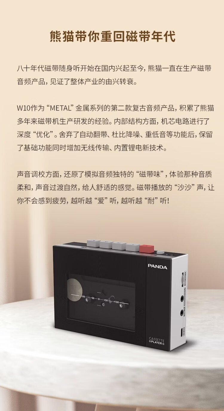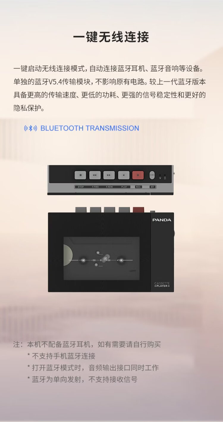 Panda (panda) W10 stereo tape player new Bluetooth tape walkman recorder old-fashioned nostalgic retro cassette player (standard version)