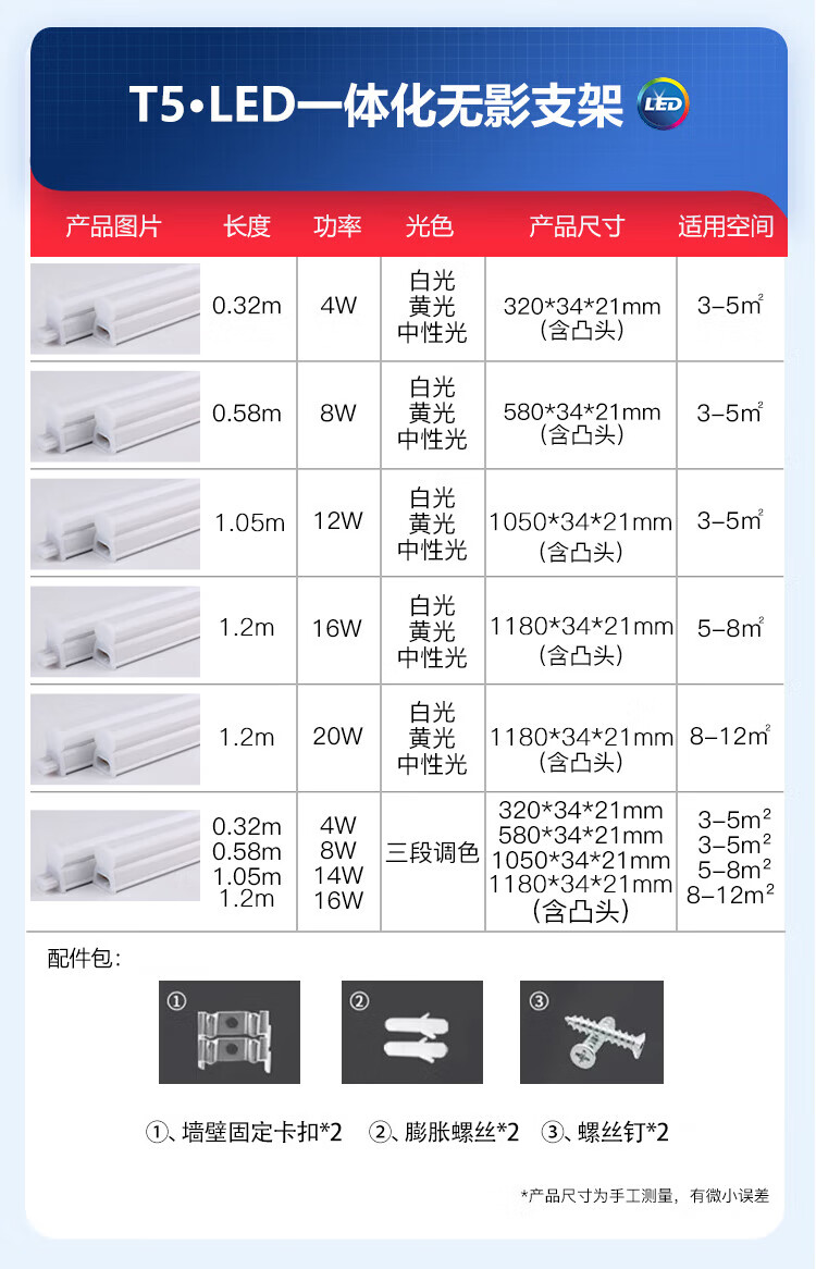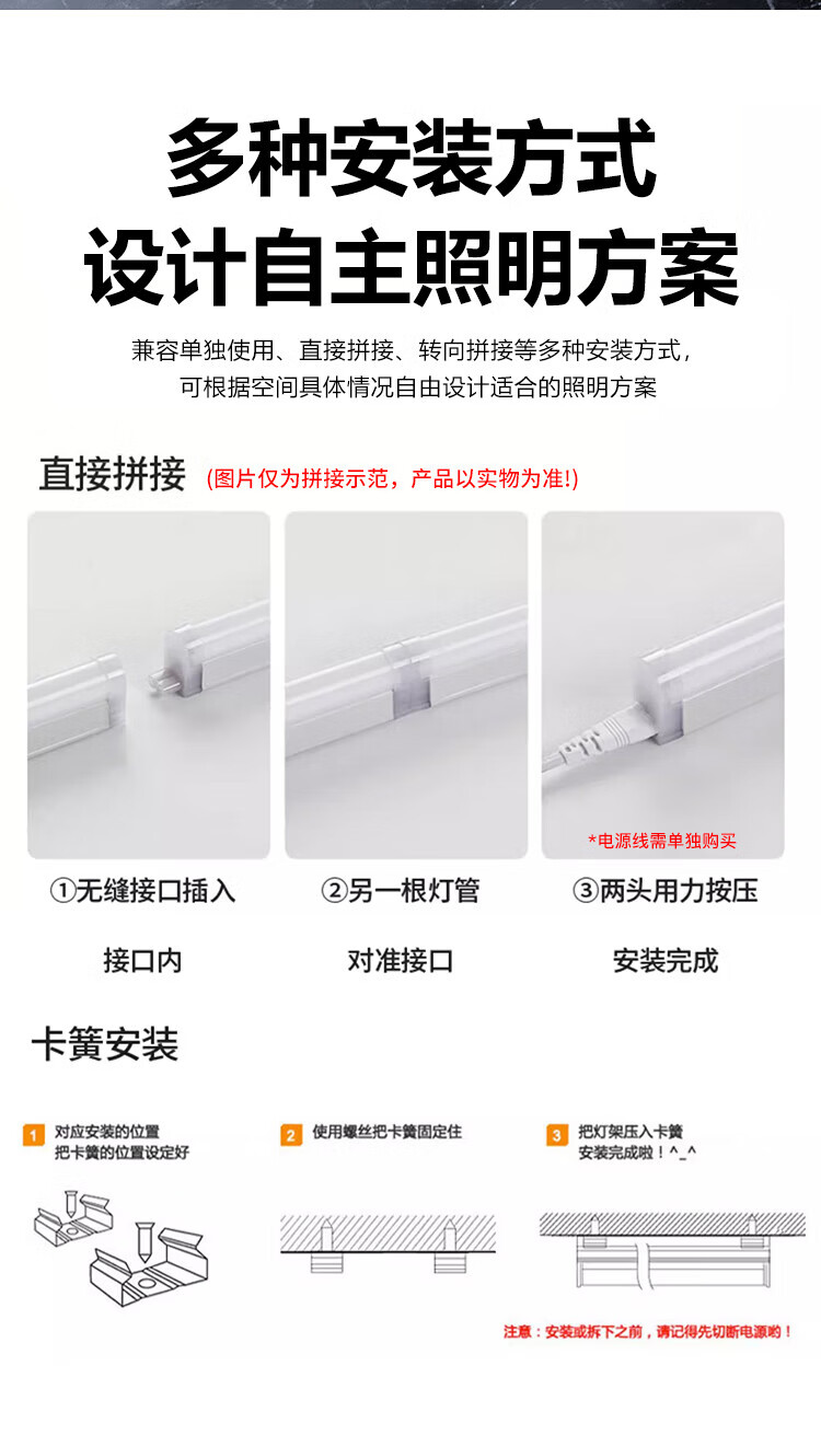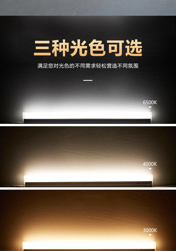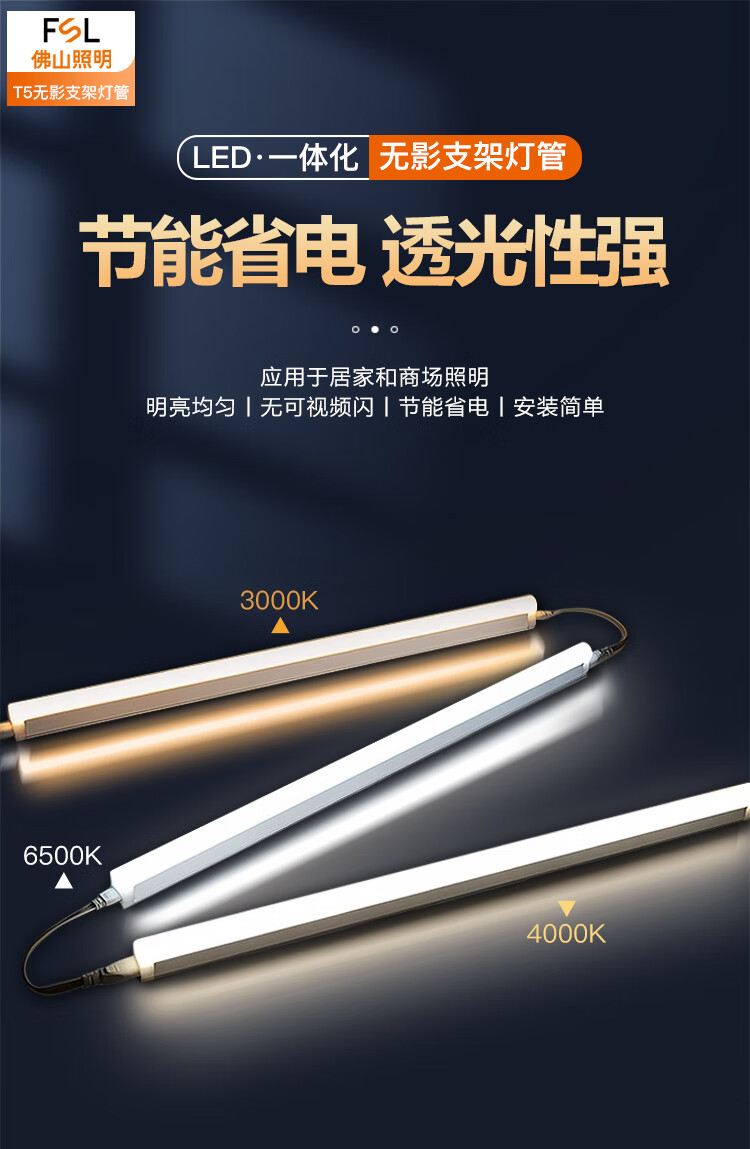 FSL Foshan Lighting T5LED integrated bracket lamp fluorescent energy-saving lamp complete set of shadowless bracket 20W white light 1.2 meters male and female plug can be connected in series second generation upgrade