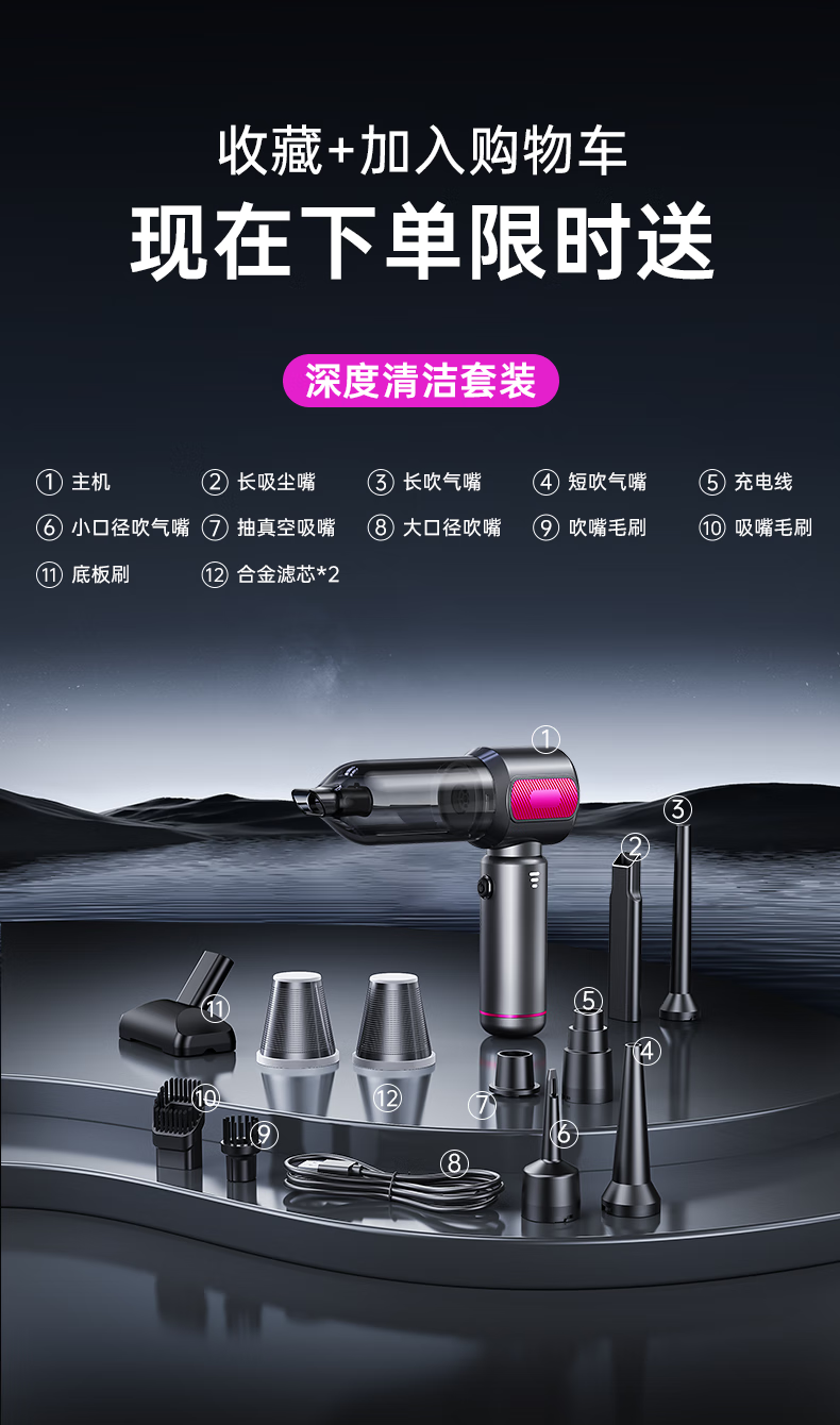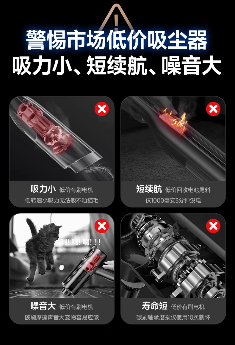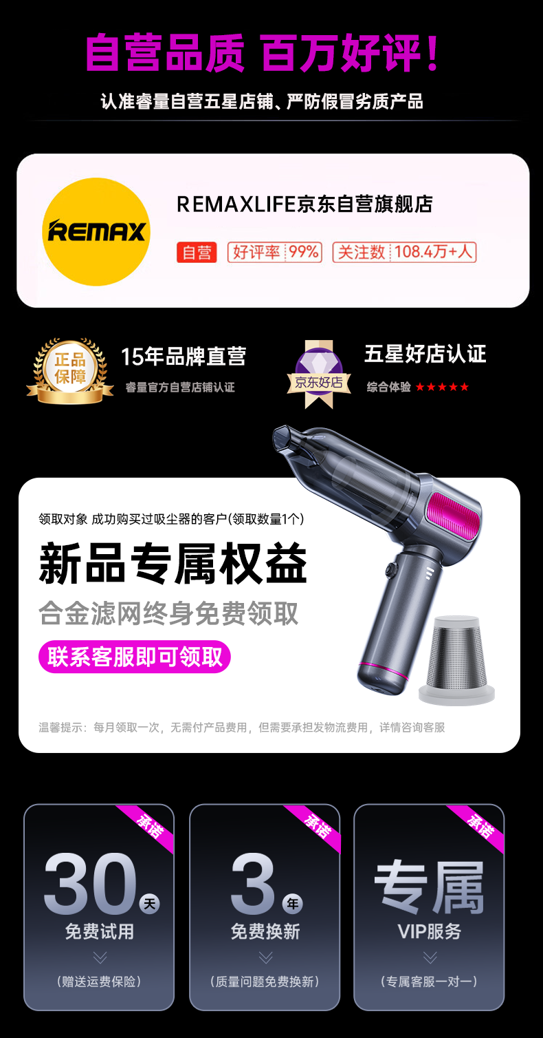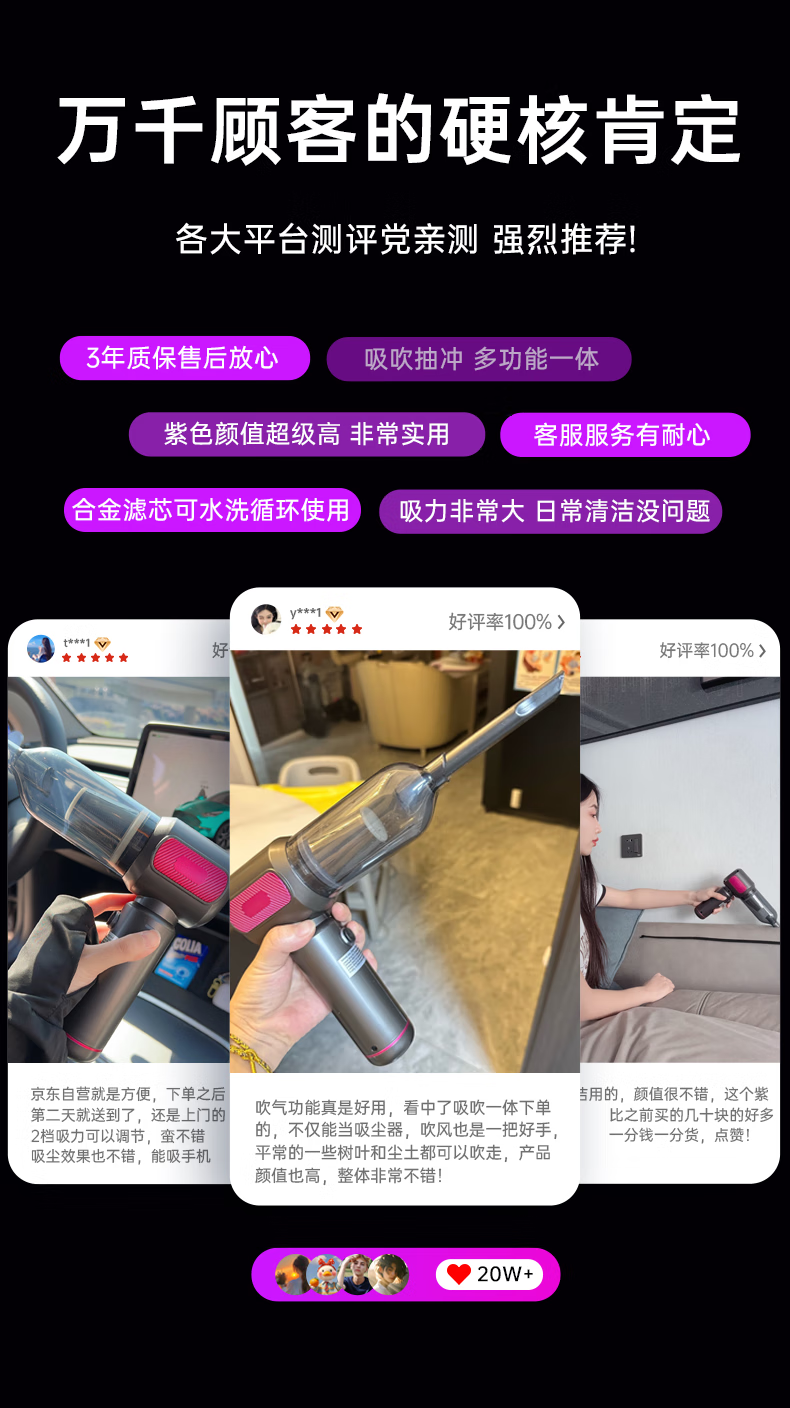 REWONDER Car Vacuum Cleaner High Suction Wireless Home Handheld Vacuum Cleaner Small Pencil Brushless Car Home Dual-Use Long Battery Life Compact and Convenient Gray 20000Pa