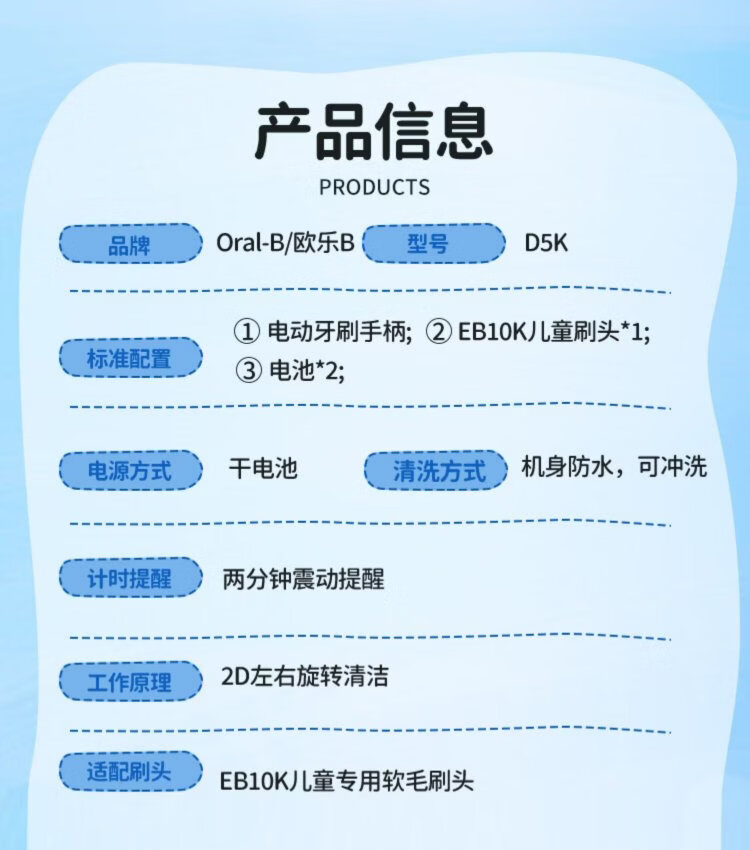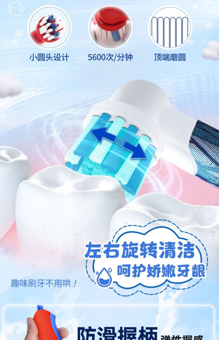 Oral-B children's electric toothbrush rotating small round head cartoon toothbrush 3-12 years old, random style, battery model DB5510K
