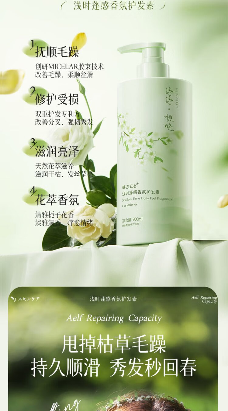 Korean herbal grain conditioner 800ml, smooth, dry and frizzy, repair and smooth, fragrant hair mask for men and women, No. 1