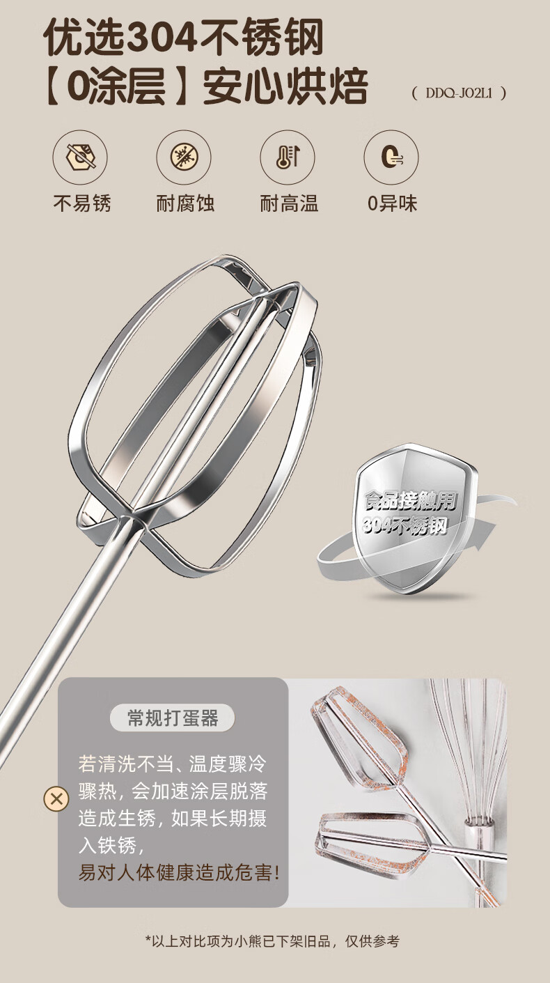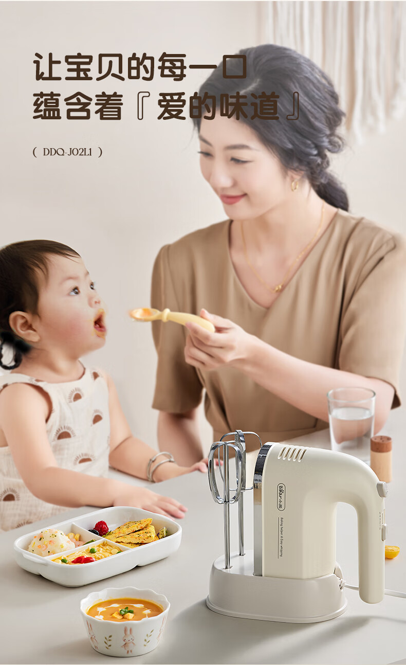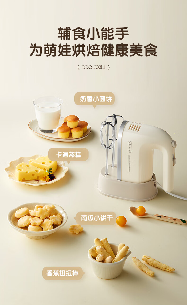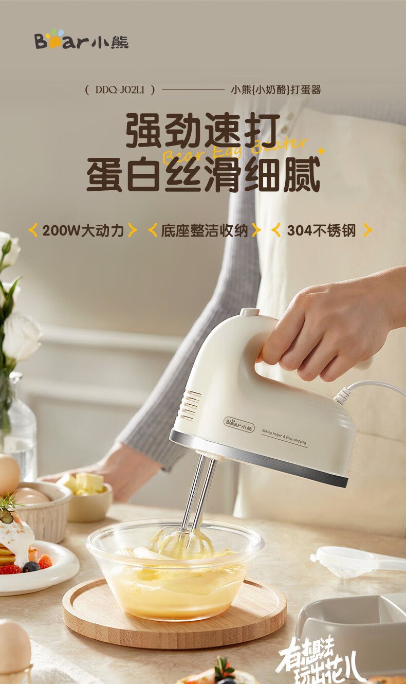 Bear egg beater household electric egg beater with base mini cream whipper baking handheld 304 stainless steel automatic egg beater mixer frother DDQ-J02L1