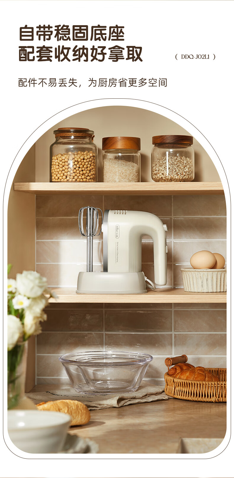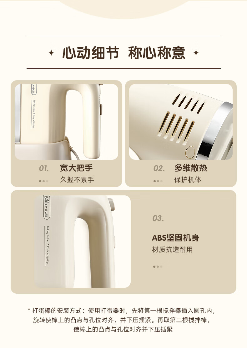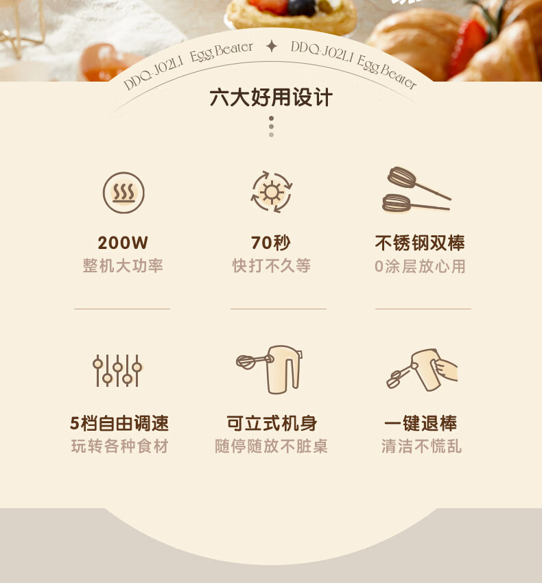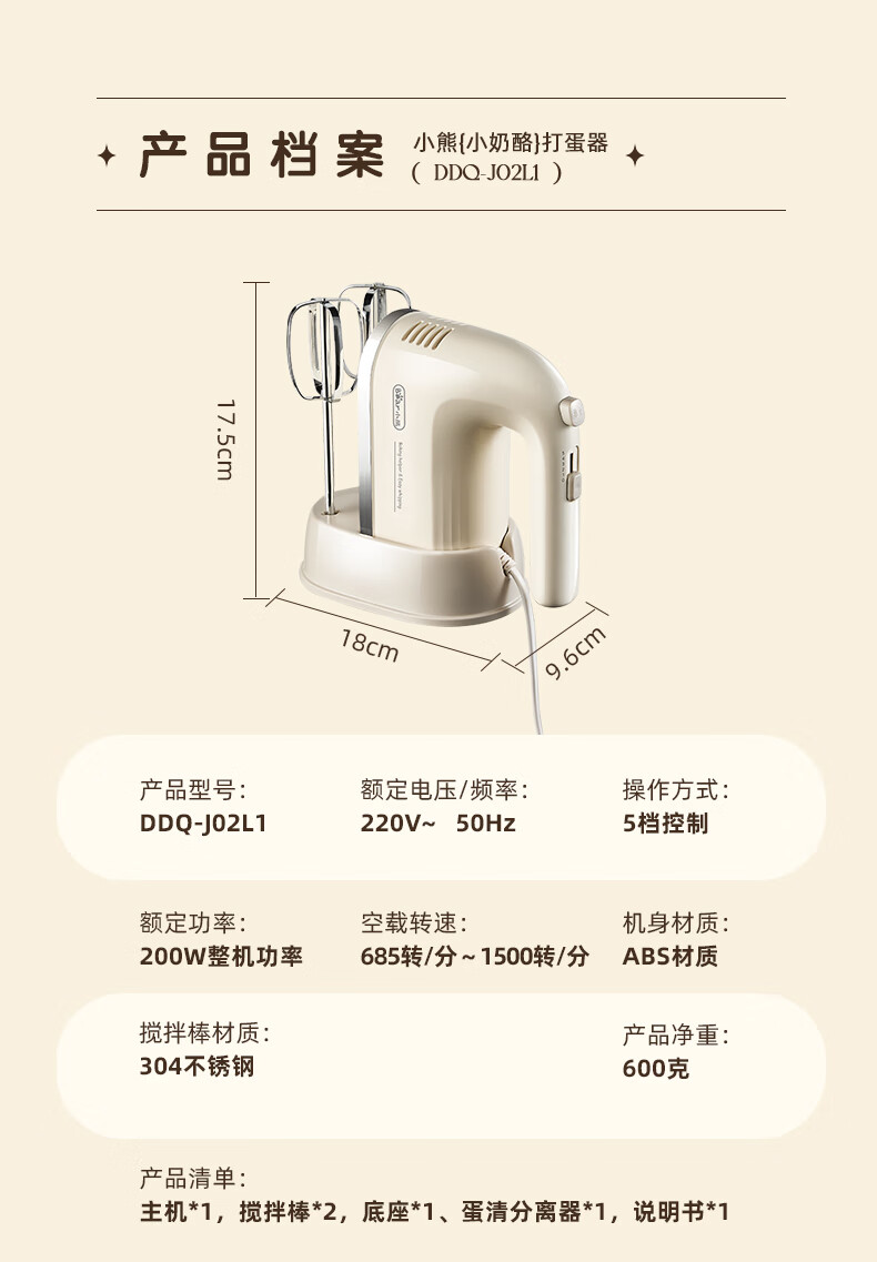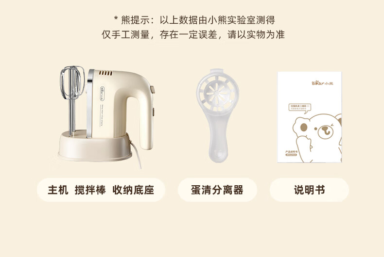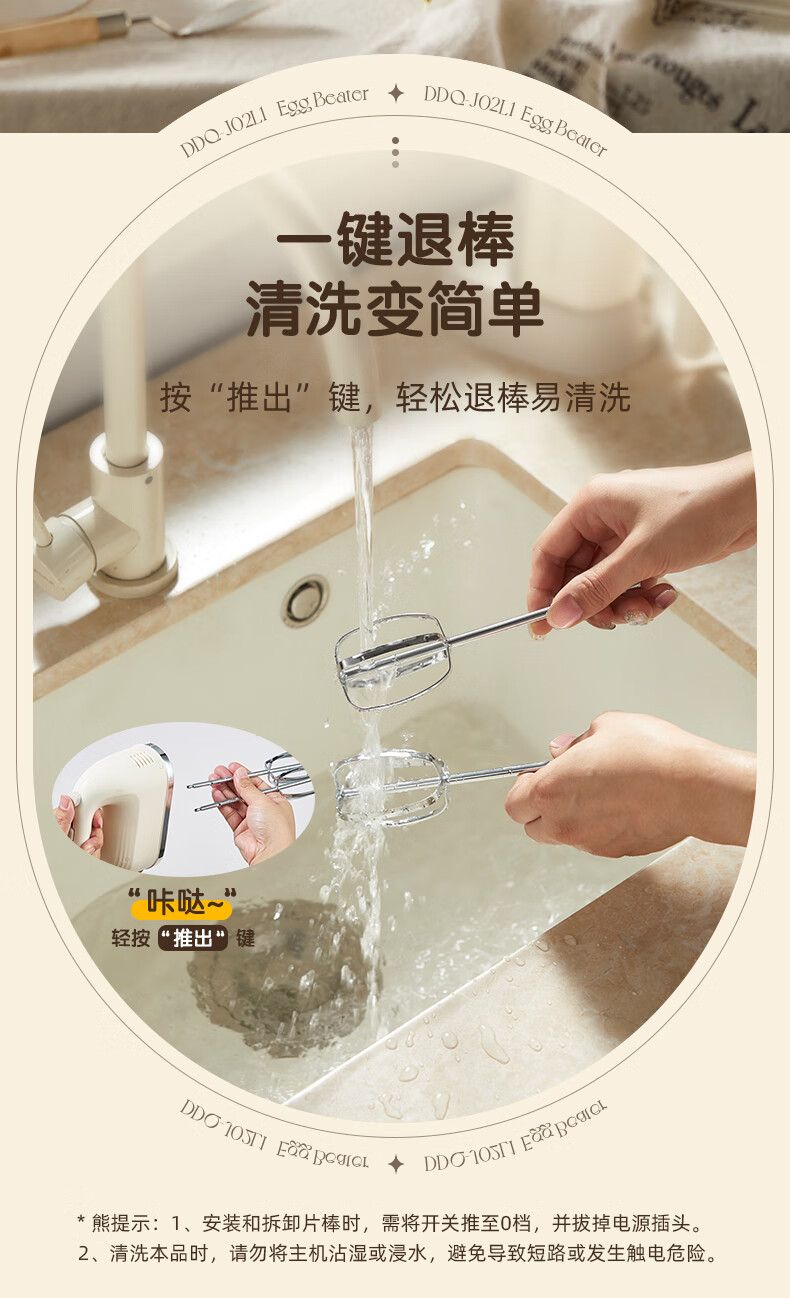 Bear egg beater household electric egg beater with base mini cream whipper baking handheld 304 stainless steel automatic egg beater mixer frother DDQ-J02L1
