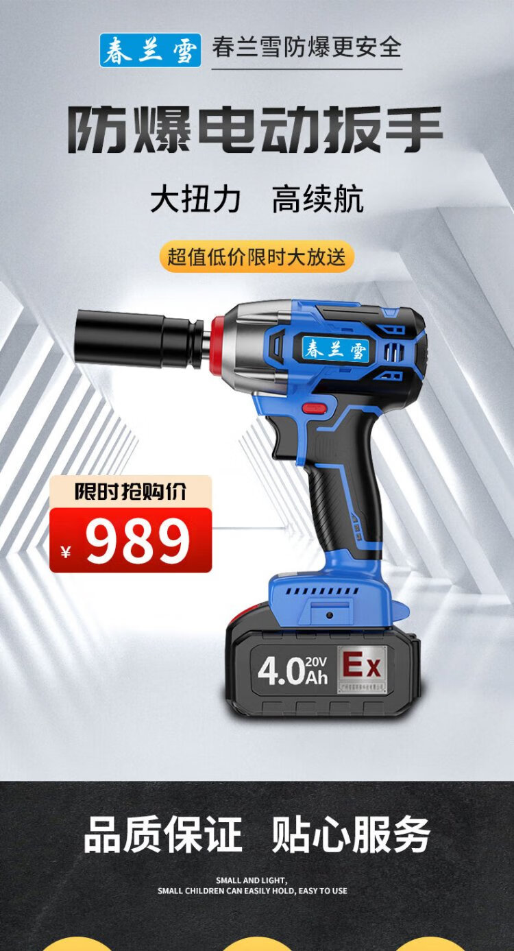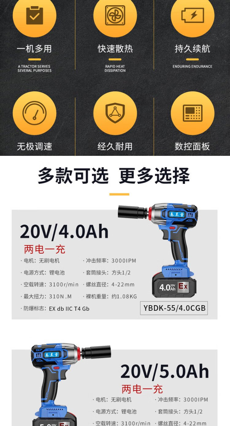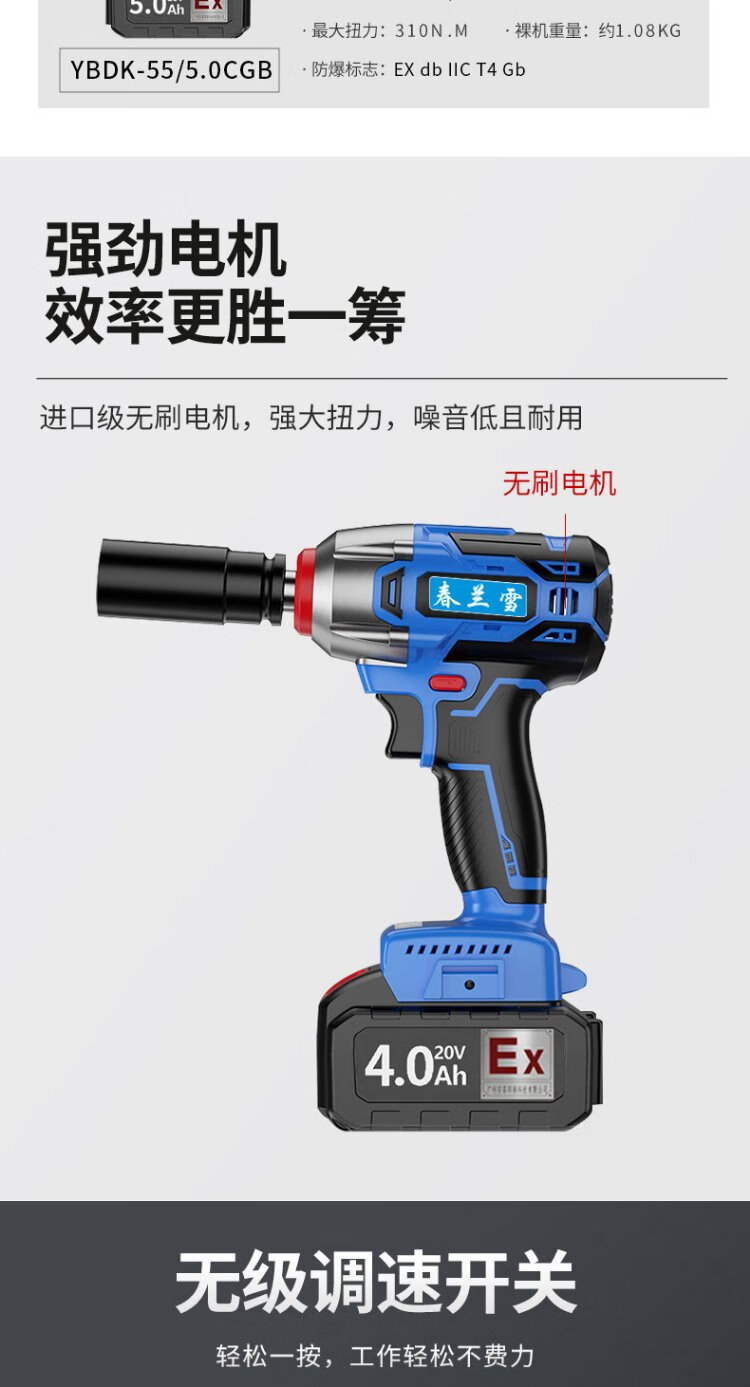Chunlanxue explosion-proof electric wrench YBDK-55/5.0CGB high-torque brushless motor chemical factory auto repair impact wind cannon explosion-proof electric tool ExdbIICT4Gb