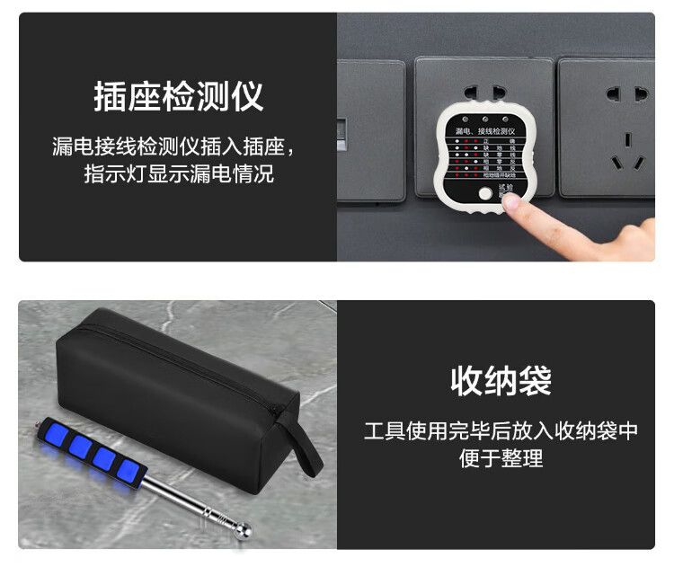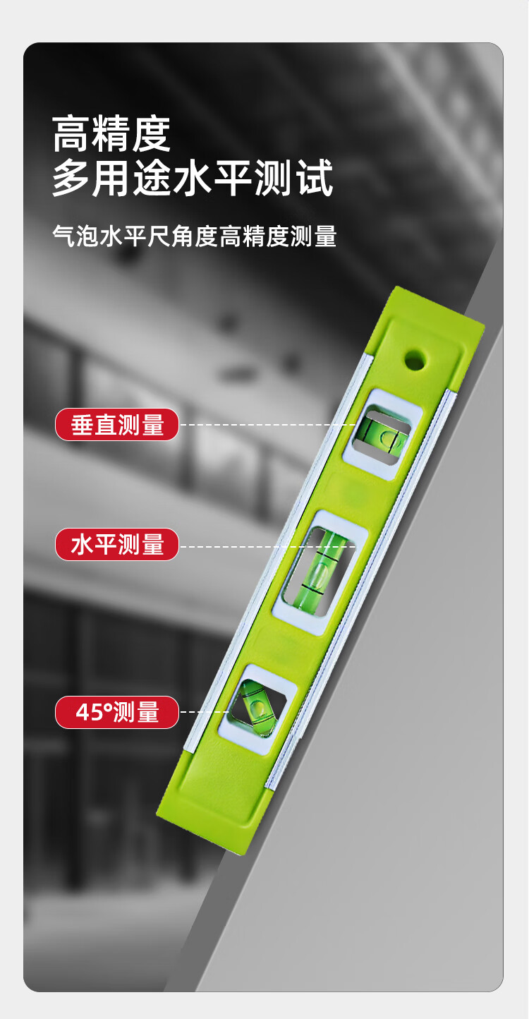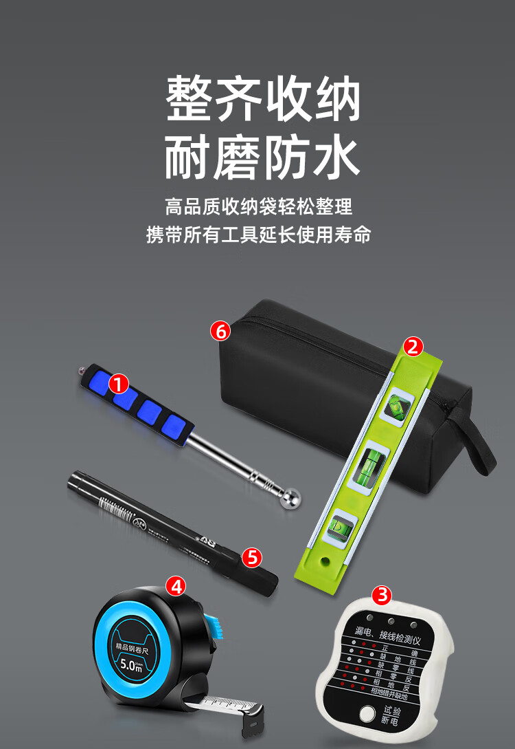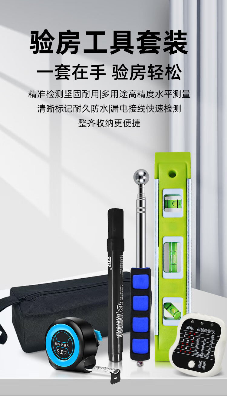 Factory No. 1 6-piece house inspection tool set to detect floor and wall tiles, empty drum hammer, marker, level ruler