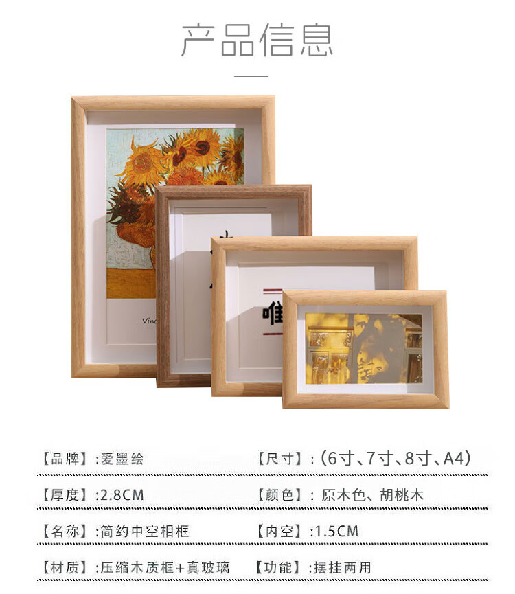 Love ink painting 5-inch photo frame table wooden photo frame creative photo frame mounting wedding baby photo wall hanging wall wood color