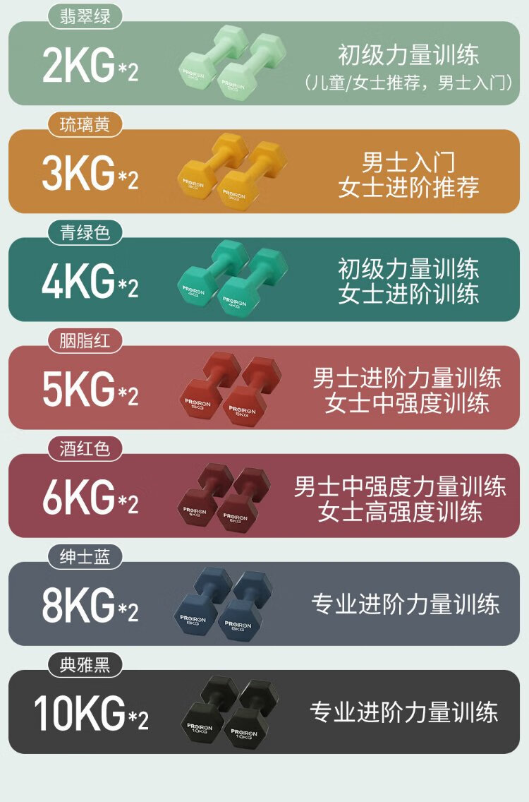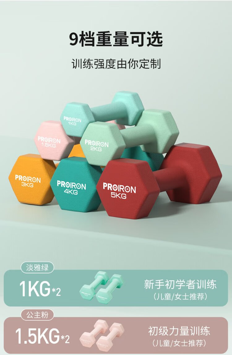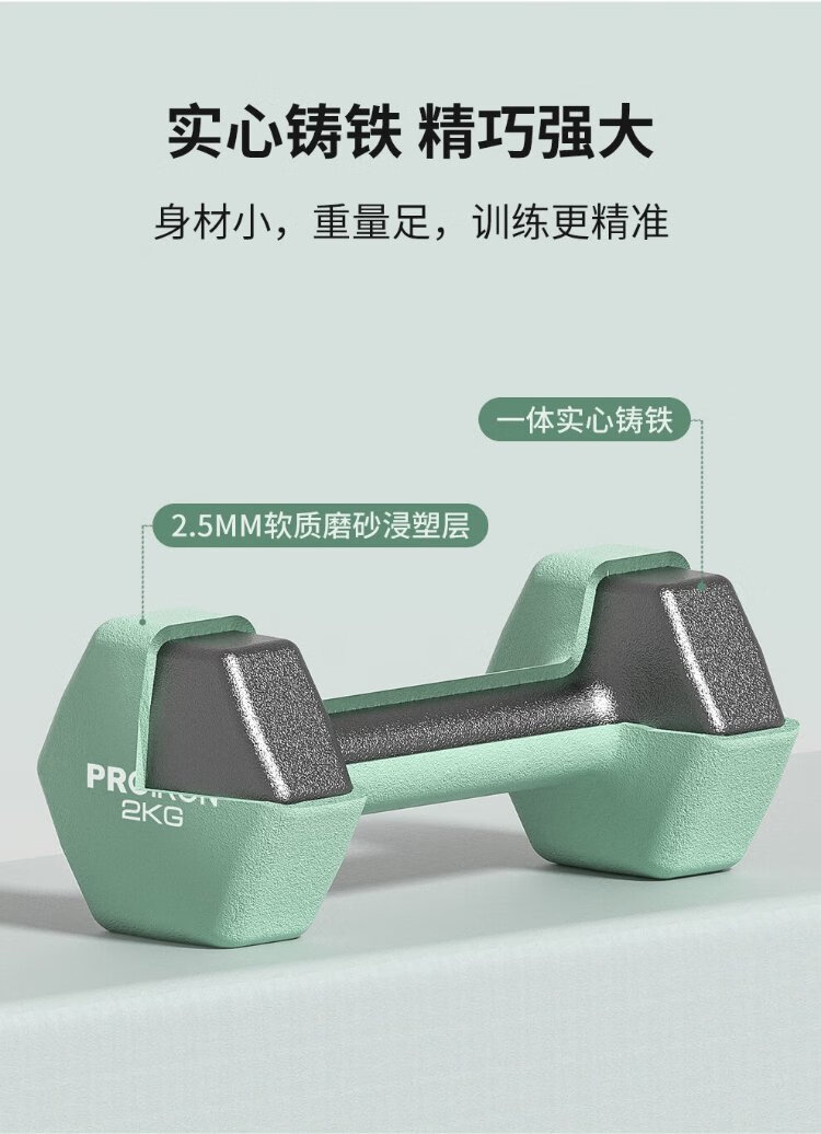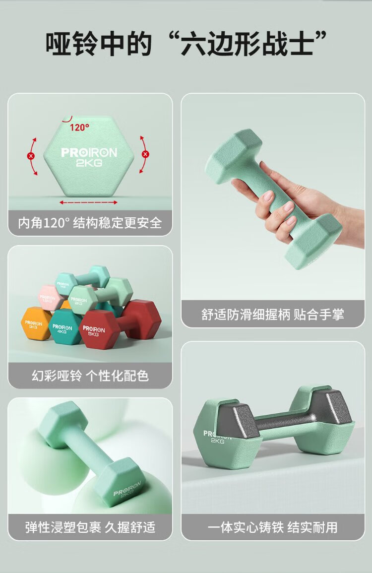 PROIRON Dumbbells Women's Home Children's Fitness Equipment Hexagonal Environmentally Friendly Pure Iron Small Dumbbells 2KG Pair