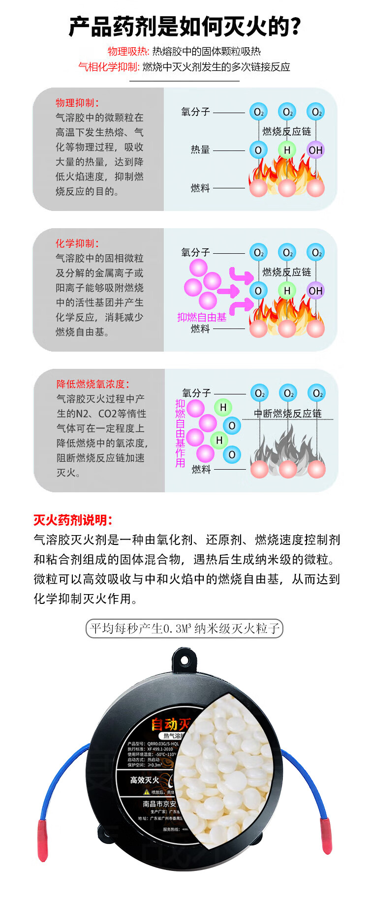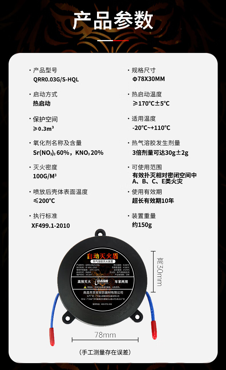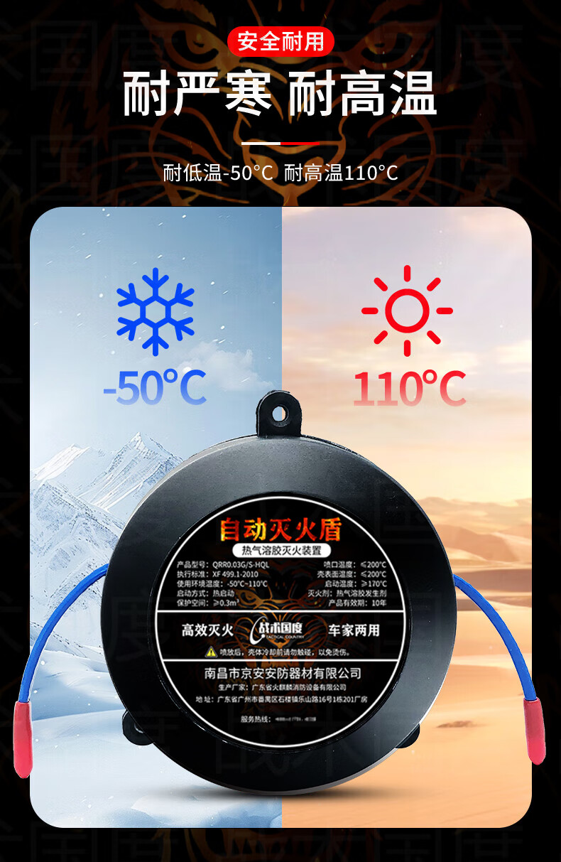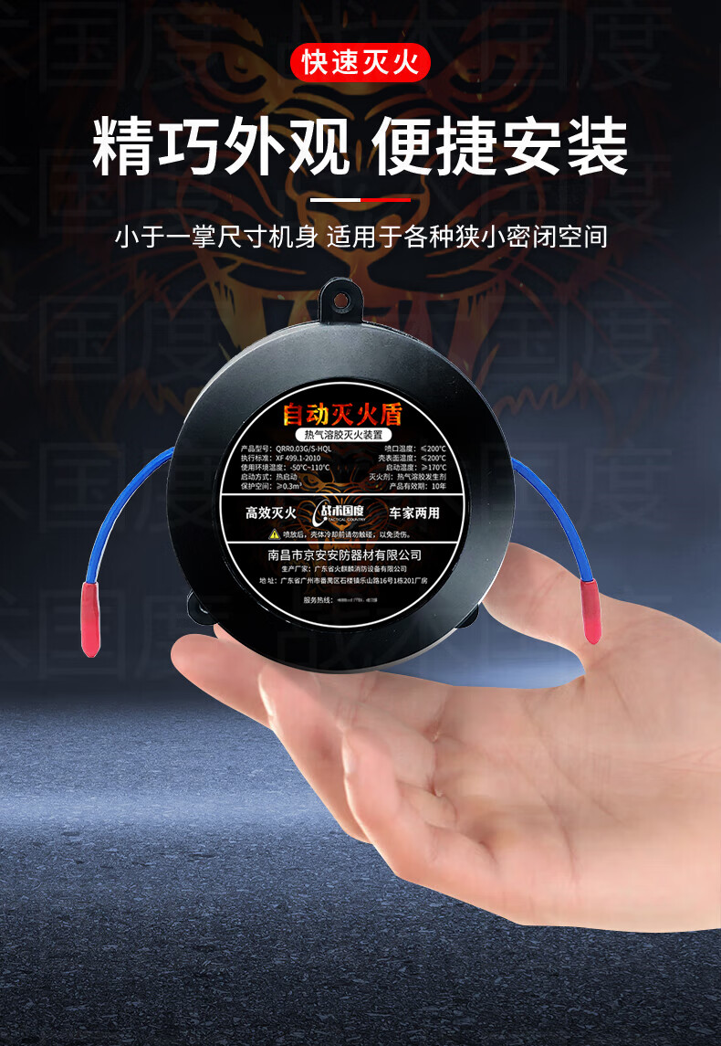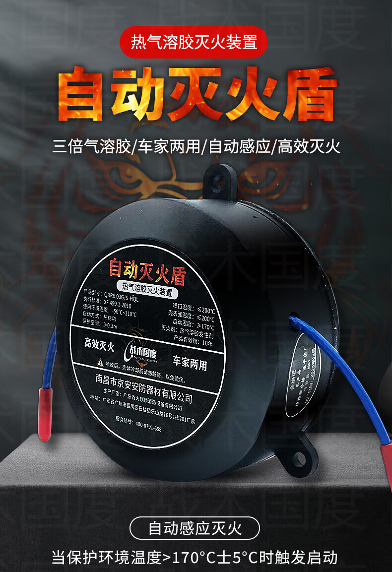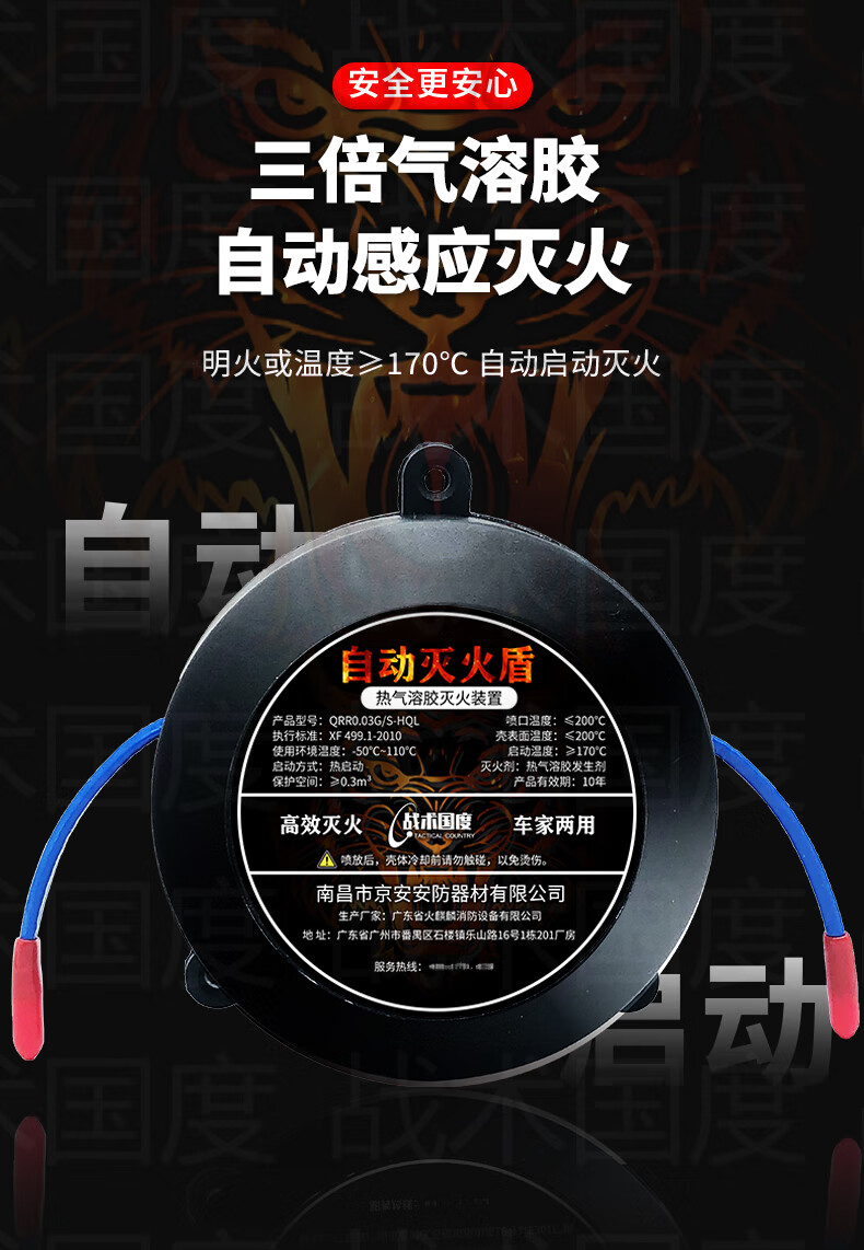 Tactical Nation automatic fire extinguishing sticker 30G valid for 10 years, dual-use for car and home, vehicle engine compartment distribution box plug-in confined space aerosol fire extinguisher QRR0.03G/S-HQL