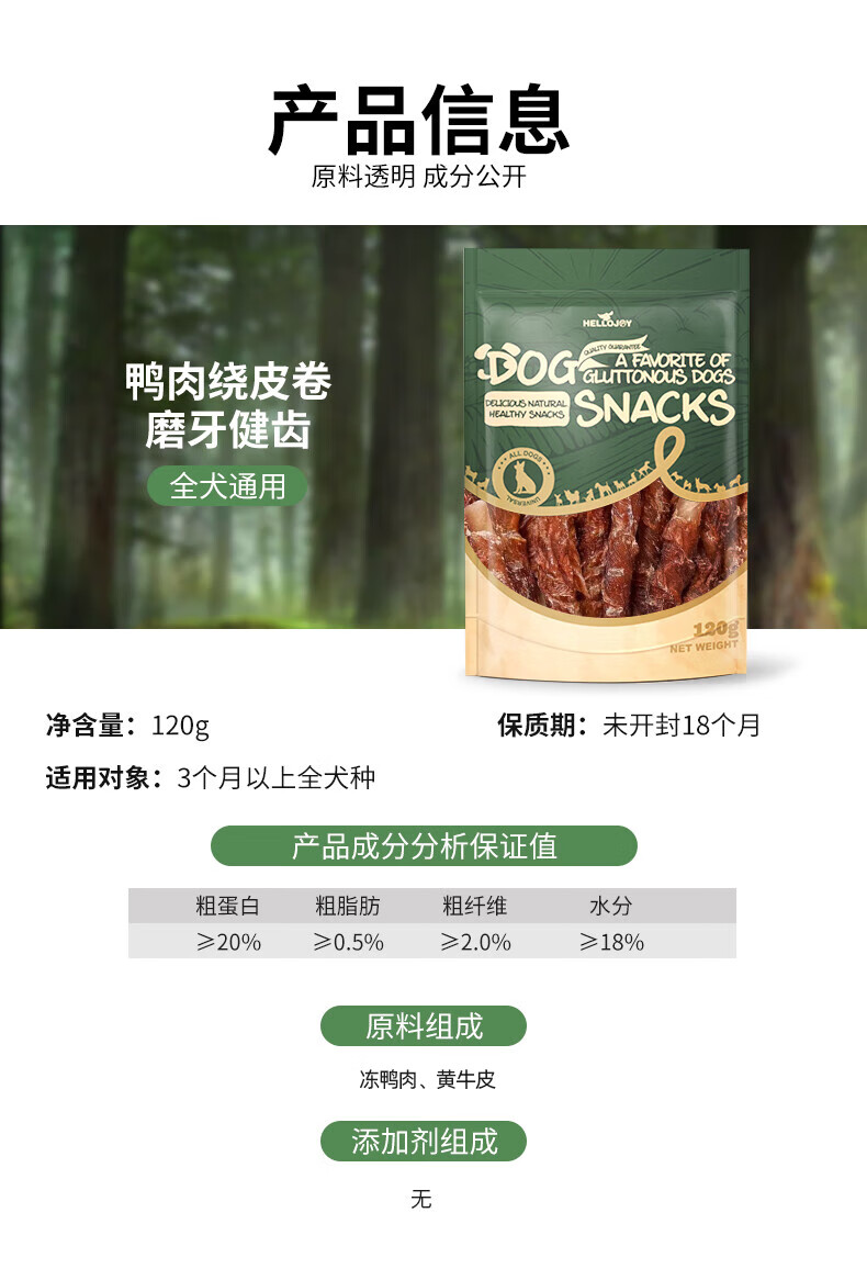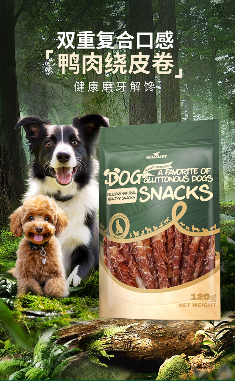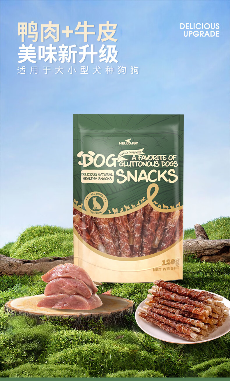 HELLOJOY Dog Snacks Teeth Sticks for Small and Medium-sized Dogs, Adults and Puppies, Clean Teeth and Bones, Resistant to Chewing Bones, Duck Meat Wrapped in Cowhide Rolls 120g