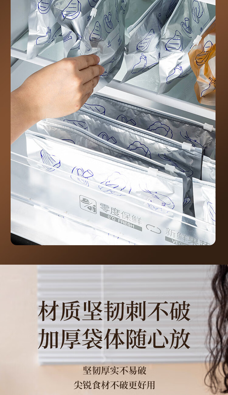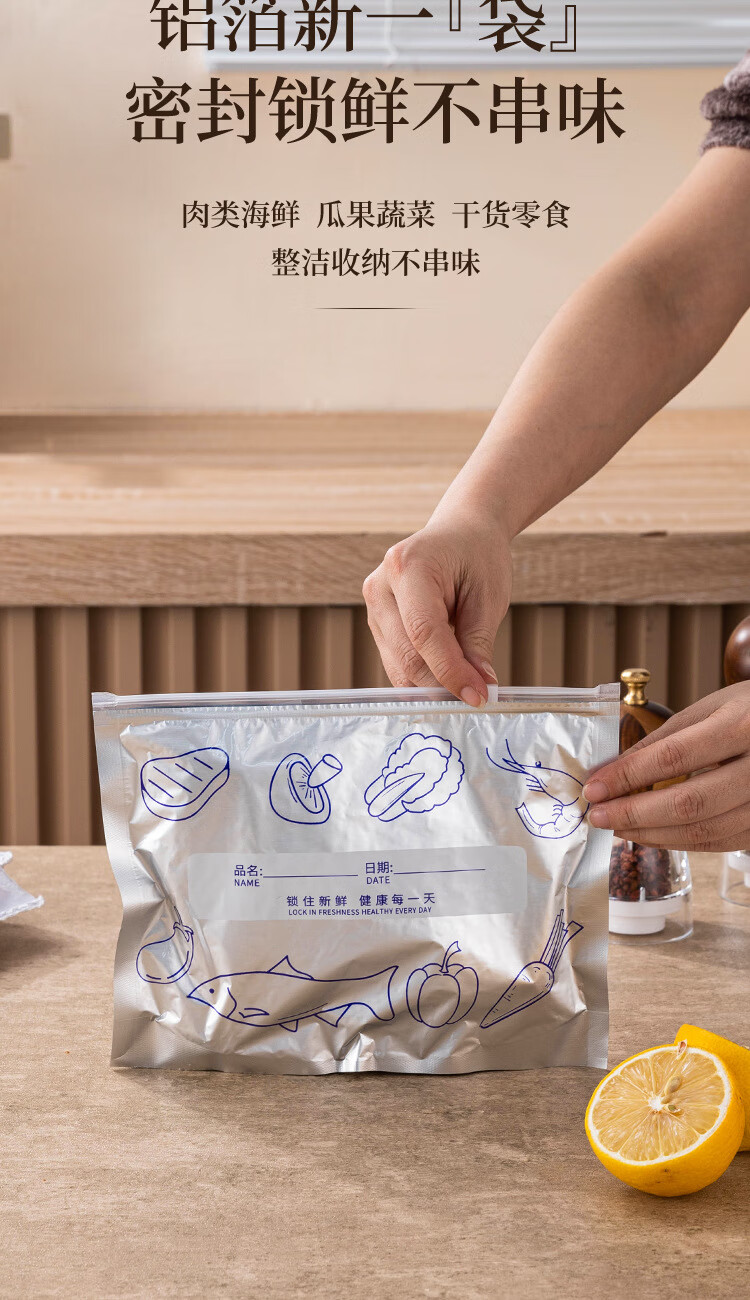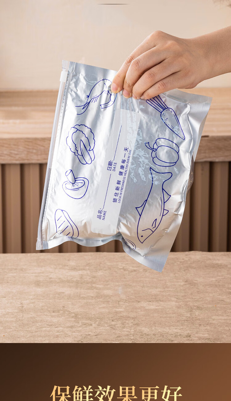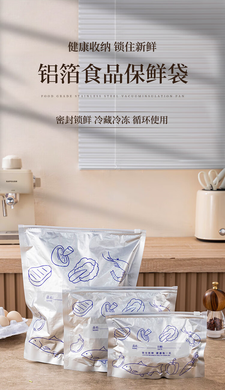 Mashifu aluminum foil fresh-keeping bag, food-grade sealed bag, special thickened self-sealing bag for refrigerator and freezer, zipper type, small + medium + large (10 pieces each)