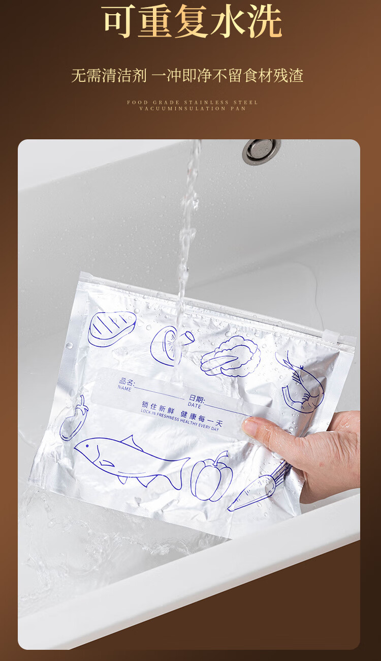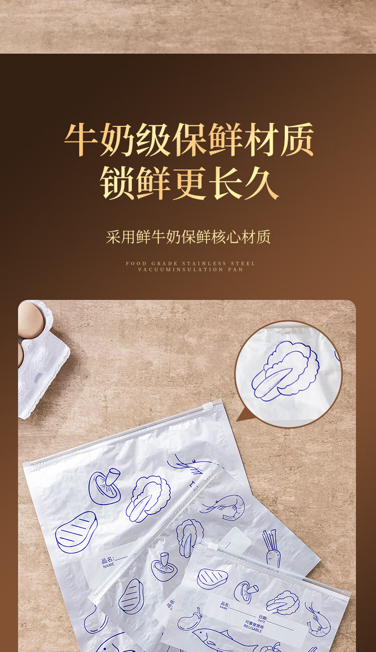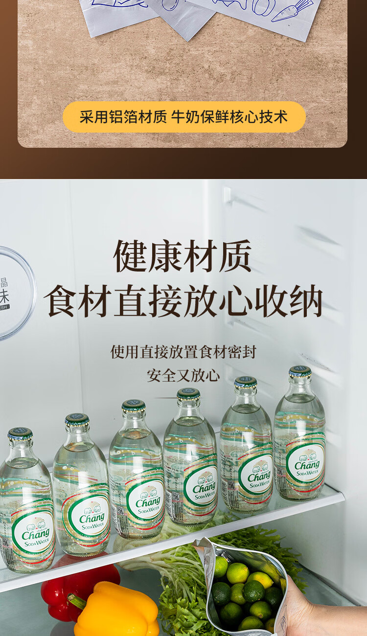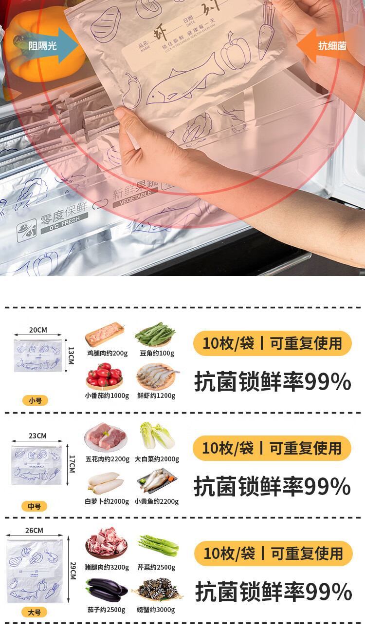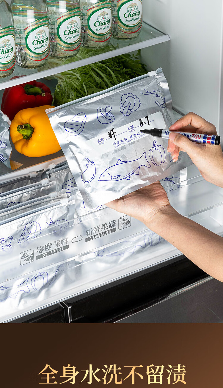 Mashifu aluminum foil fresh-keeping bag, food-grade sealed bag, special thickened self-sealing bag for refrigerator and freezer, zipper type, small + medium + large (10 pieces each)