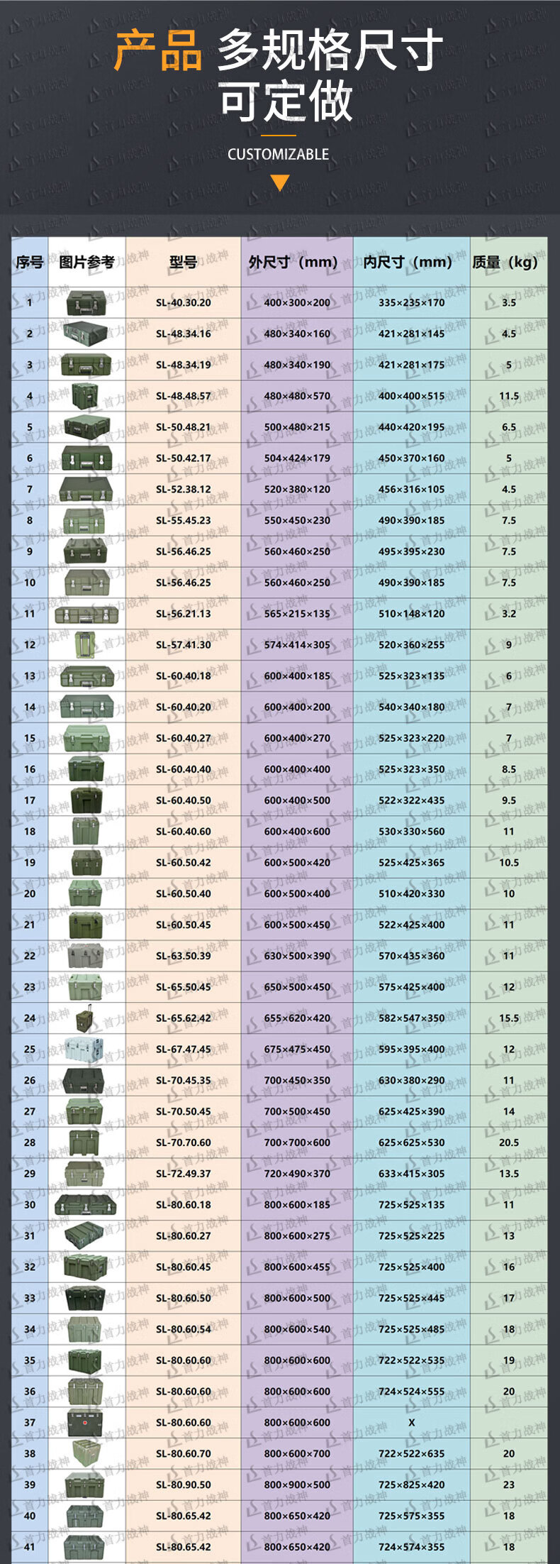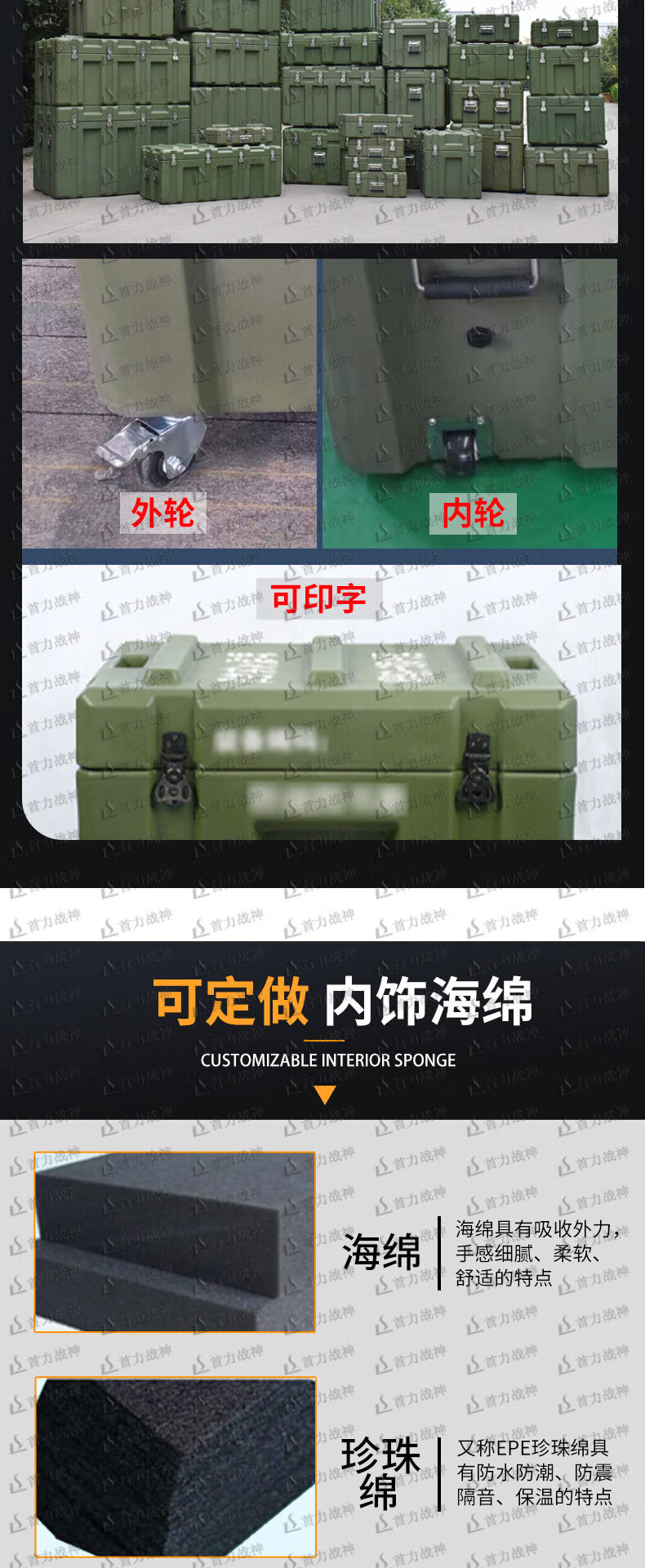 Shouli God of War rotational molding box 800*600*500mm portable equipment box supply box precision instrument box airdrop box military green equipment box 25 styles