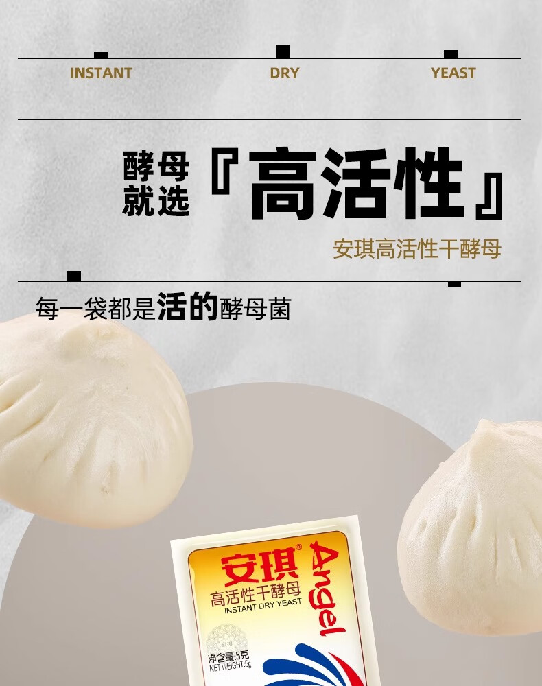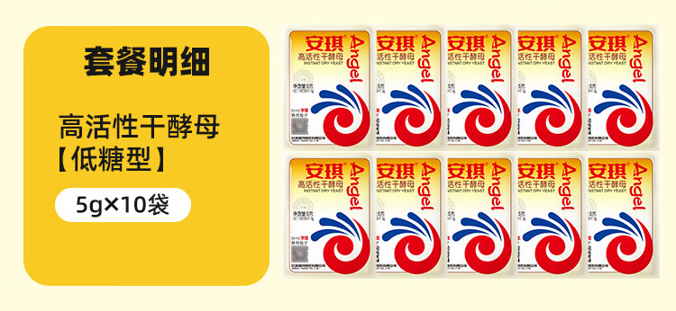 Angel low-sugar high-activity yeast 5g*10 bags, baking powder, steamed buns, dry yeast buns, Chinese pastries