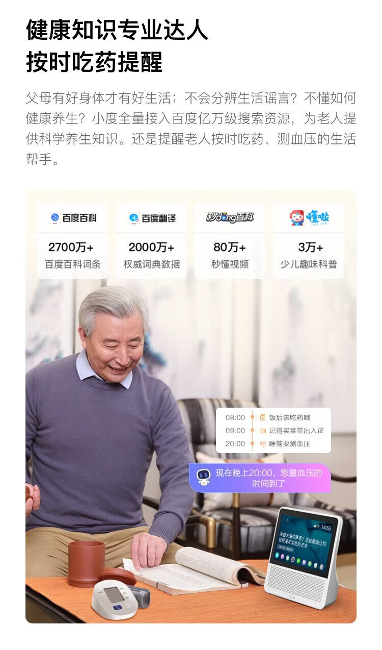 Xiaodu Smart Screen 1S Plus Wenxin large model empowers smart speaker audio 8-inch large screen video call entertainment audio and video care and companionship gift for children and the elderly