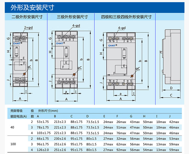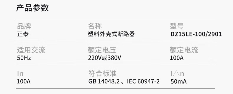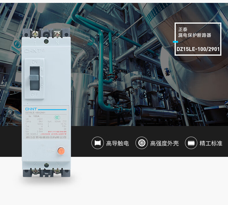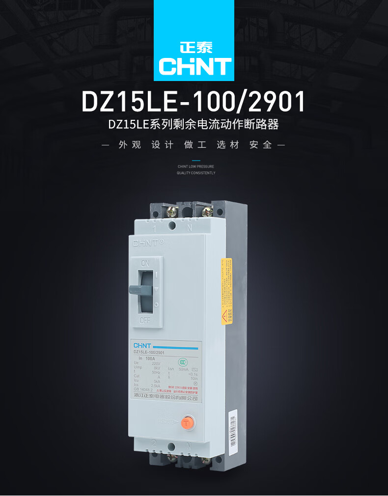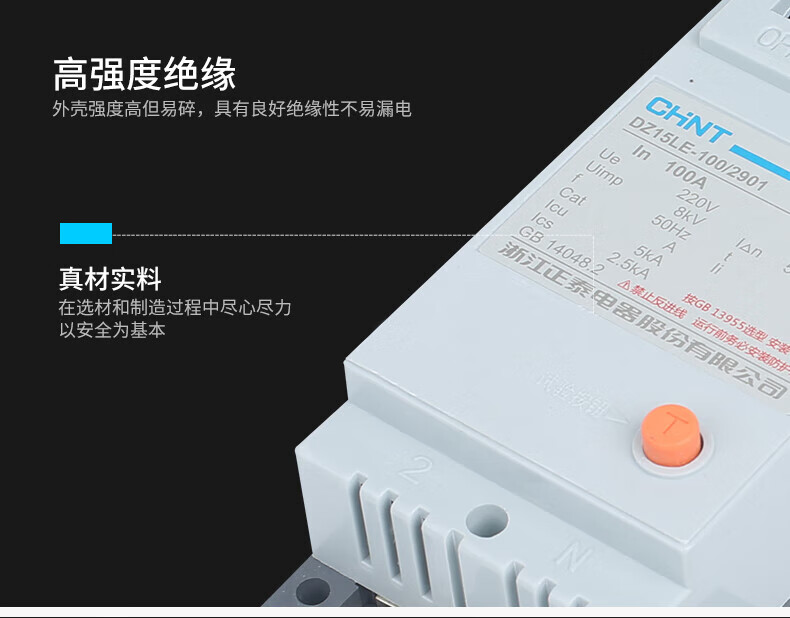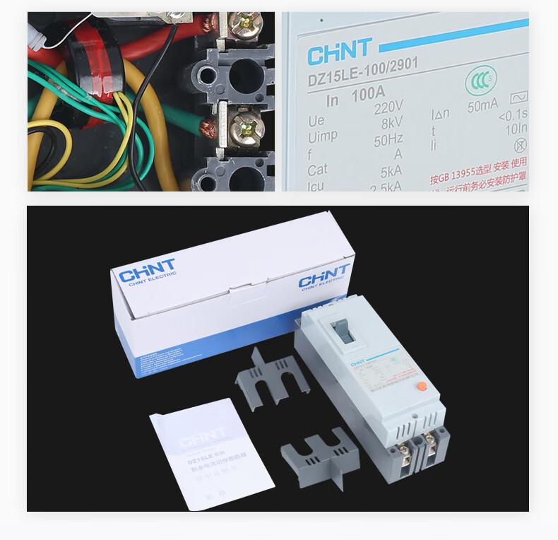 Chint (CHNT) plastic case circuit breaker leakage protector DZ15LE-100/4901 100A four-phase 380V 4P 100A plastic case air-opening with leakage protection