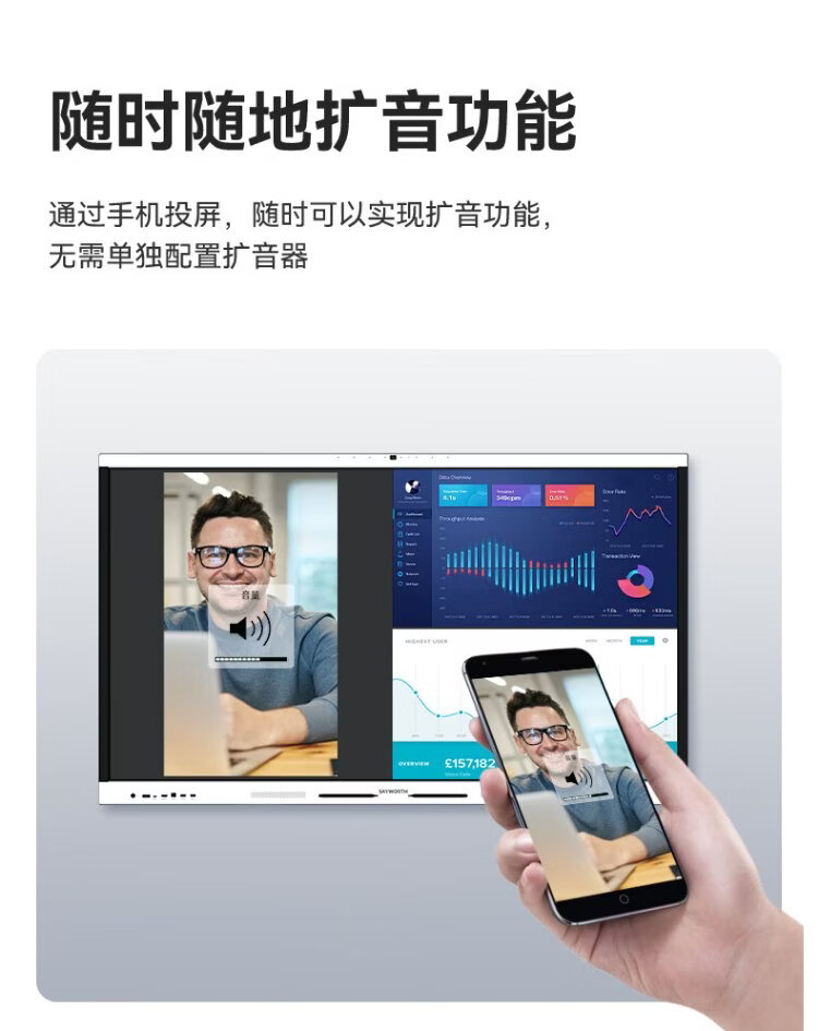 Skyworth 100-inch conference tablet all-in-one electronic whiteboard wireless projection video conference touch TV office training teaching 100MBK7 dual system