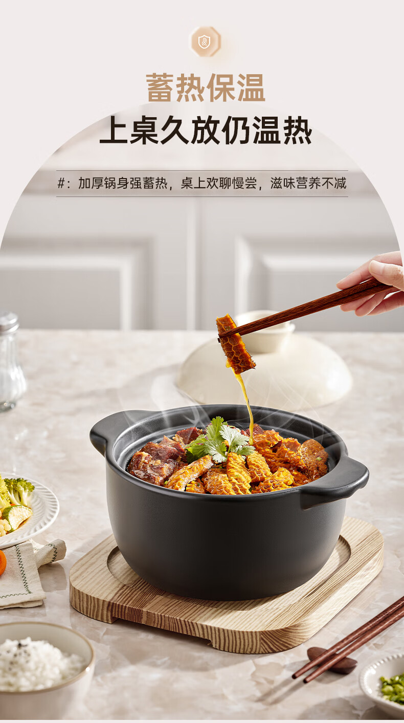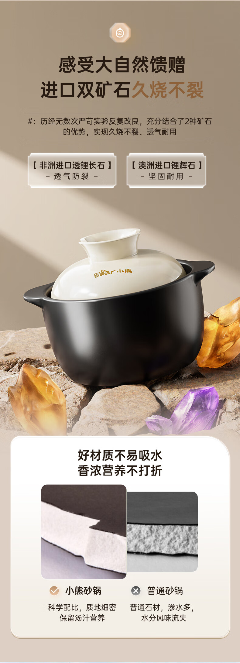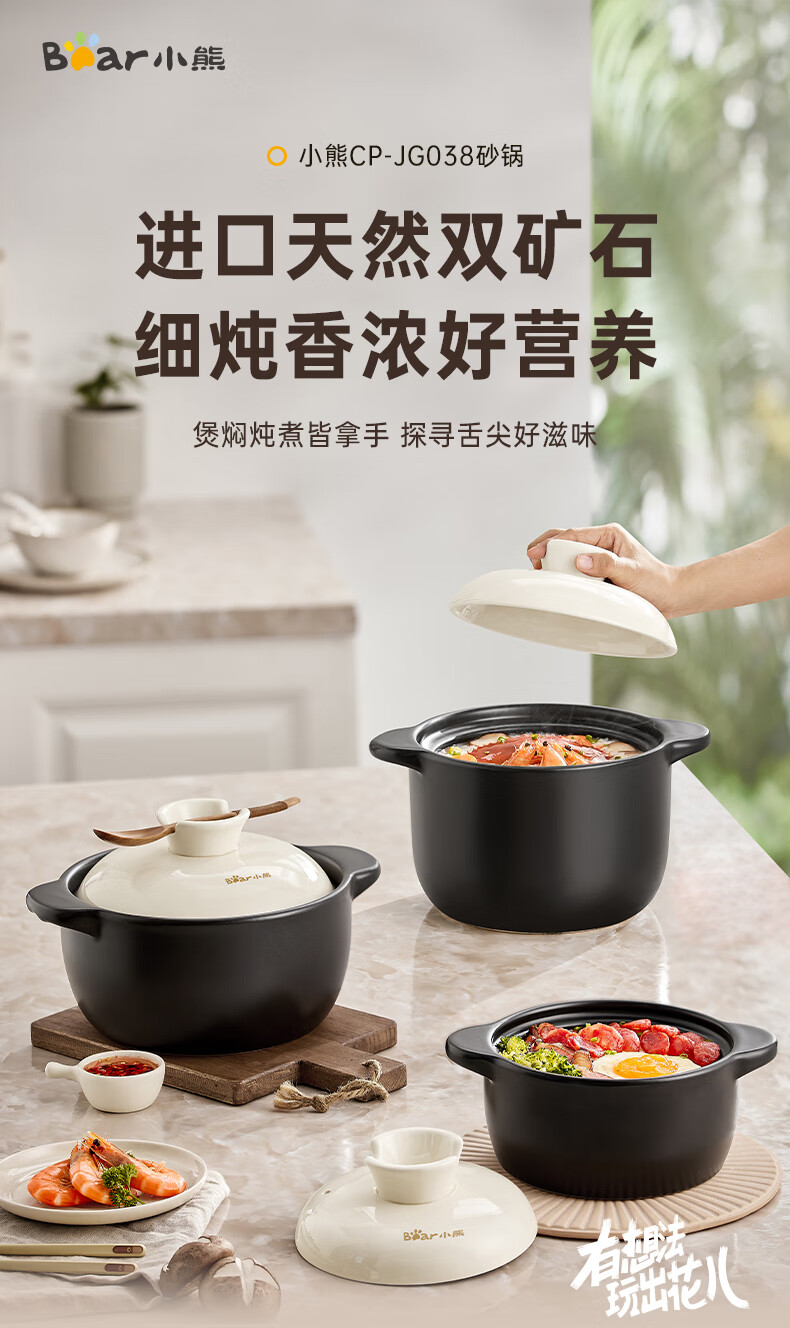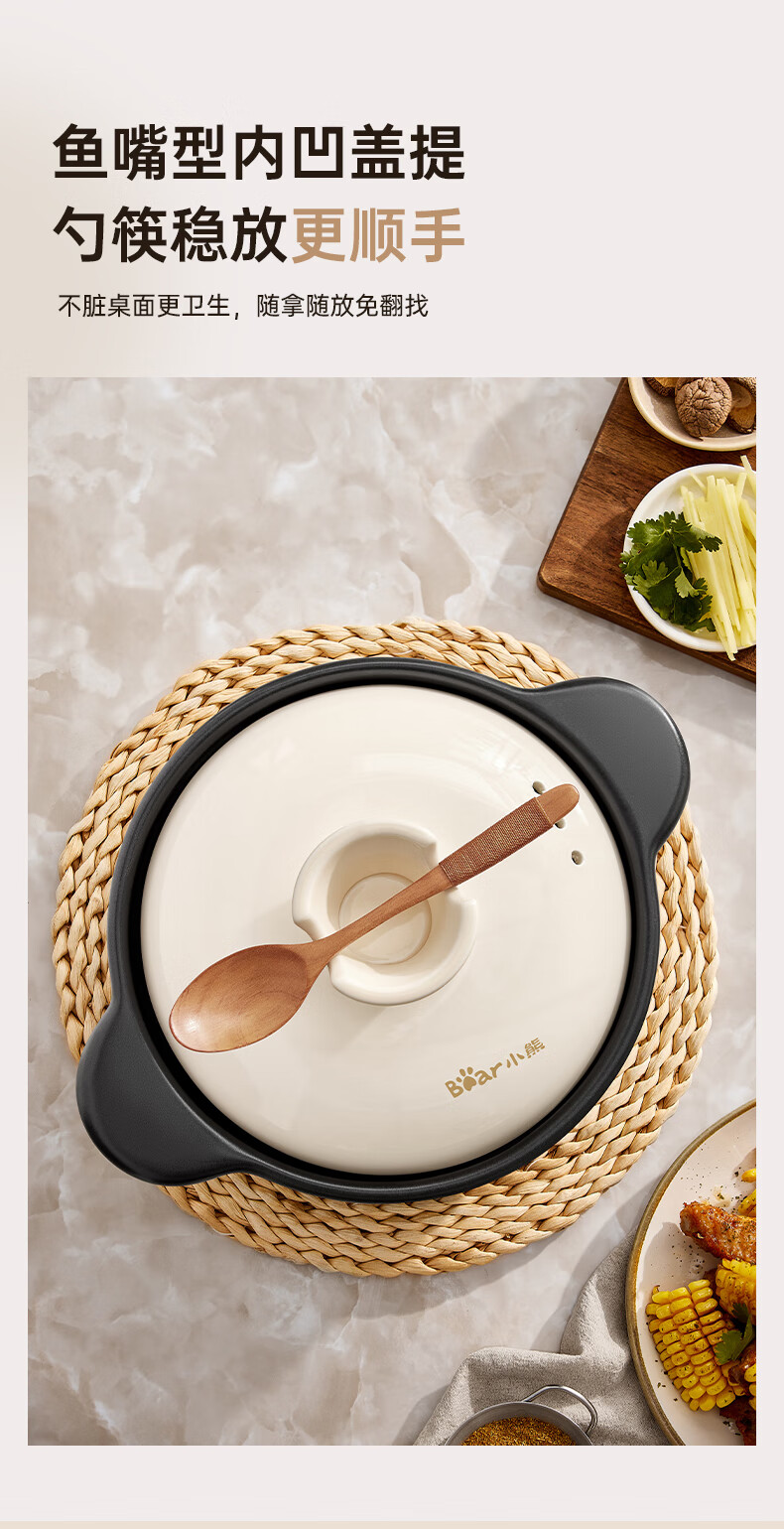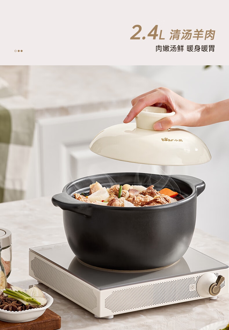 Bear casserole soup pot stew pot natural ore 2.4L high temperature resistant non-cracking clay pot rice soup cooking porridge open flame gas