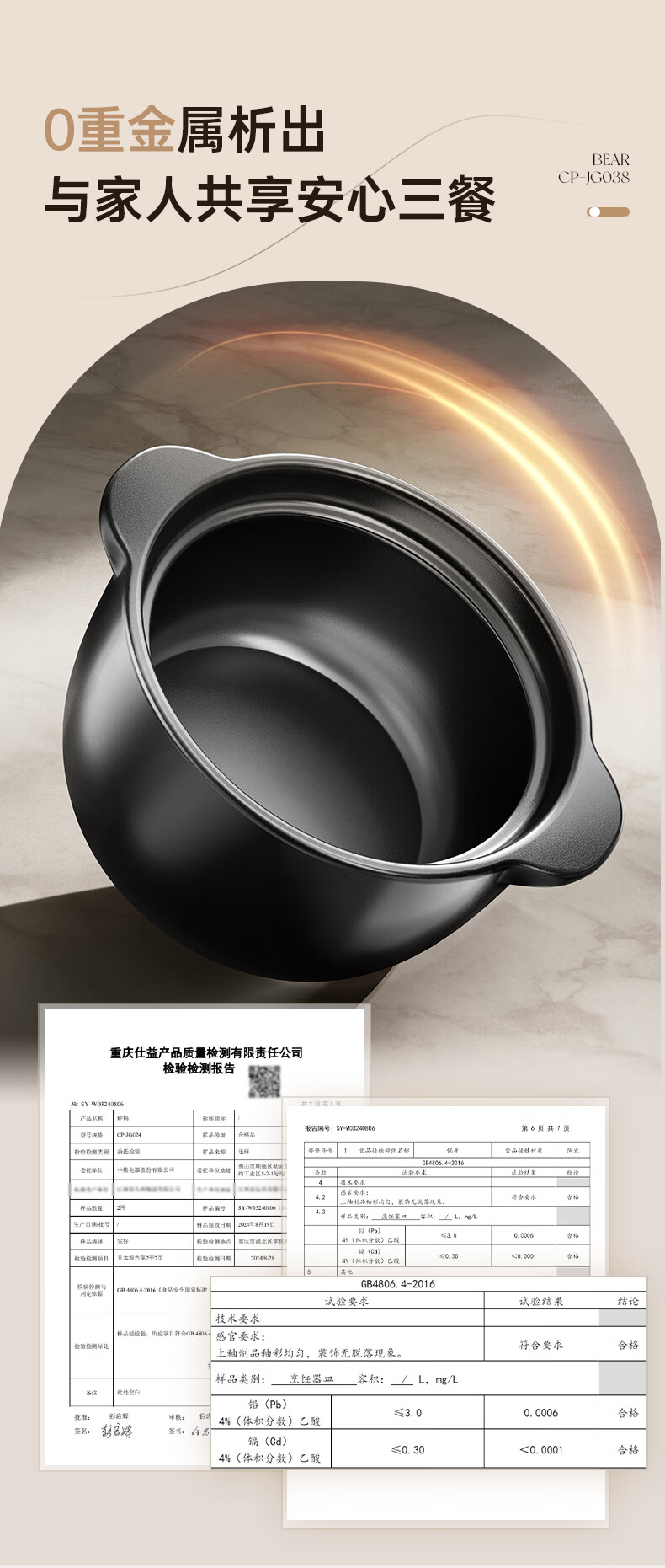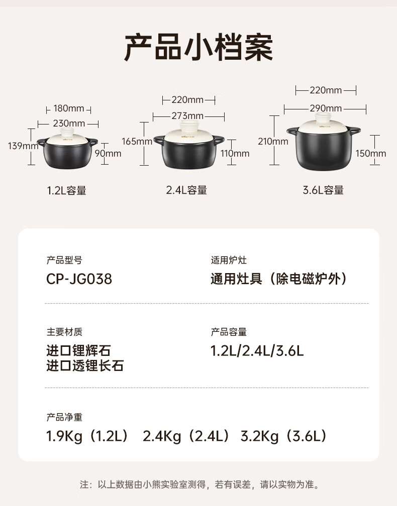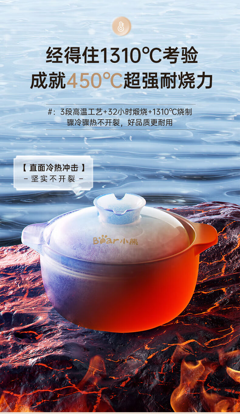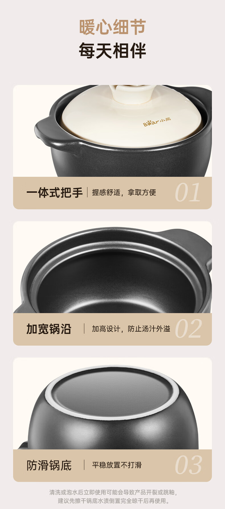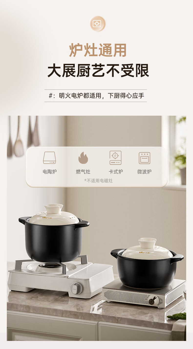 Bear casserole soup pot stew pot natural ore 2.4L high temperature resistant non-cracking clay pot rice soup cooking porridge open flame gas