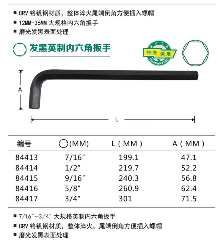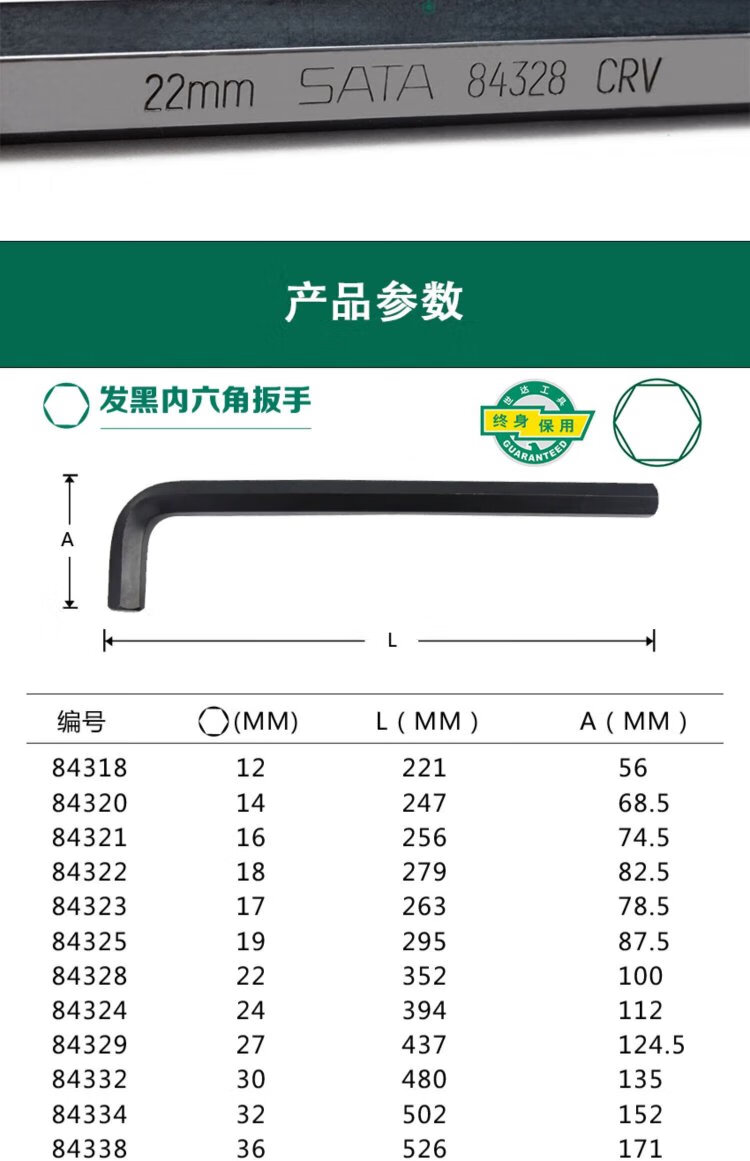 SATA CRV chrome vanadium steel black flat head hexagonal wrench 17MM 84323