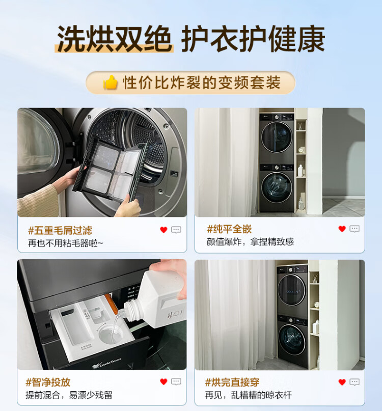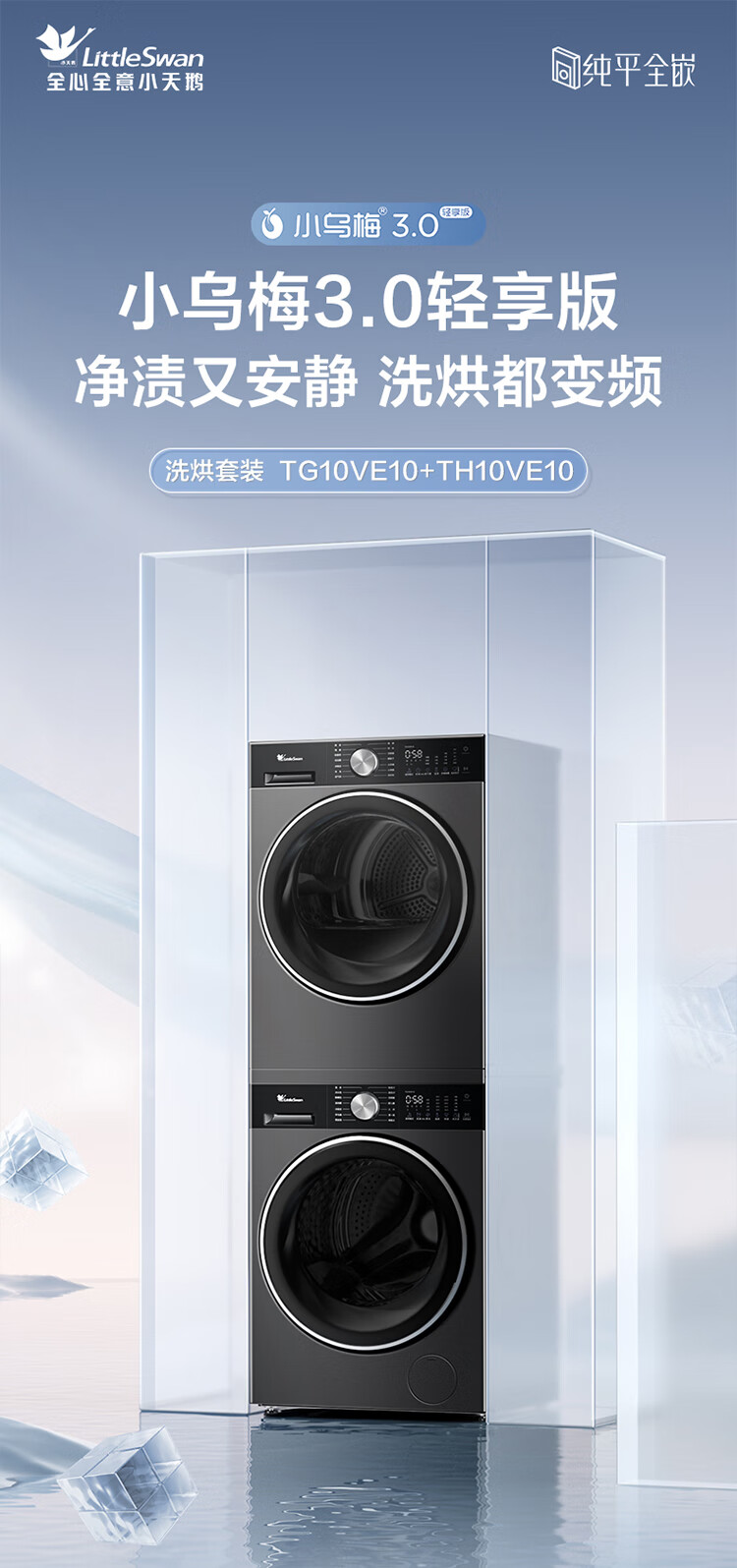 LittleSwan Xiaowumei 3.0 Light Edition Washing and Drying Set 10KG Drum Washing Machine Fully Automatic + Variable Frequency Heat Pump Dryer AI Smart Investment VE10+VE10 National Subsidy