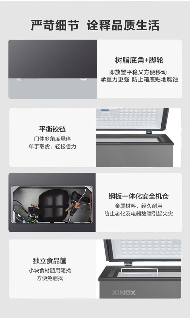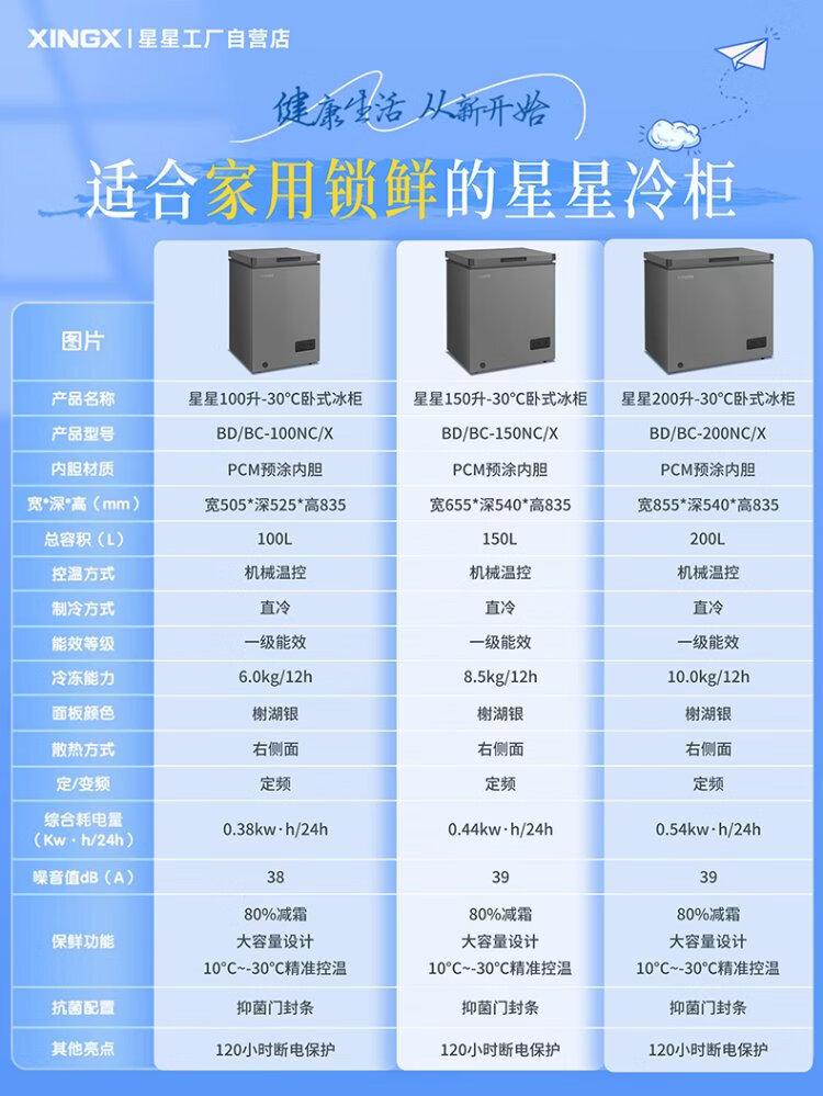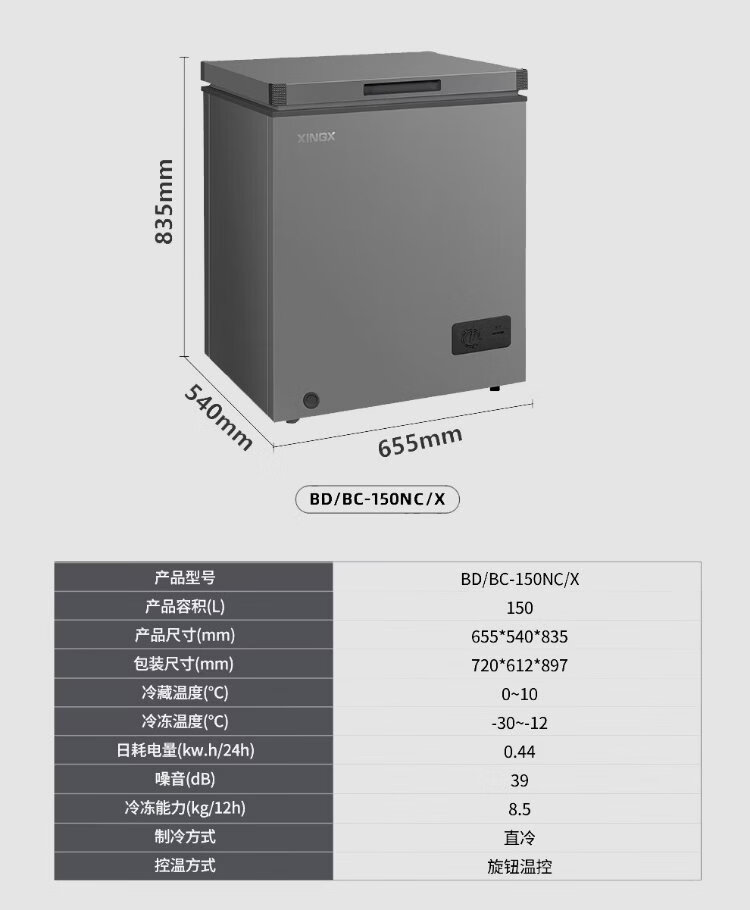 XINGX Star series 150L single temperature household small refrigerator freezer large capacity frost-reducing freshness and clean taste energy-saving refrigerator refrigeration and freezing dual-purpose freezer BD/BC-150NC/X