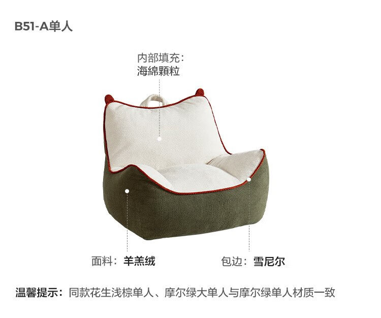 Lin's Home Furnishing Caterpillar Lazy Sofa Small Bean Bag Bedroom Living Room Balcony Lin's Wood B51