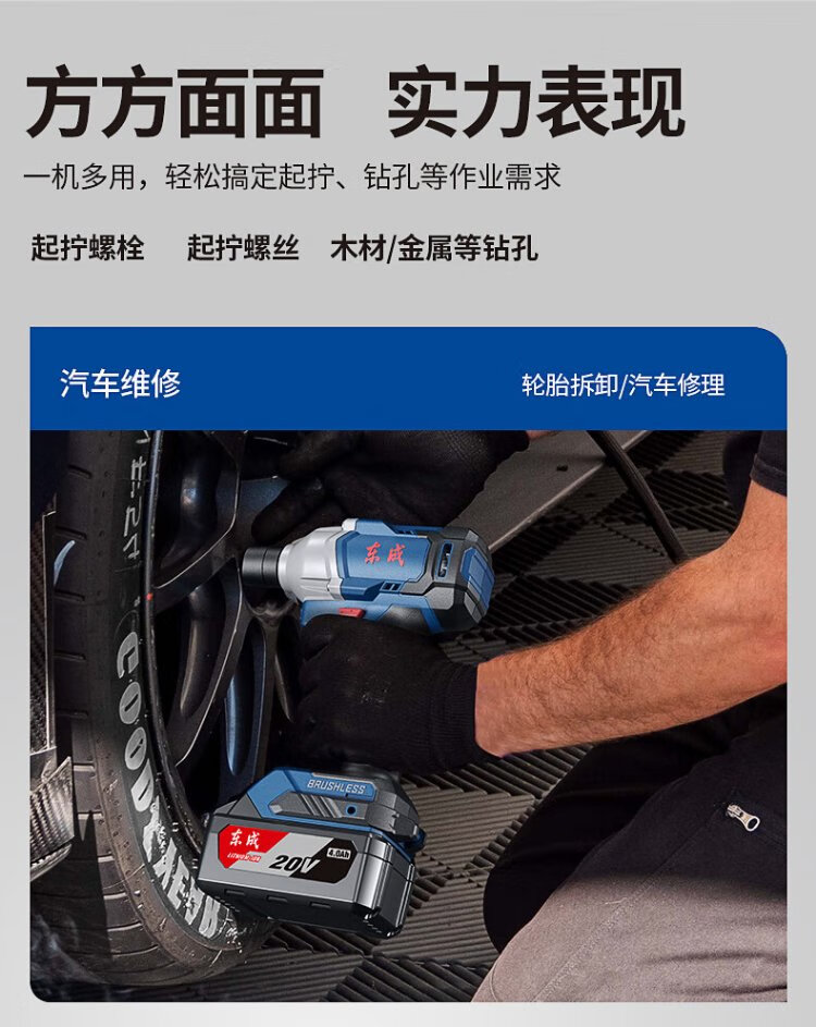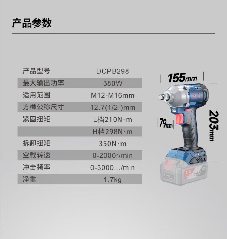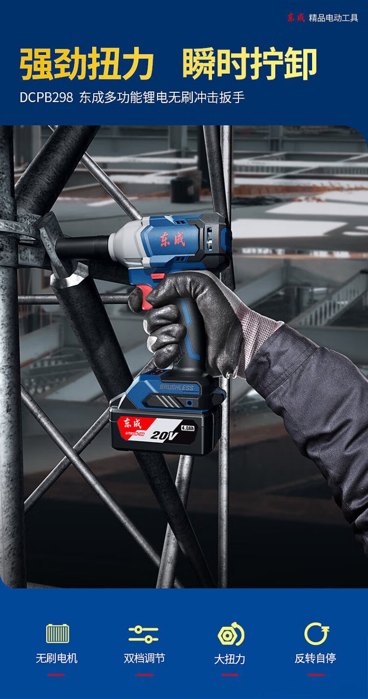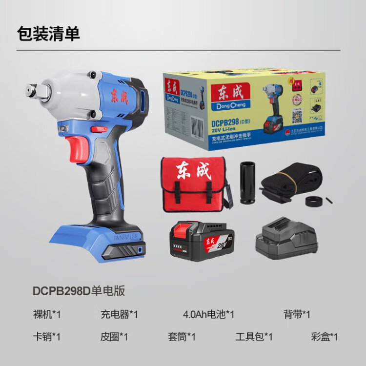 Dongcheng 20V lithium battery brushless electric wrench DCPB298D auto repair impact lithium battery wrench rechargeable sleeve wind cannon