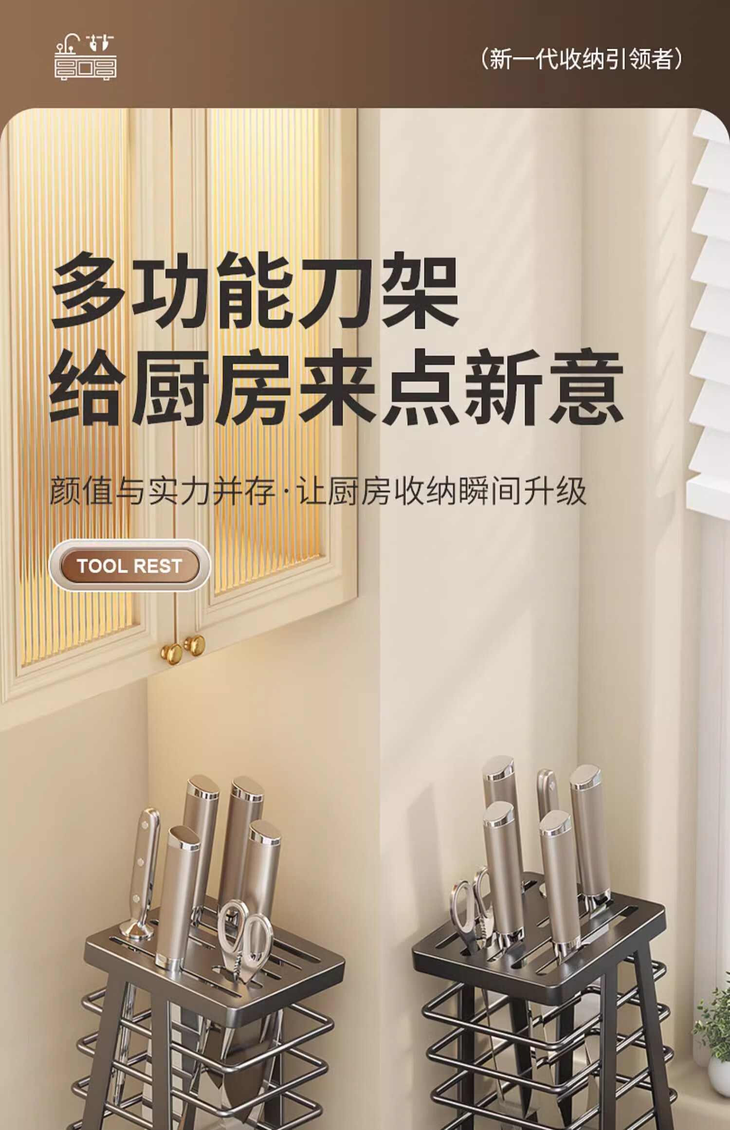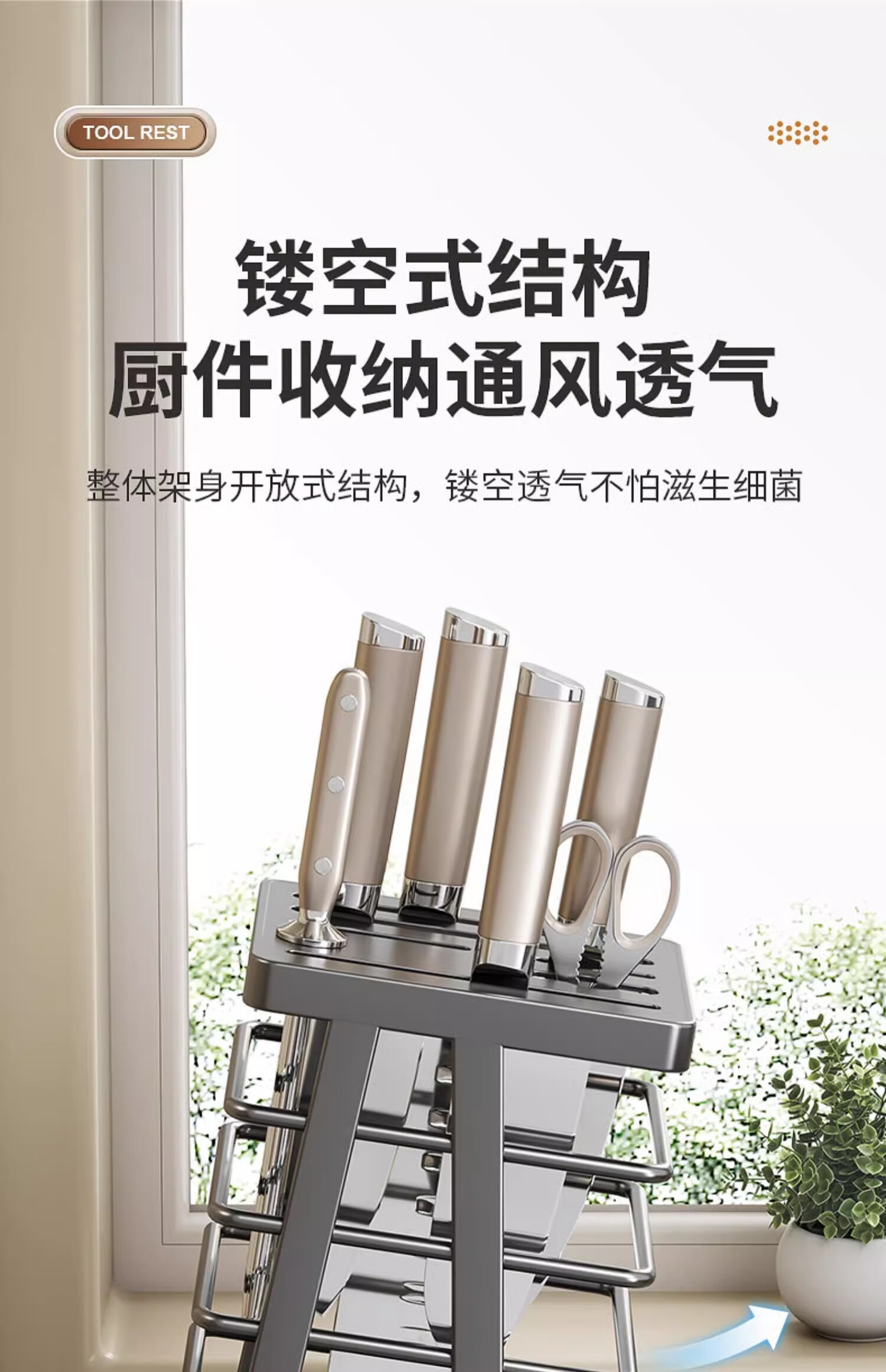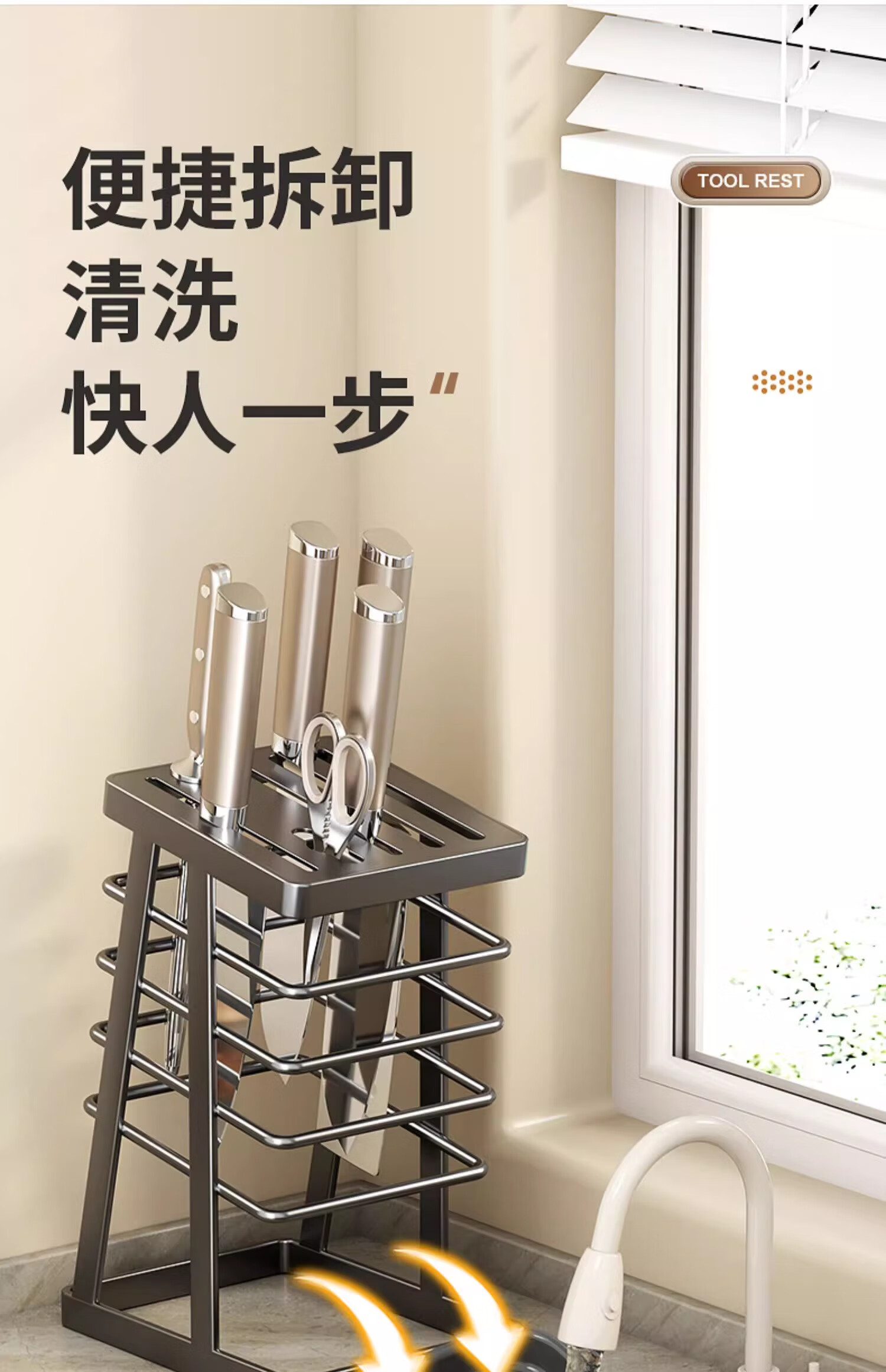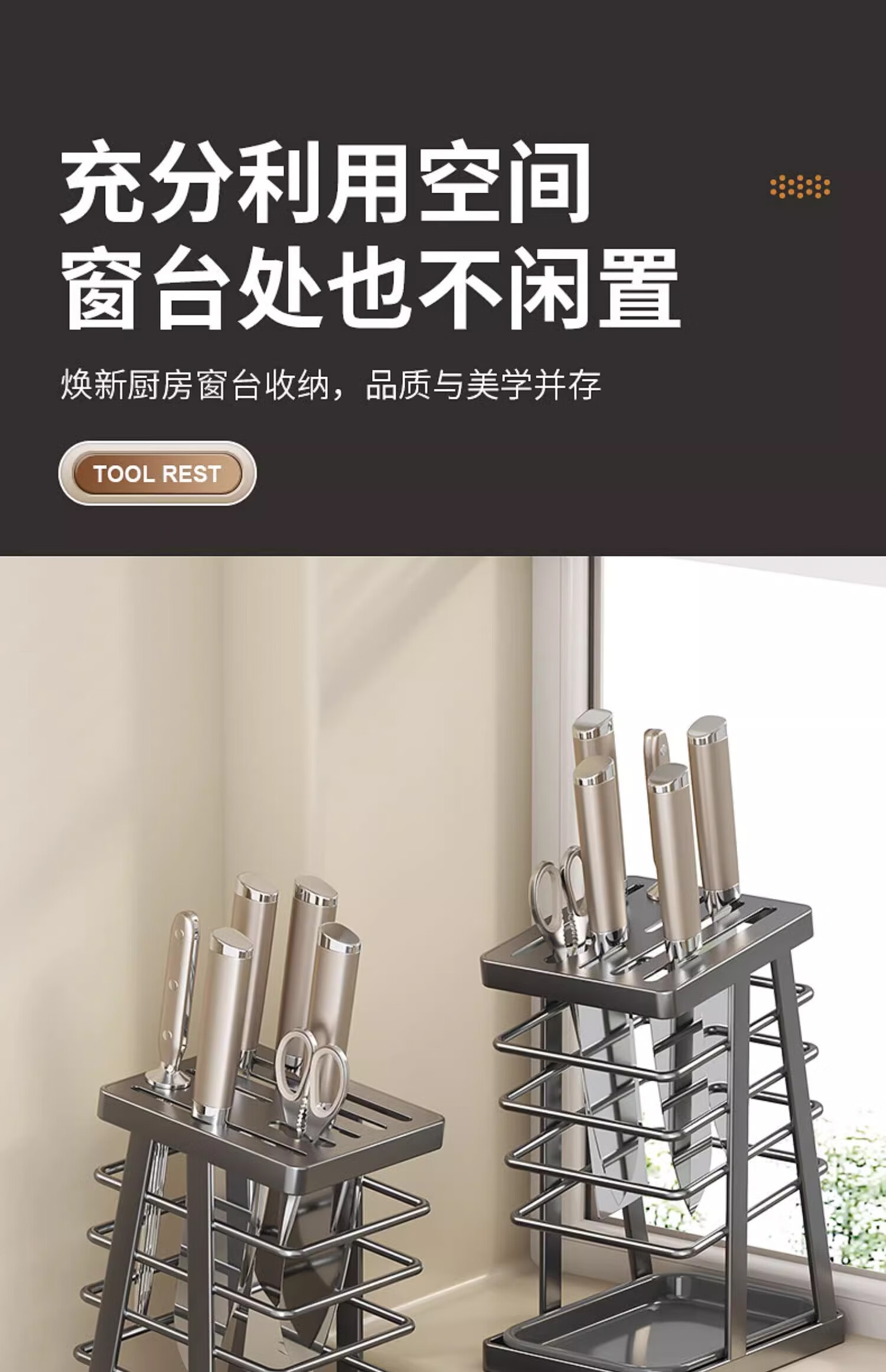 Pinyu knife rack kitchen rack table-mounted kitchen knife rack drainable knife rack chopstick cage integrated multi-functional rack