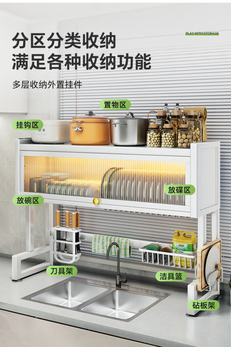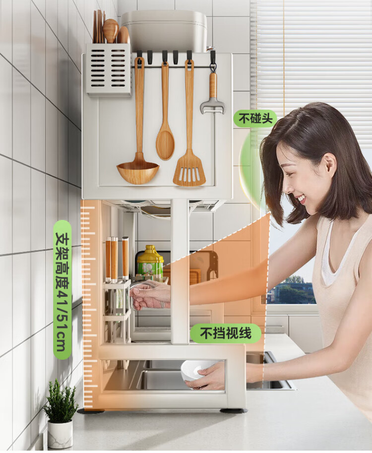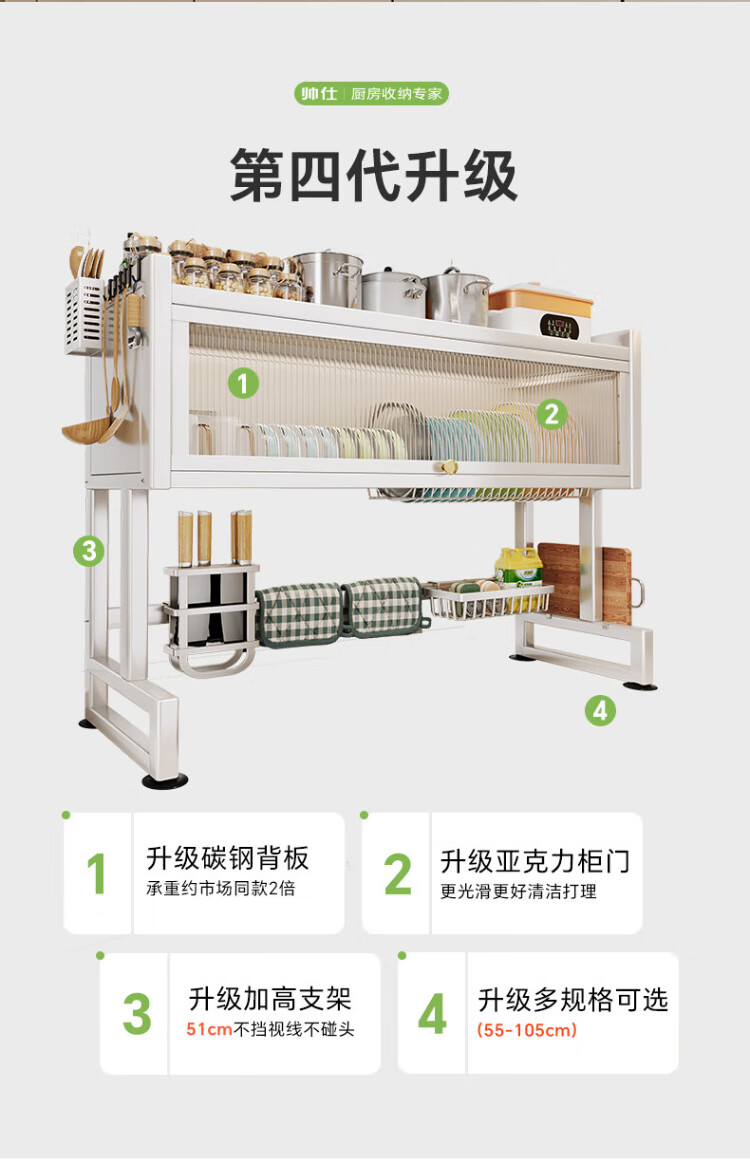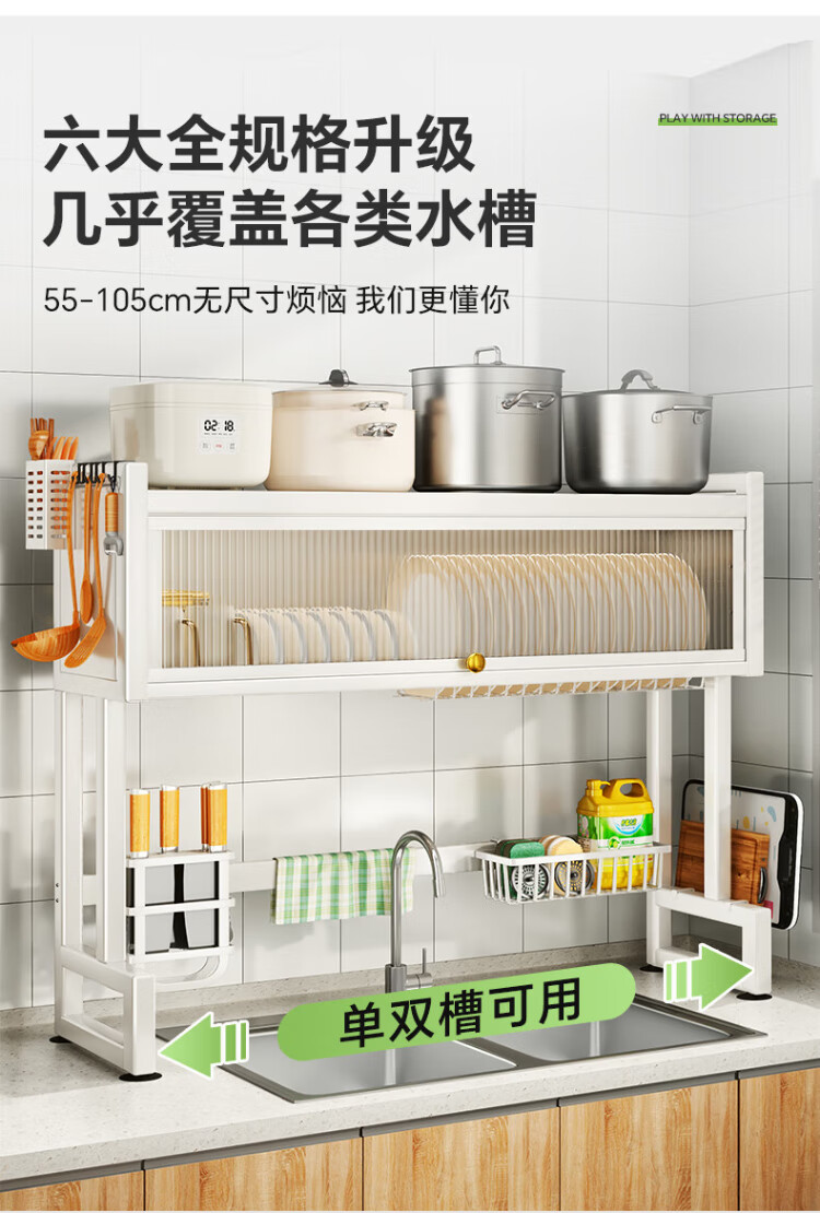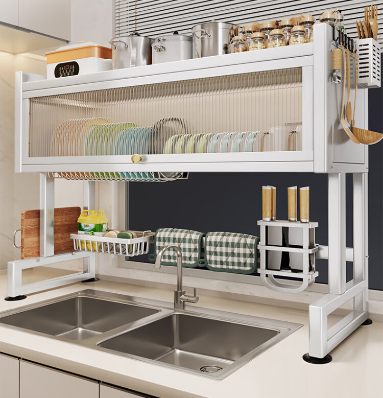 Shuaishi (shuaishi) kitchen sink storage rack drain rack dishwasher rack sink storage rack above the sink white 75 long