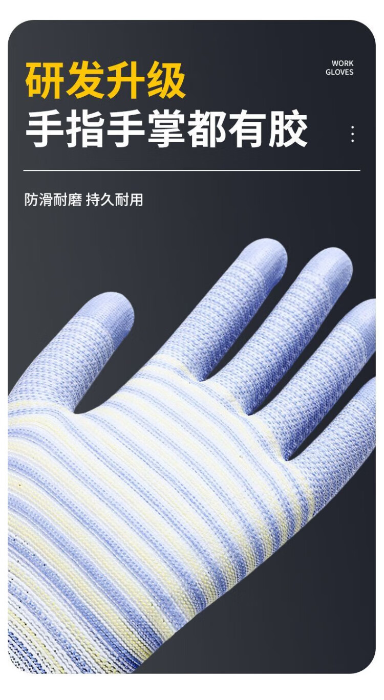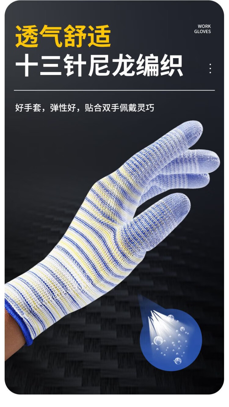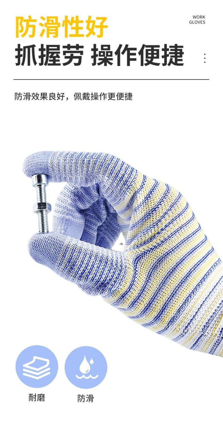 Qianjiadi gloves work labor protection gloves thin nylon zebra pattern rubberized palm summer breathable gloves work non-slip wear-resistant labor gloves work site 12 pairs