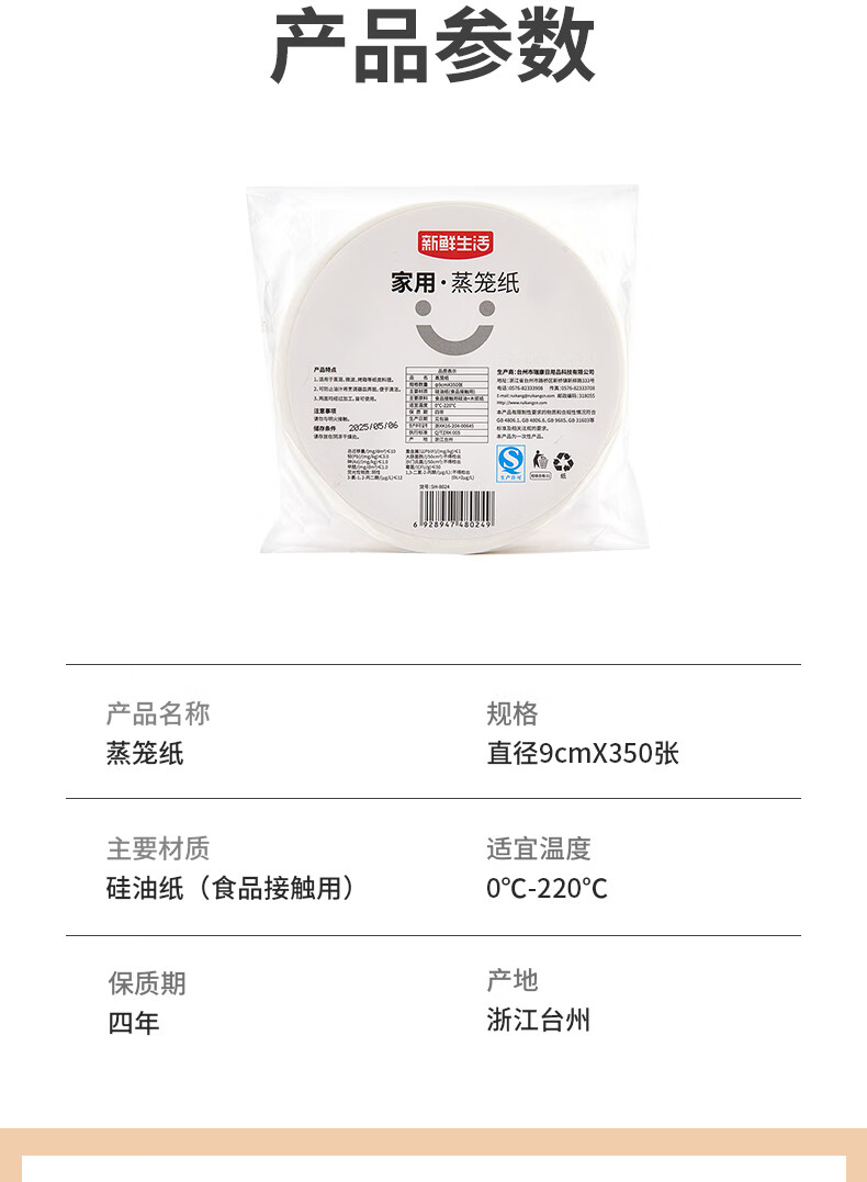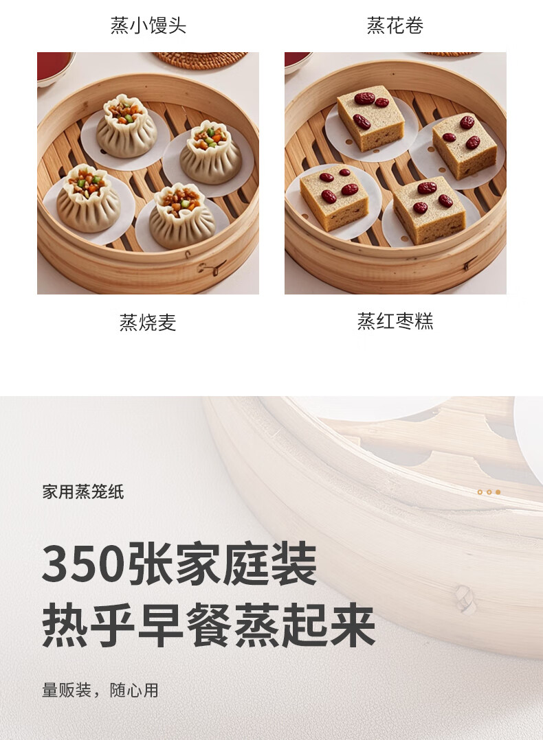 Fresh Life disposable steamer paper food-grade steamed buns steamed bun pad paper non-stick household steamer paper 9cm*350 sheets