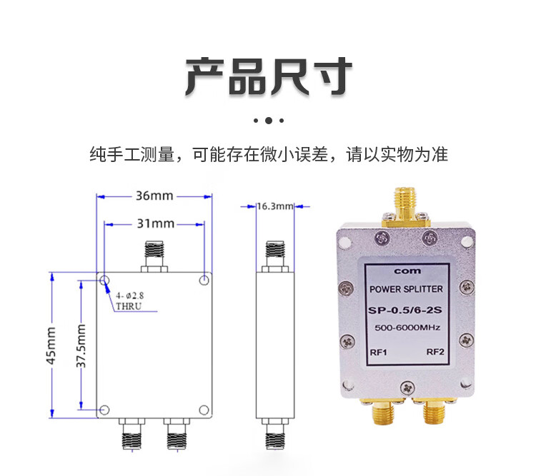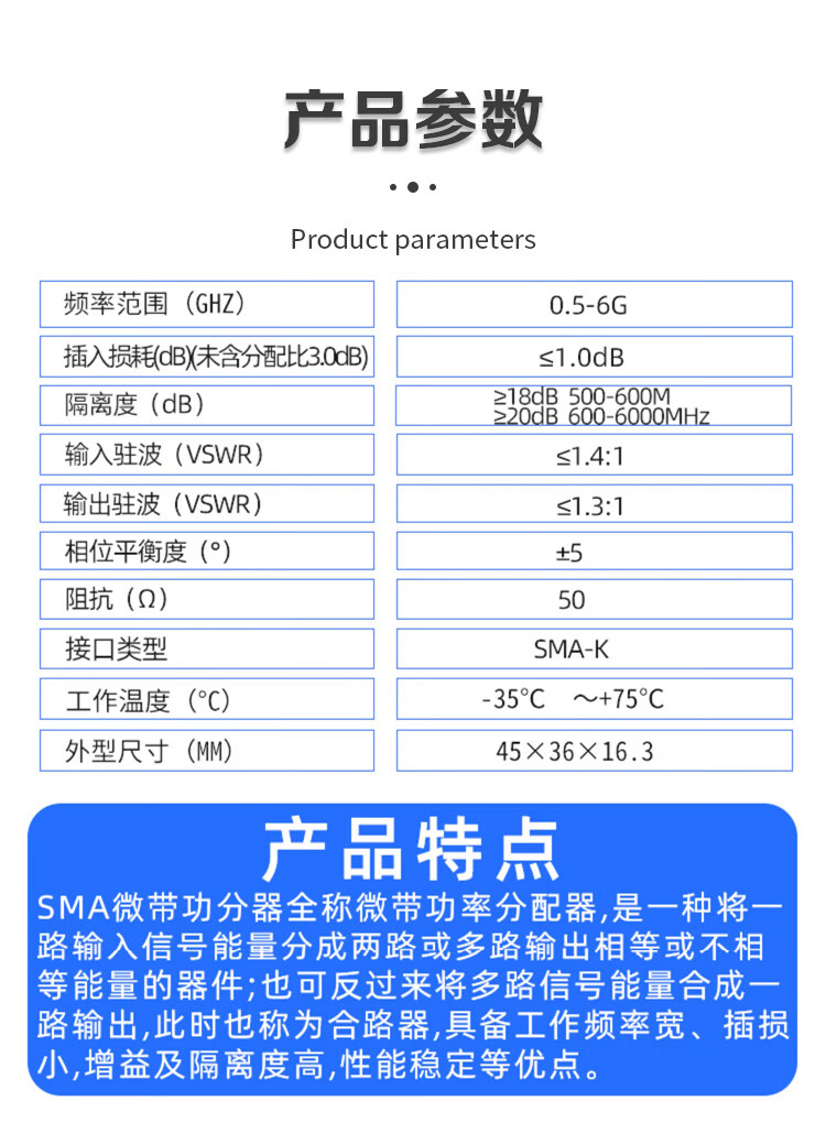 Qantop SMA power splitter into two RF signal distributor combiner SMA-K female (0.4-3G) QT-SMA-01