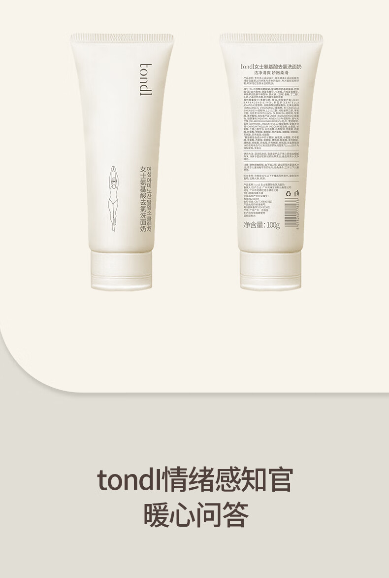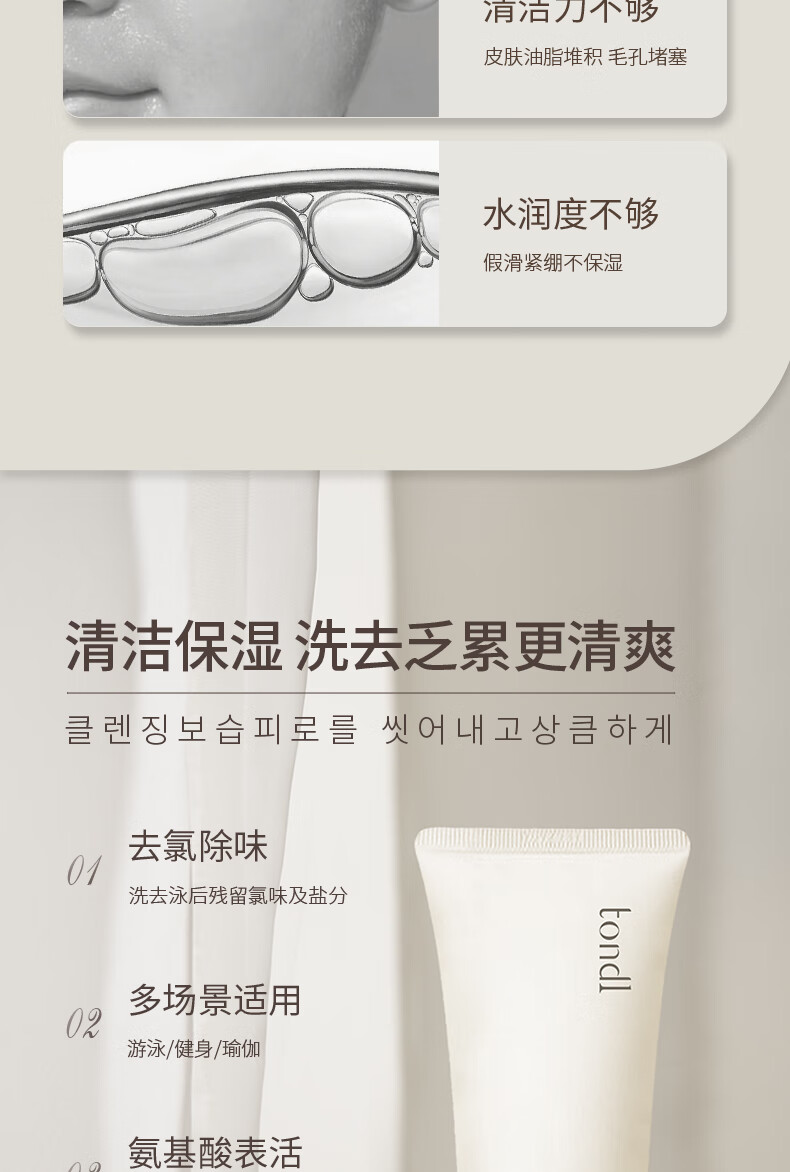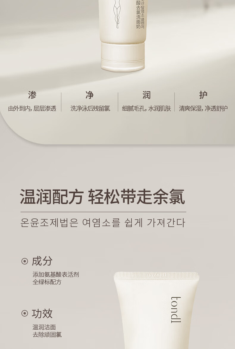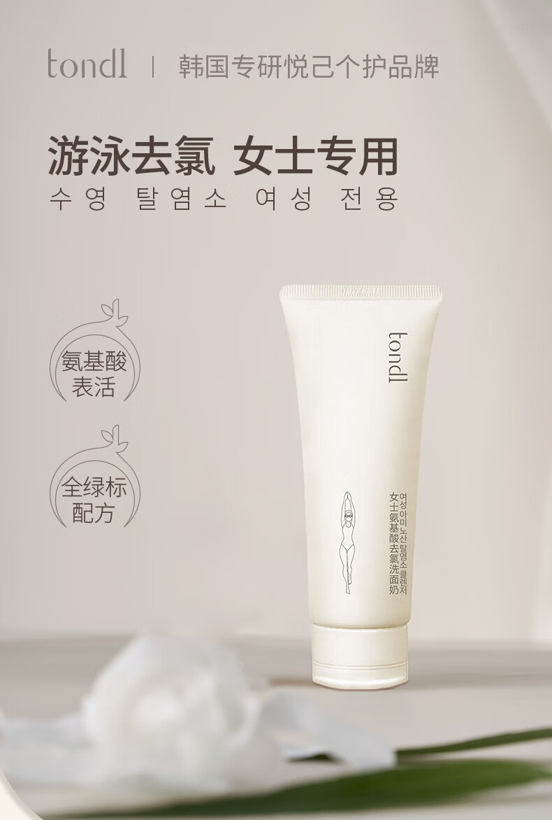 Tondi Dechlorinated Amino Acid Facial Cleanser Women's Swimming Equipment Cleaning and Moisturizing Facial Cleanser Travel Size 100g