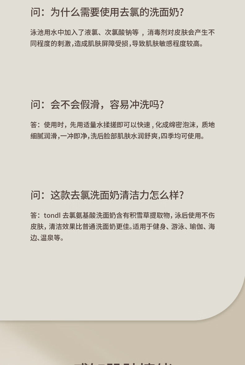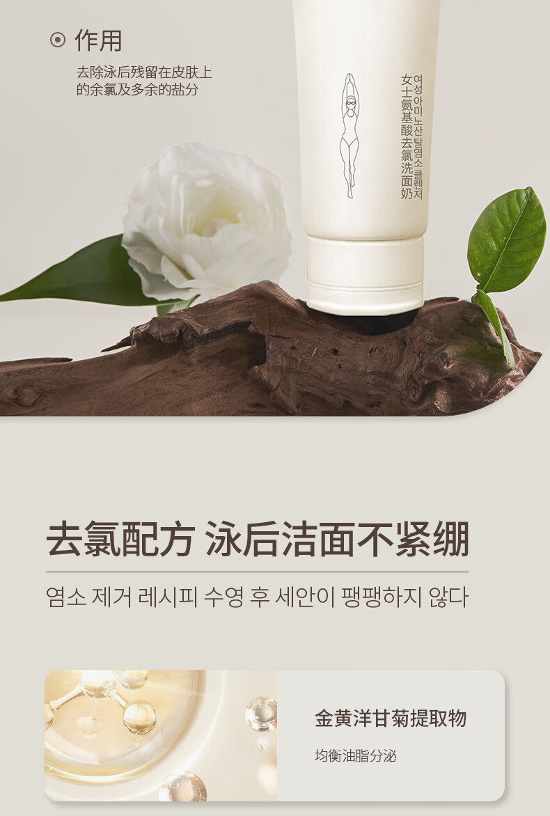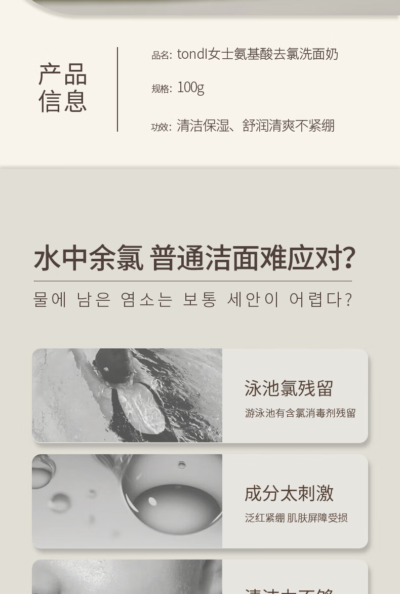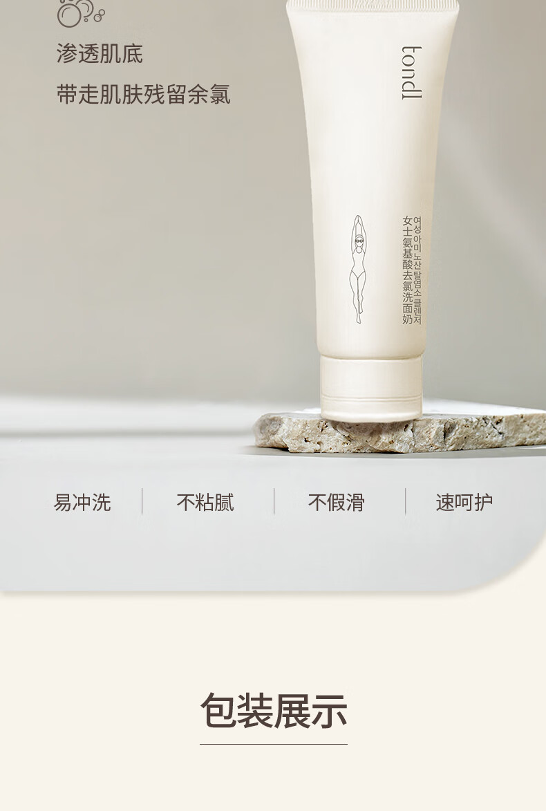 Tondi Dechlorinated Amino Acid Facial Cleanser Women's Swimming Equipment Cleaning and Moisturizing Facial Cleanser Travel Size 100g