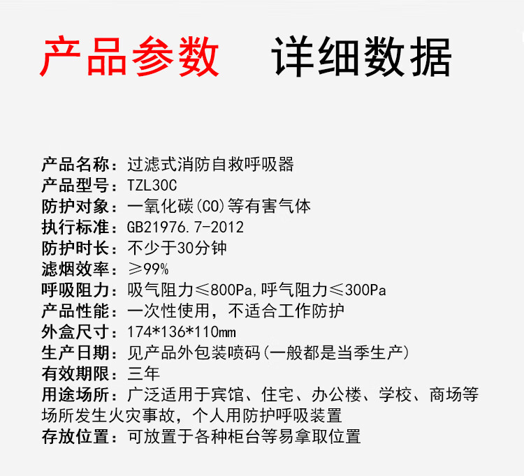 Zhean zhean TZL30C gas mask filter self-rescue respirator fire mask smoke mask fire mask escape mask